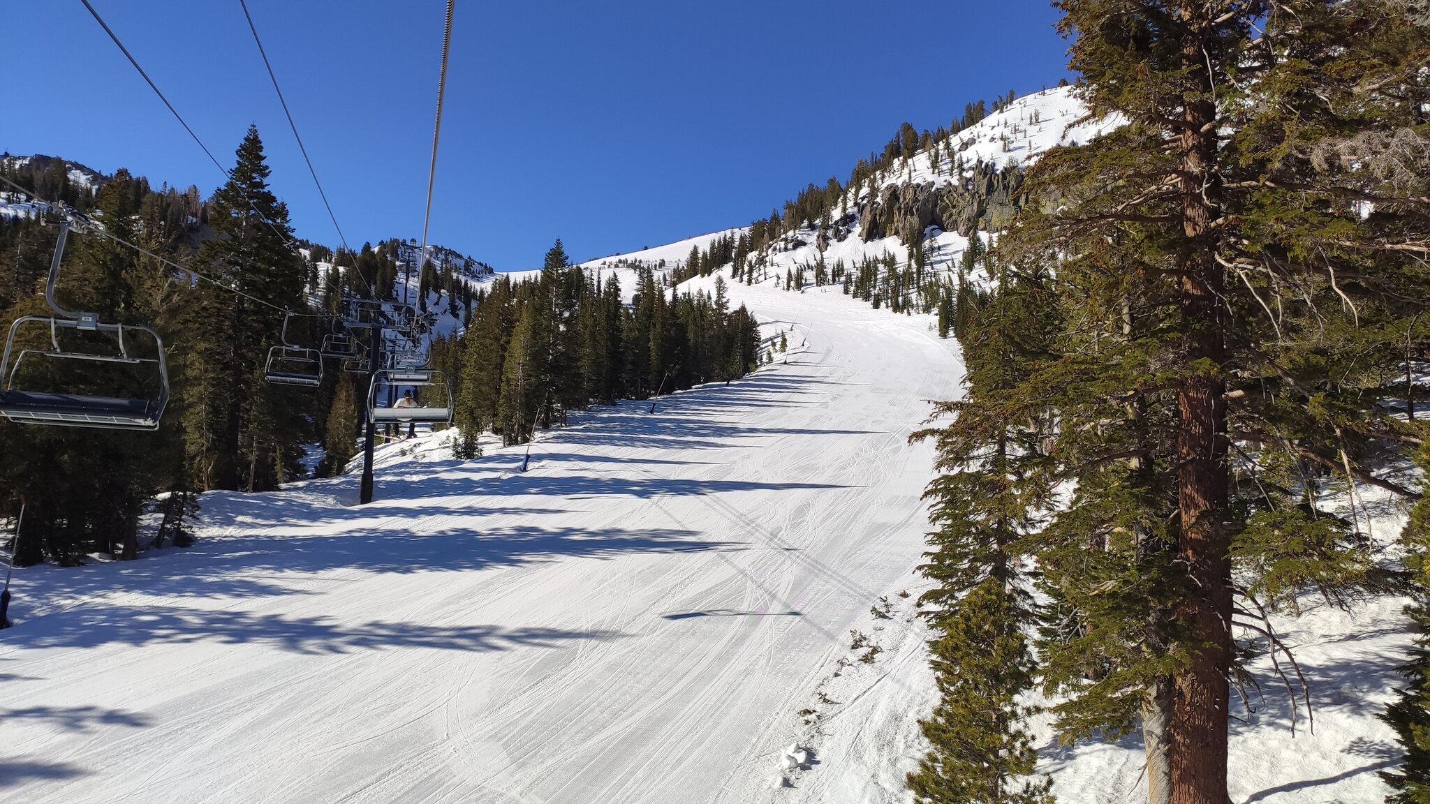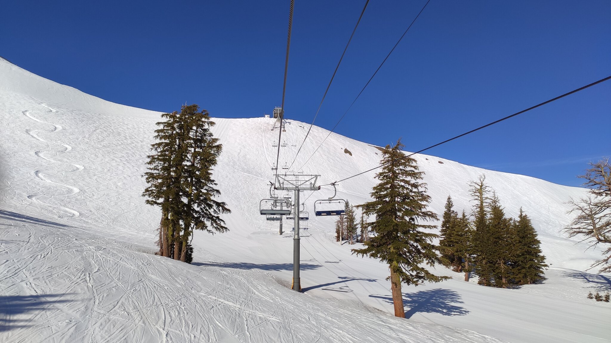 Auf der Anreise von der Bay Area am Sonntag habe ich nachmittags die alte Donner Pass-Straße genommen und überraschenderweise liefen die Lifte im Skigebiet "Donner Ski Ranch" auch noch.