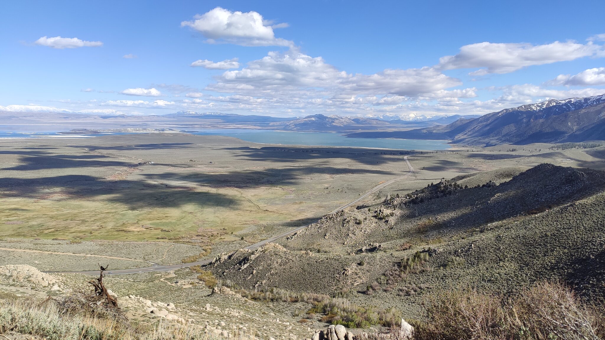 Auf der Route 395 ist sehr wenig Verkehr, dort ist man schon ziemlich in der Wildnis. Am Mono Lake: