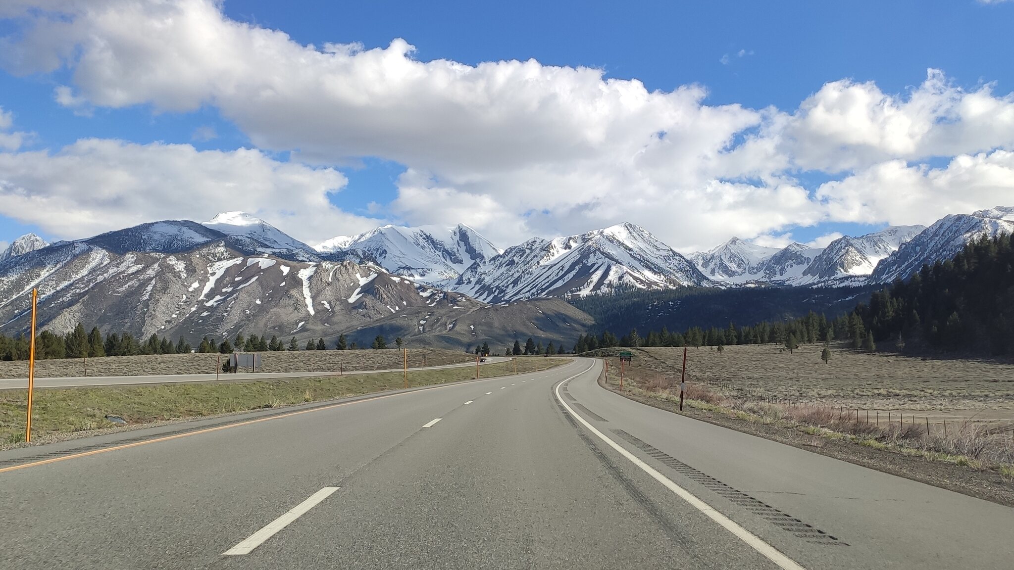 Müsste June Mountain sein. Die schneebedeckten Berge kommen auch immer näher, das steigert die Vorfreude.
