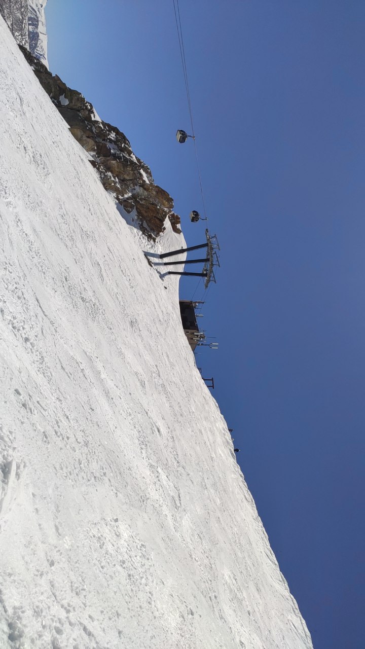 Die Bedingungen sind frühlingshaft, teilweise Präparierung mit Versätzen. Die Talabfahrt zum Funi ist noch offen, hier hat man sogar zwei Varianten. Morgens waren die richtig gut.