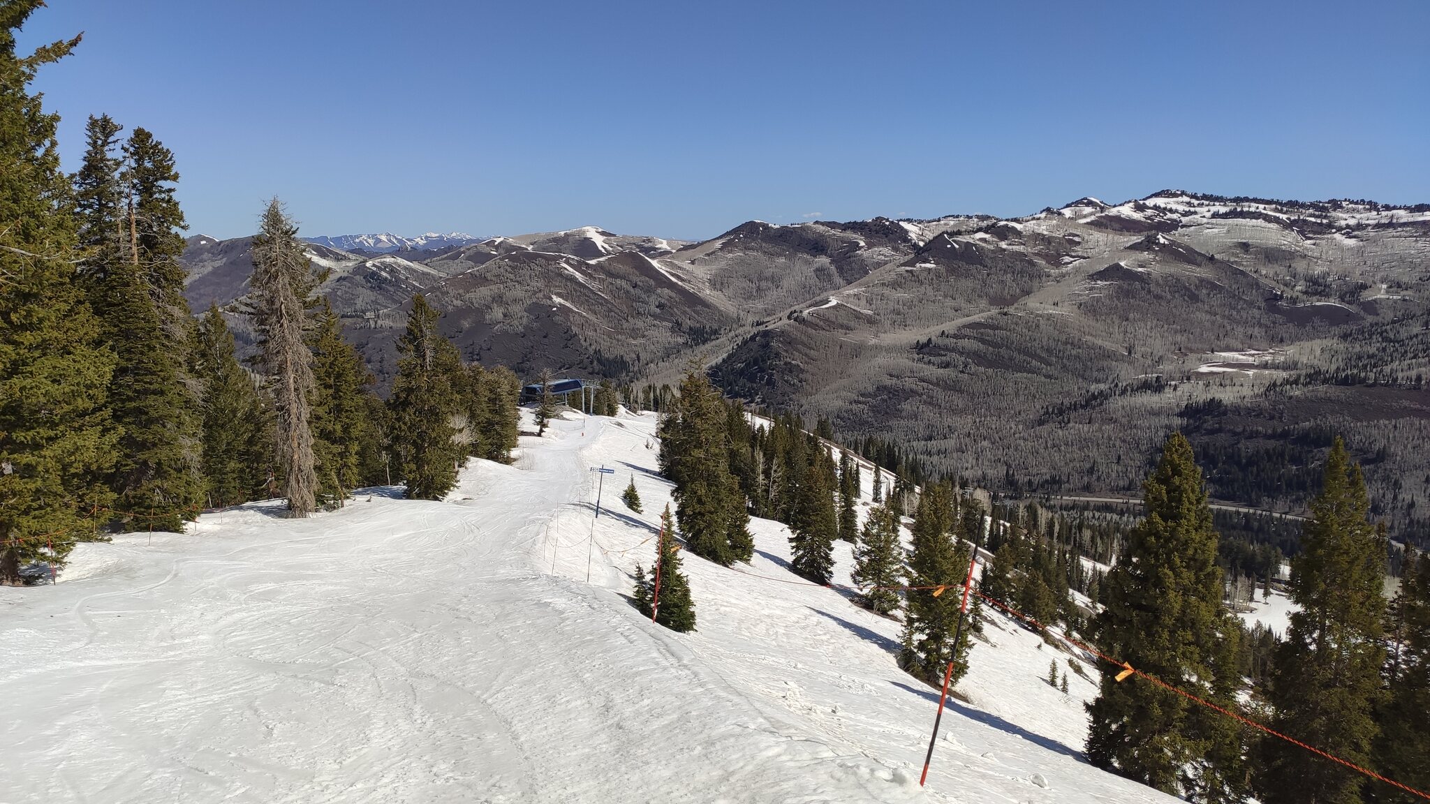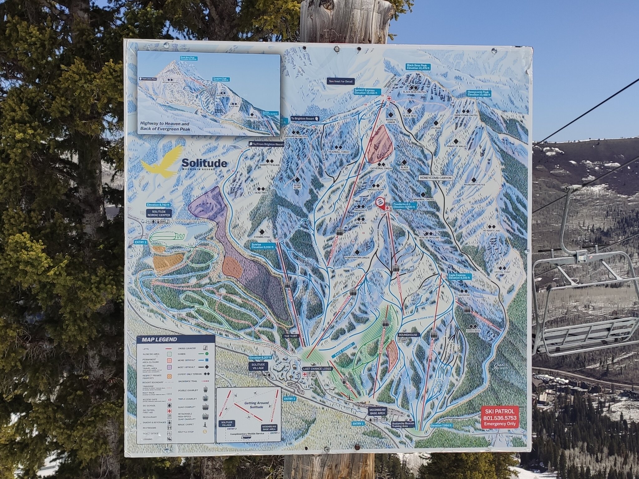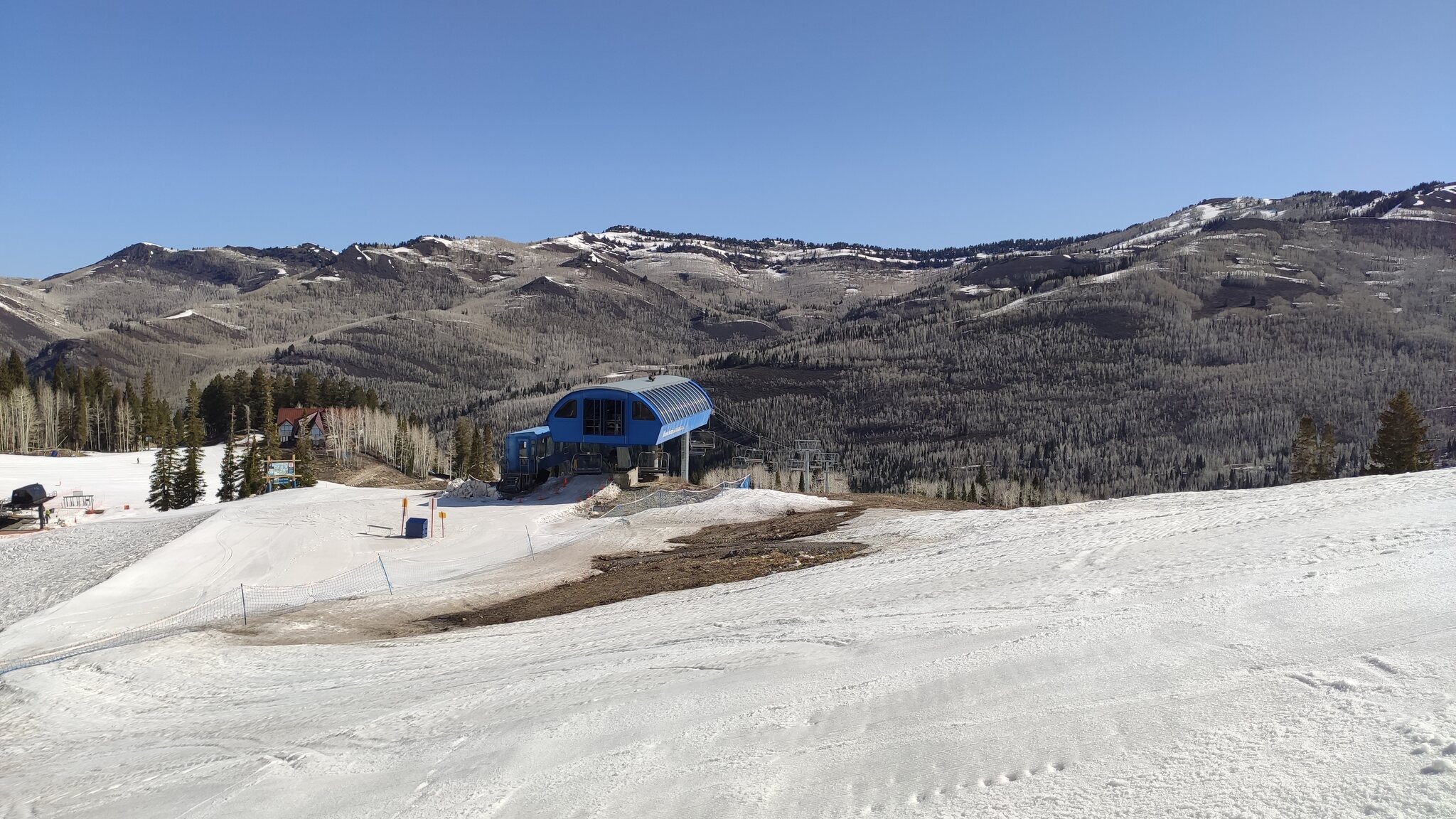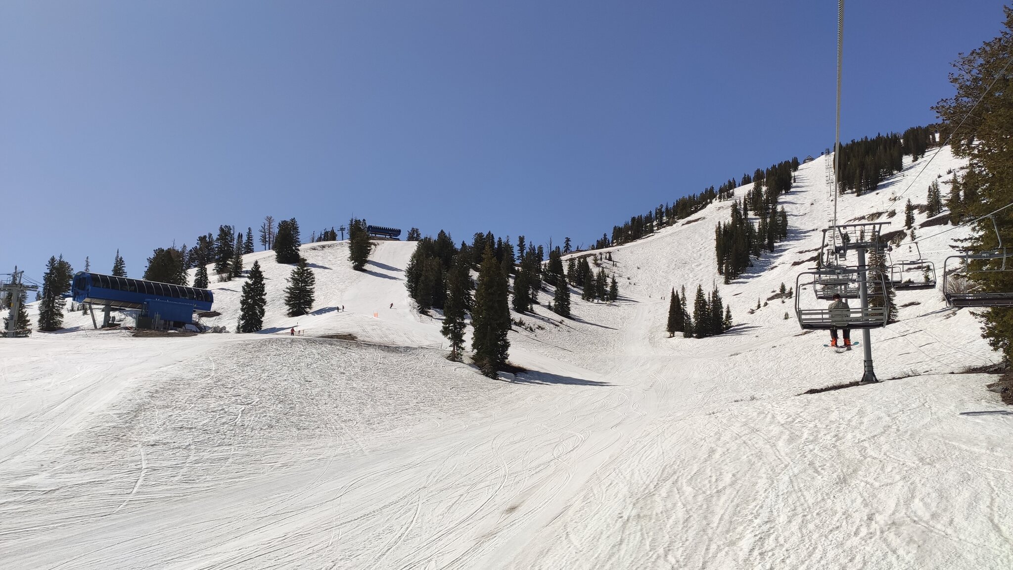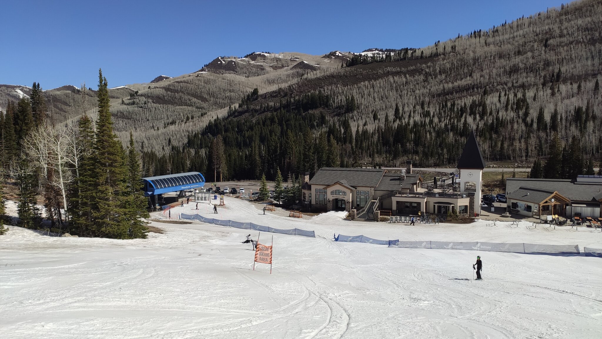 Die einzig weitere Spring Skiing Option mit dem Ikon Pass in der "Nähe" war Solitude in Utah, wobei das auch schon ein 500 Meilen Trip nach Salt Lake City war. Der Tag fing schon warm an, die Nacht war allerdings klar. 9h war Betriebsbeginn, hier hätte man auch eine Stunde vorziehen können. Eingestiegen bin in am Moonbeam Express.