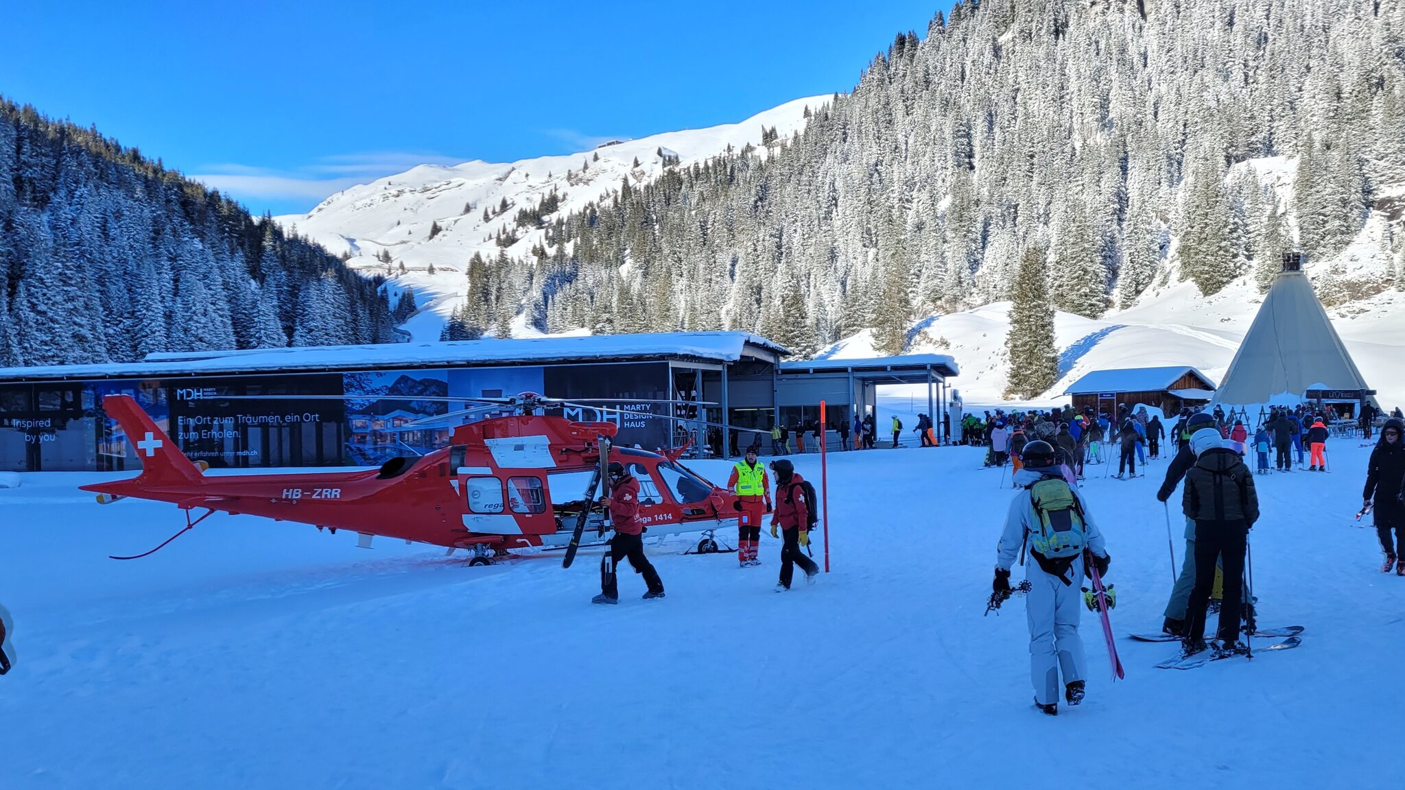 Rega AW109 am 21.12. in Plaun (Laax):