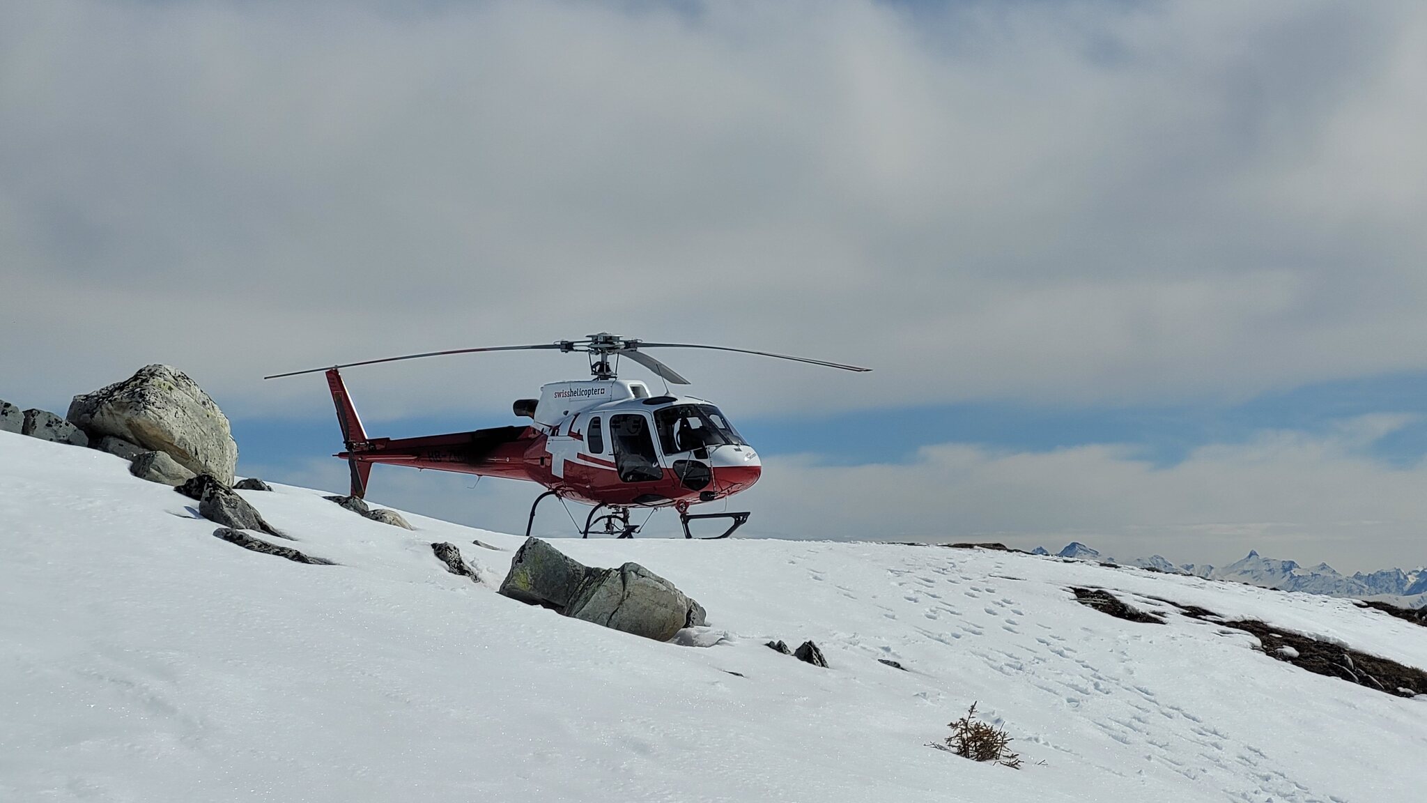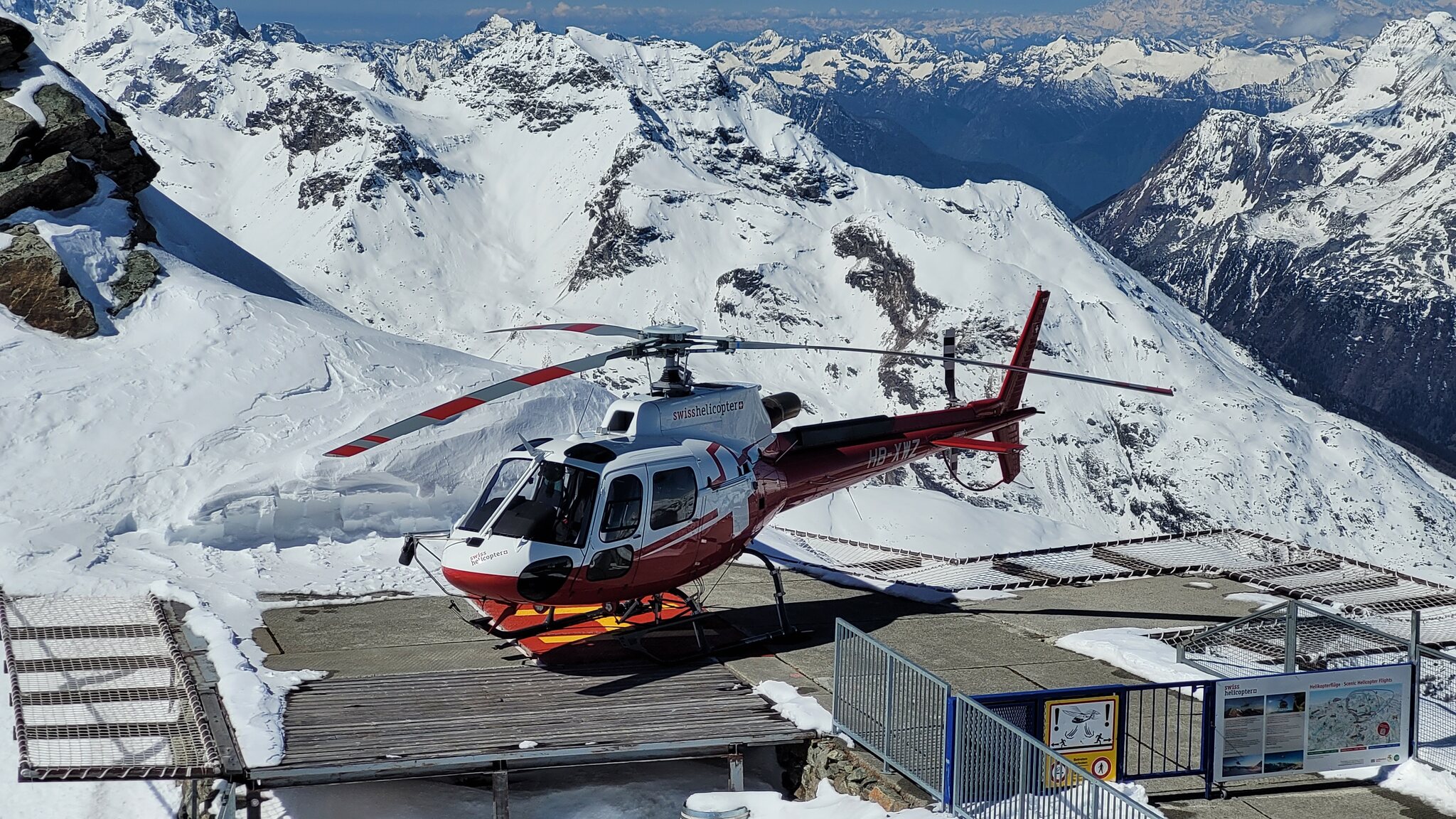 Swisshelicopter AS350 auf dem Corvatsch-Heliport am 26.04.