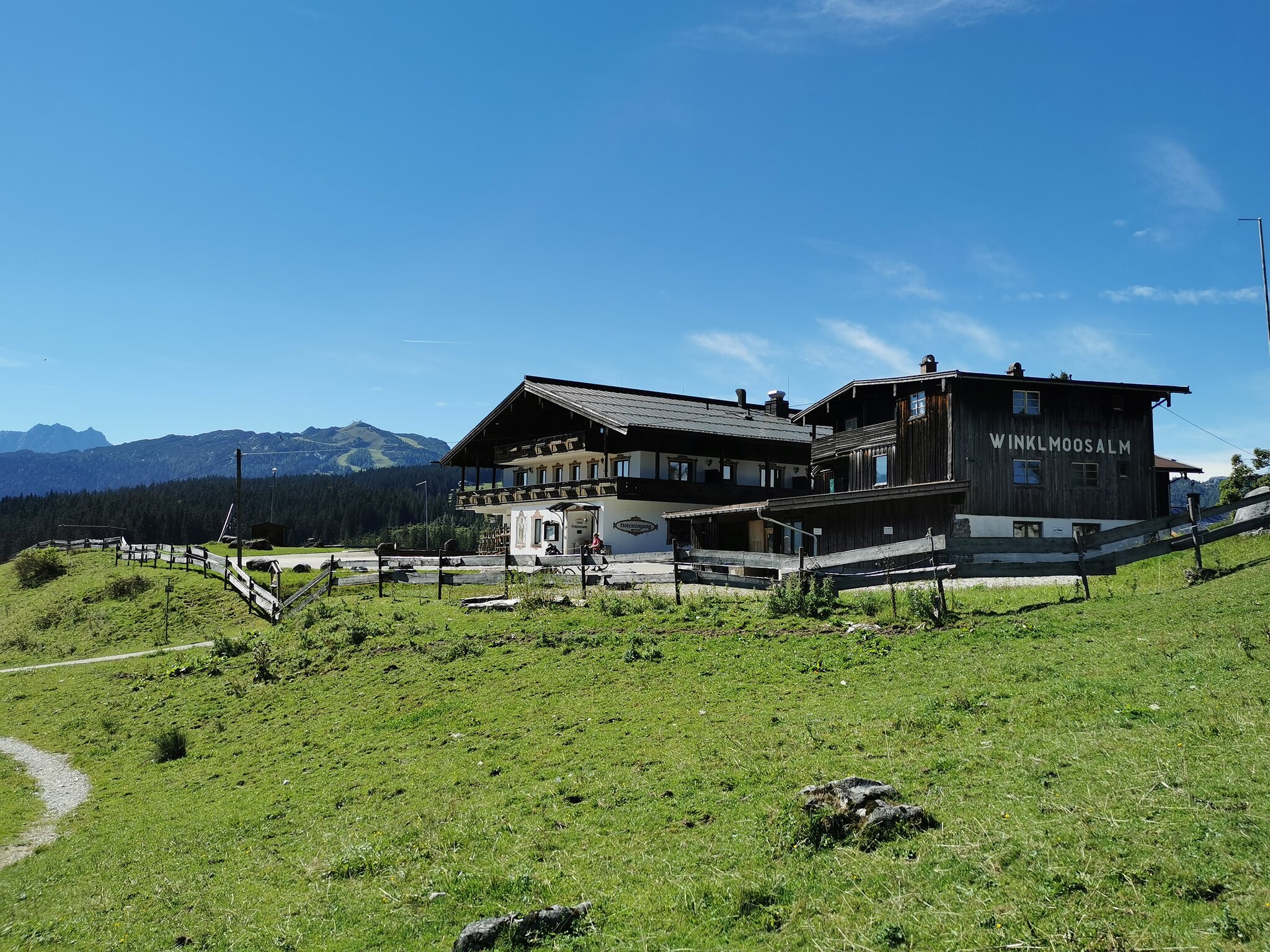 1. Und da sind wir schon. Auf der Winklmoosalm. Erreichbar über die Mautstraße.