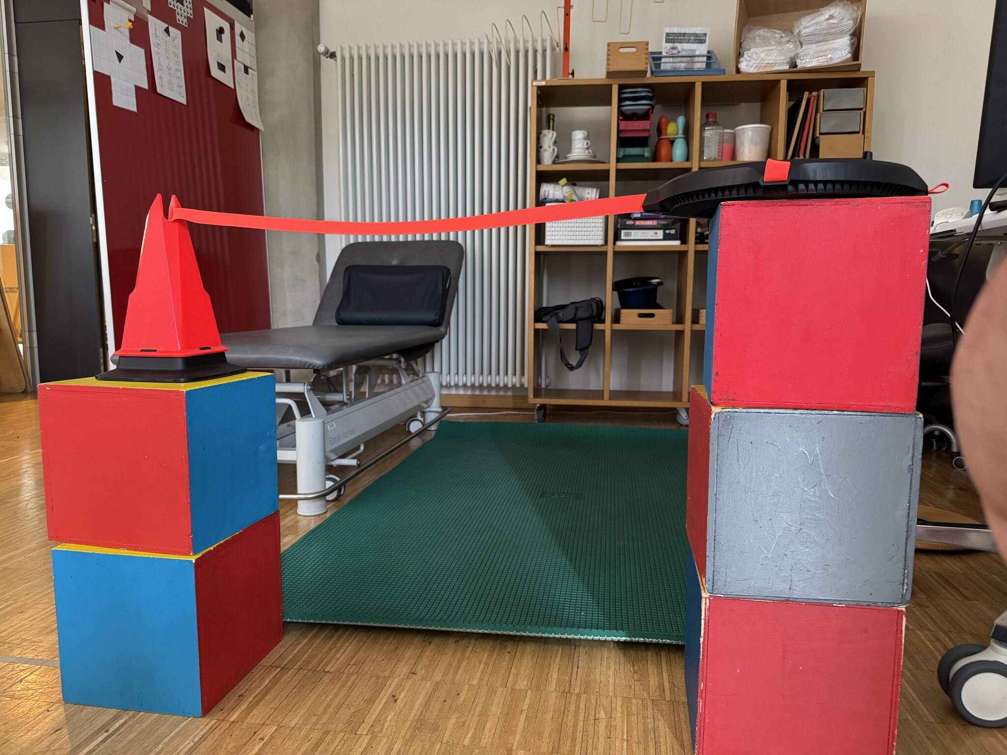 Auch die Ergotherapie ist abwechslungsreich. Früher habe ich dort viel Treppen geübt – die sind inzwischen kein großes Problem mehr. Jetzt gehen wir auch mal raus auf einen kleinen Hindernis-Parcours mit geklebten Baumstämmen, Sand, größeren und kleineren Kieselsteinen usw. Drinnen trage ich Gewichte von A nach B. Und besonders Spaß machen mir die Übungen am Computer: z. B. spielerisch durch Gewichtsverlagerung Punkte auf dem Bildschirm einsammeln und dabei Bomben ausweichen. Es gibt sogar Pong, komplett gesteuert über die Verlagerung des Körpergewichts – ziemlich cool!