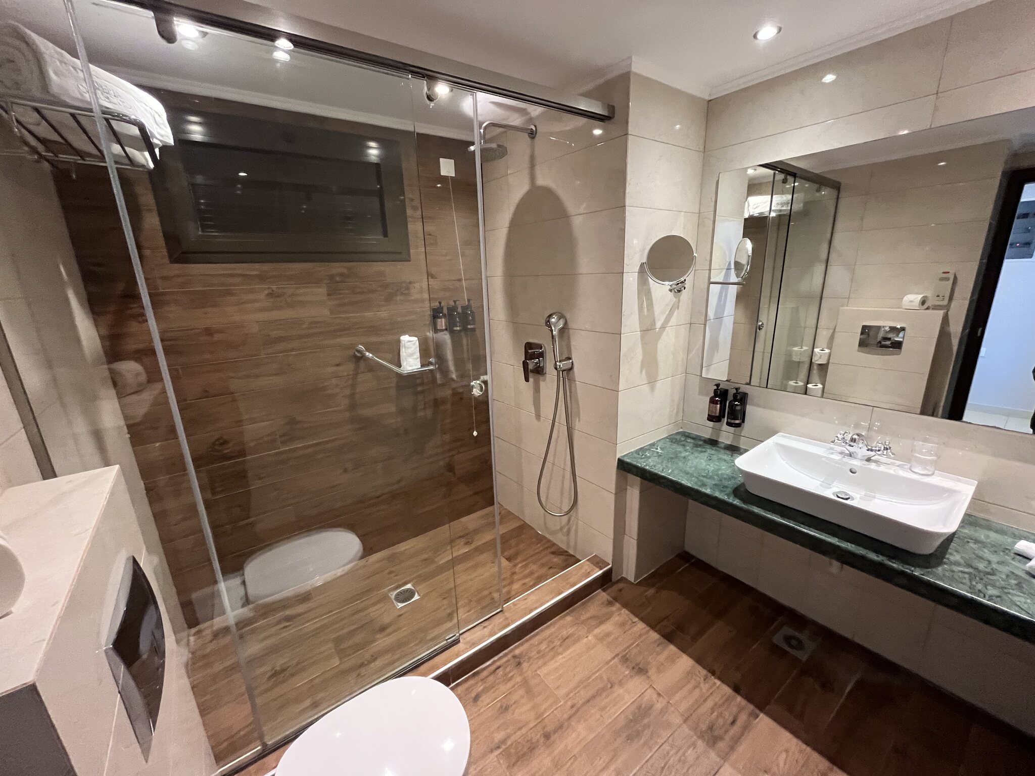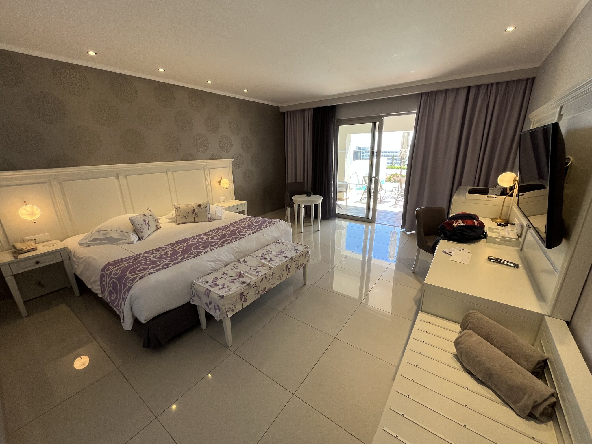 Zurück im Hotel gegen 18 Uhr verdunkelt sich der Himmel dann doch noch. Kaum sind wir im Zimmer, beginnt es heftig zu gewittern.