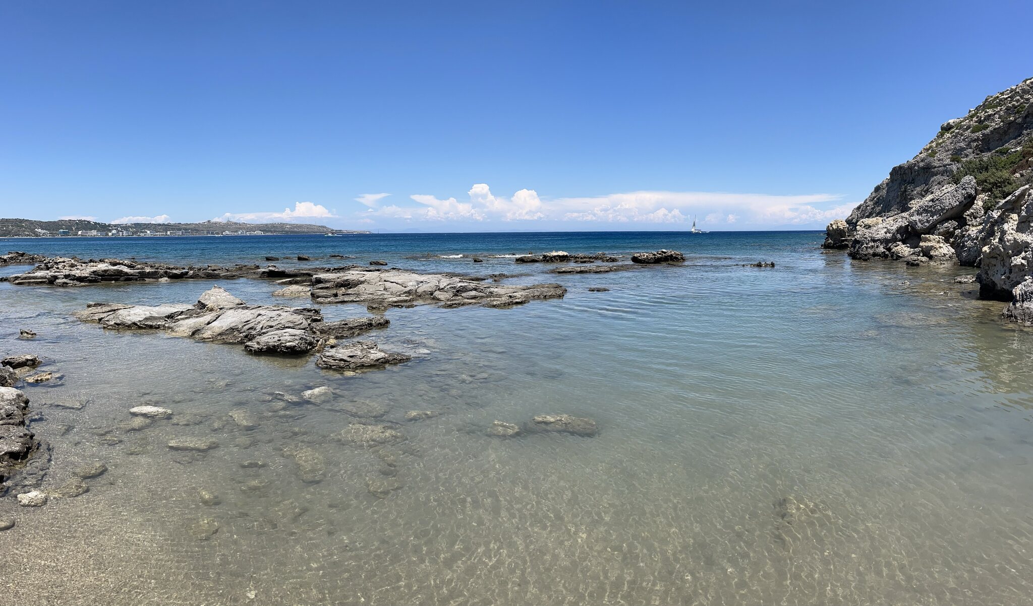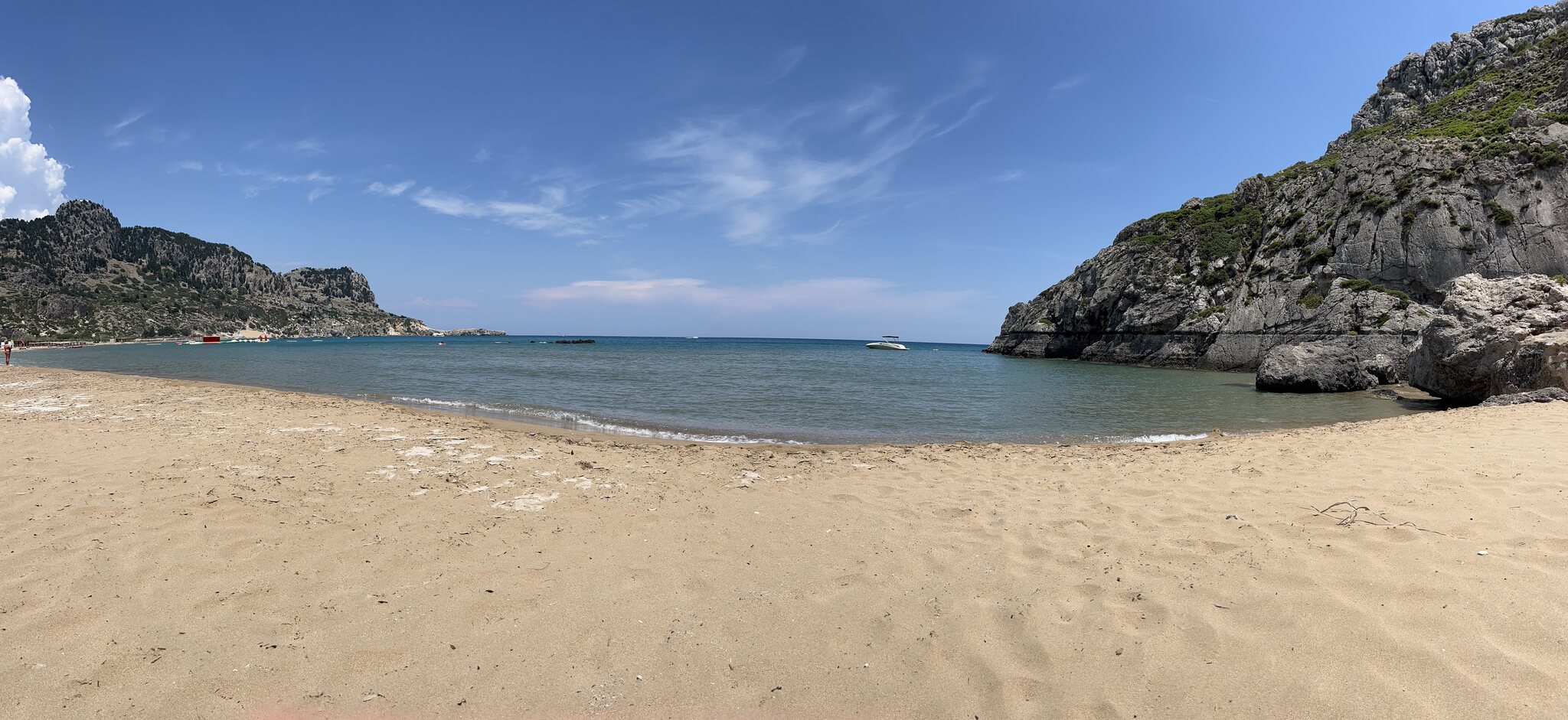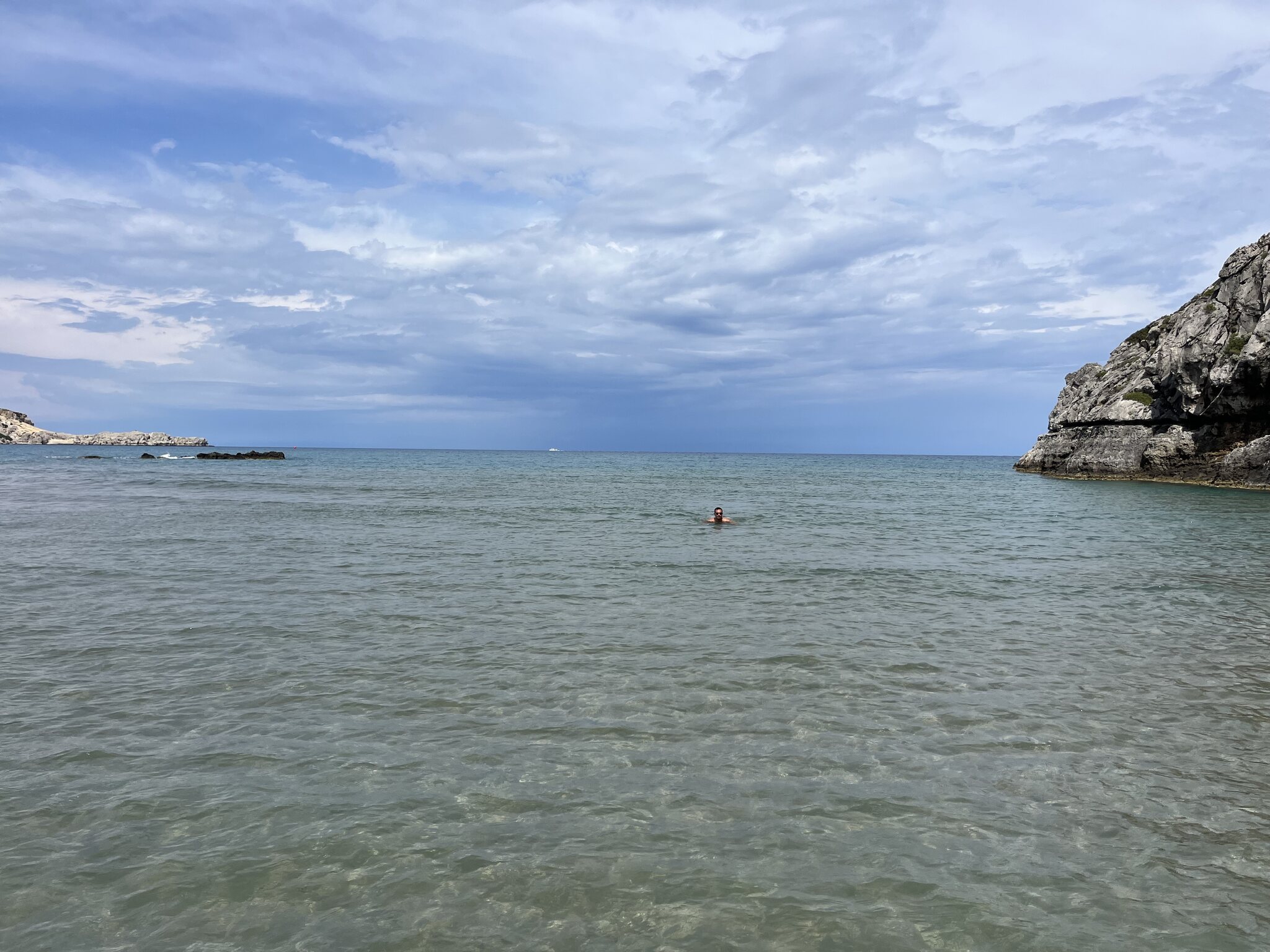 Same procedure as every day, James (alias Andy): Die Cumuli castellani über dem Meer versprechen nichts Gutes. Drum fahren wir nach dem Frühstück zuerst an den nahegelegenen Gaybeach. Nach knapp zwei Stunden beginnt es jedoch tatsächlich zu regnen und wir machen uns auf nach Rhodos Stadt, wo das Wetter noch gut ist. Altmeisterpalast: Ich bin ja nicht so der Kulturtyp, aber das ist wirklich eindrücklich. Nach einer leckeren Pizza beim Italiener wollen wir nochmals an den Strand. Das Wetter hält, wenn auch teilweise wolkig. Wir entscheiden uns erneut für Tsambika, der fast ausgestorben ist und uns so für schöne zweisame Stunden sorgt. Schlechtwetter auf Rhodos ist also kein grosses Problem.