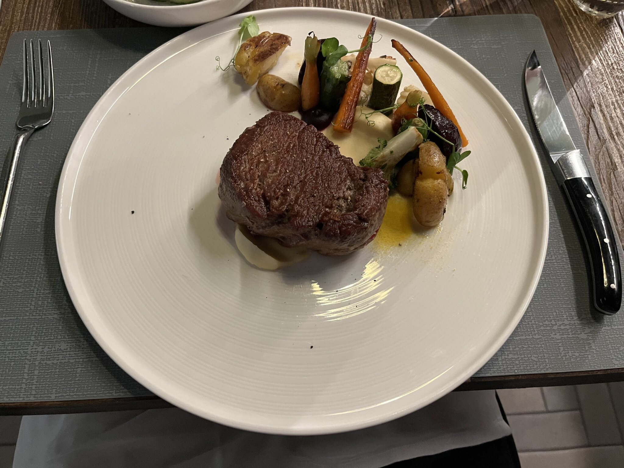 Da es abends erneut gewittert, gehen wir wieder ins gleiche Restaurant statt in die Stadt. Das Rindsfilet ist ausgezeichnet.