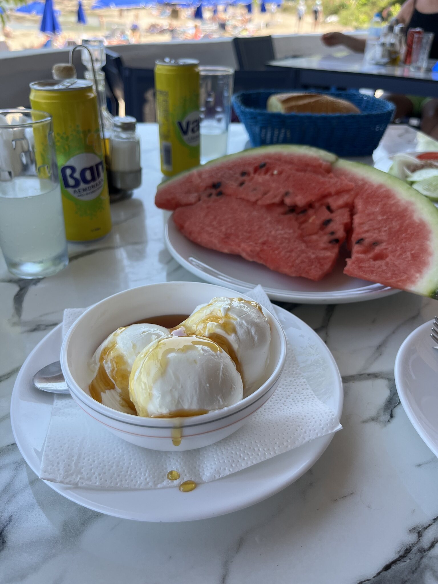 …um kurz danach an die Nordwestküste zu fahren, wo wir ein tolles Restaurant am Strand bei Theologos finden: