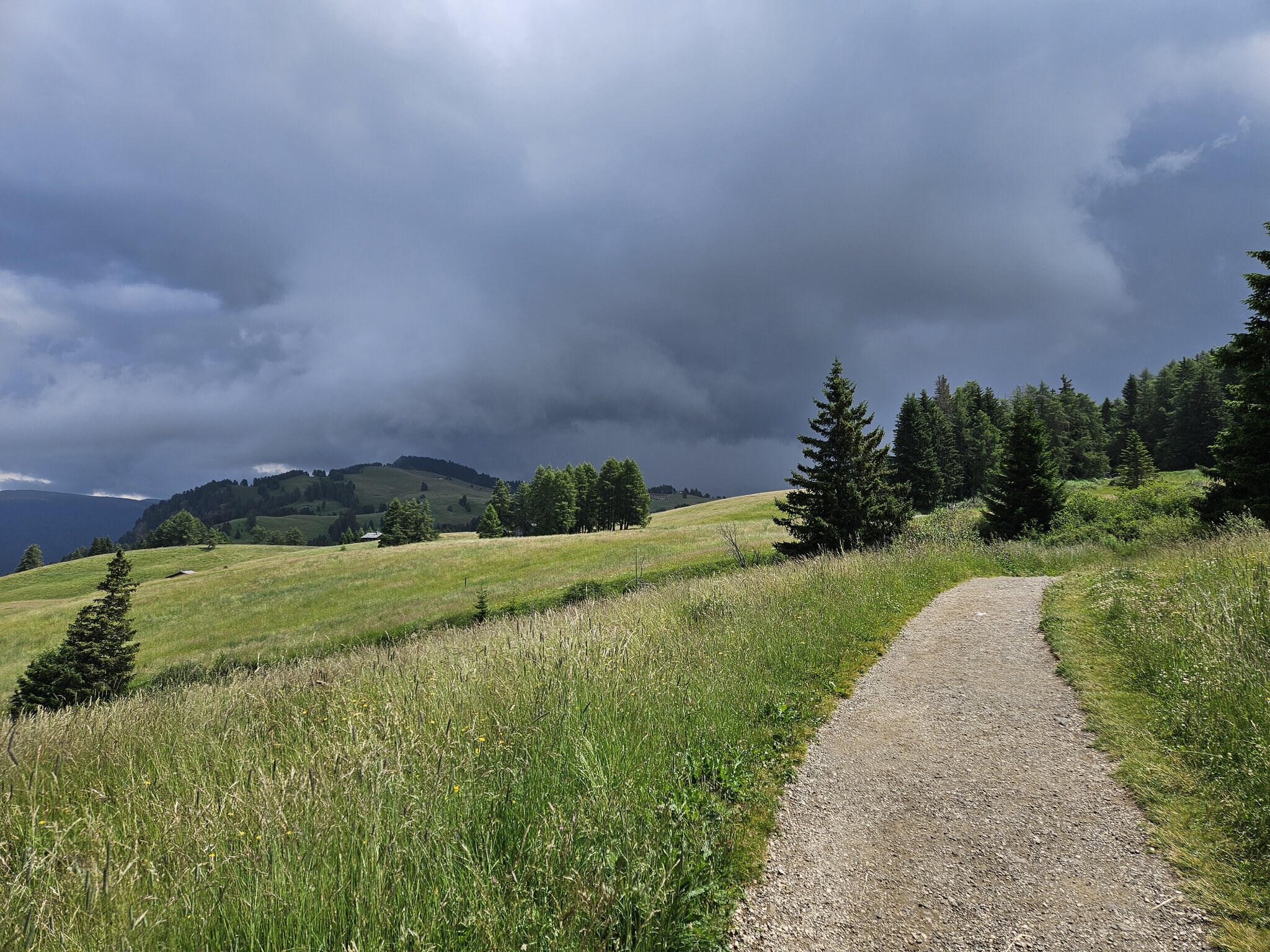 Aufgrund der hohen Hüttendichte stimmte ich dennoch einem Spaziergang zu; auf der Seiser Alm kann man zumindest nur schwer verschwinden 🤪