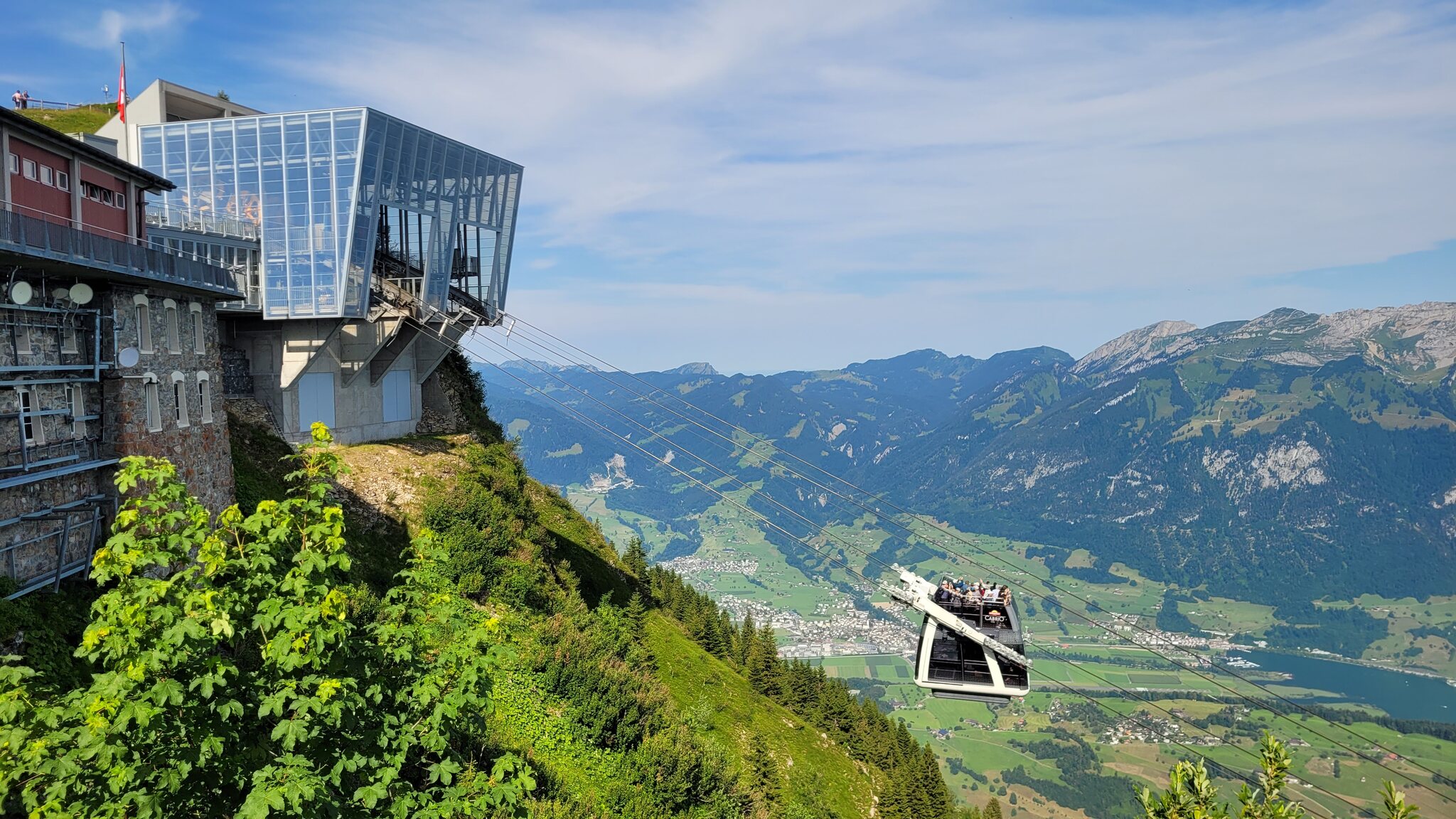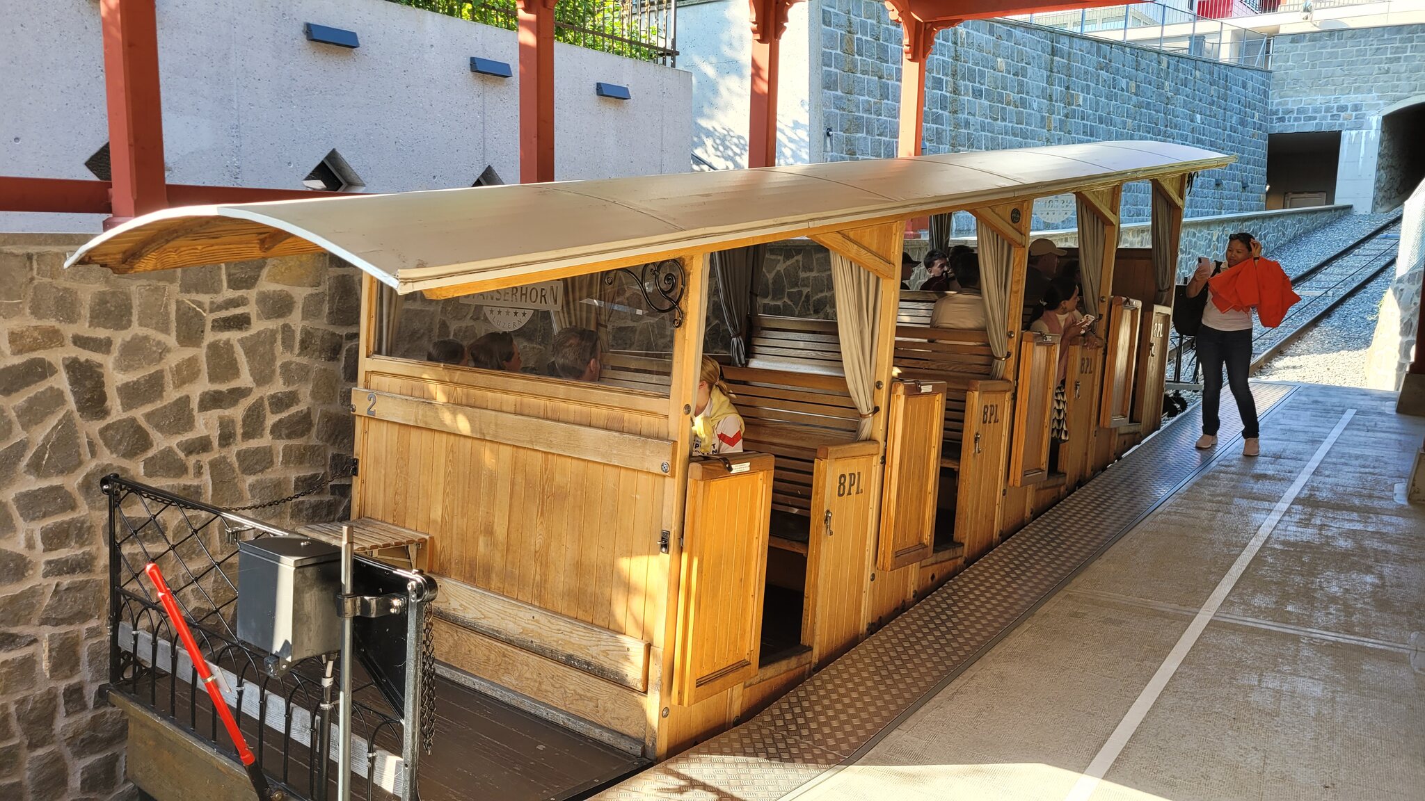Ich wollte schon immer mal Cabrio fahren, daher bin ich heute nach Stans gefahren. Neben den Pilatus-Flugzeugwerken ist der Ort auch bekannt für das Stanserhorn als Ausflugsziel, das ich bisher noch nie angesteuert hatte. Ich war kurz nach 9h vor Ort, bis 9.30h sind die Tickets günstiger und es ist weniger los. Die erste Sektion präsentiert sich noch wie im 19. Jahrhundert mit offenem Holzwaggon.