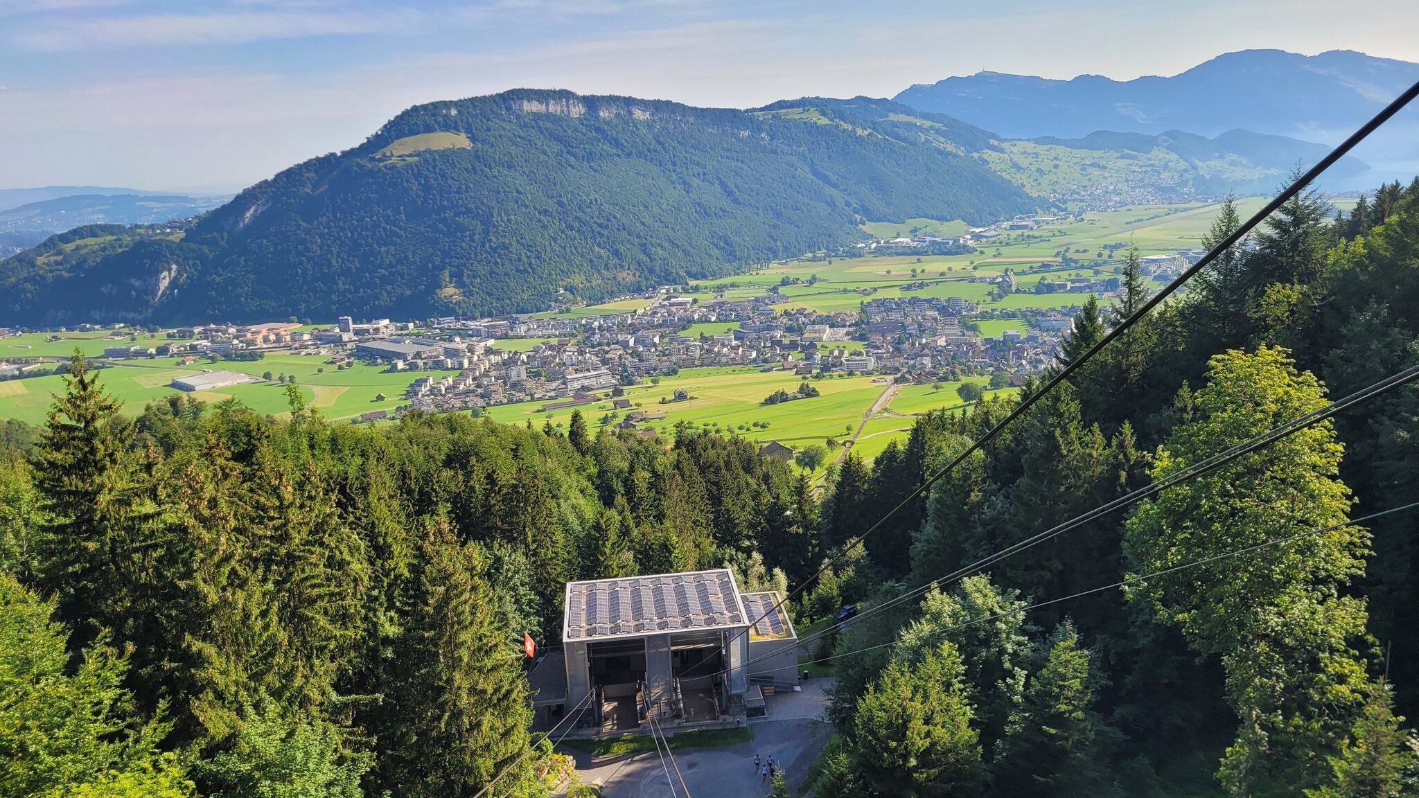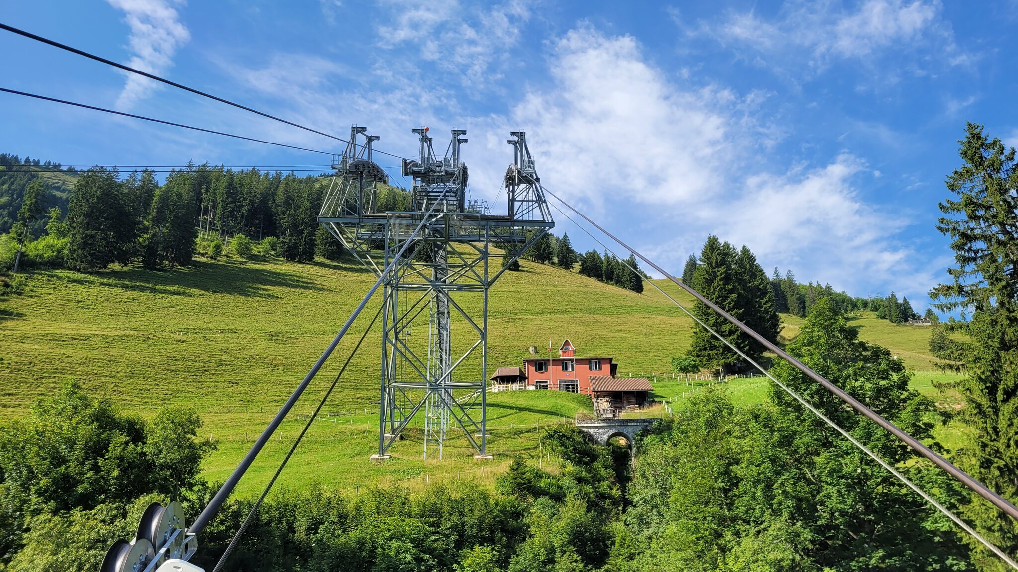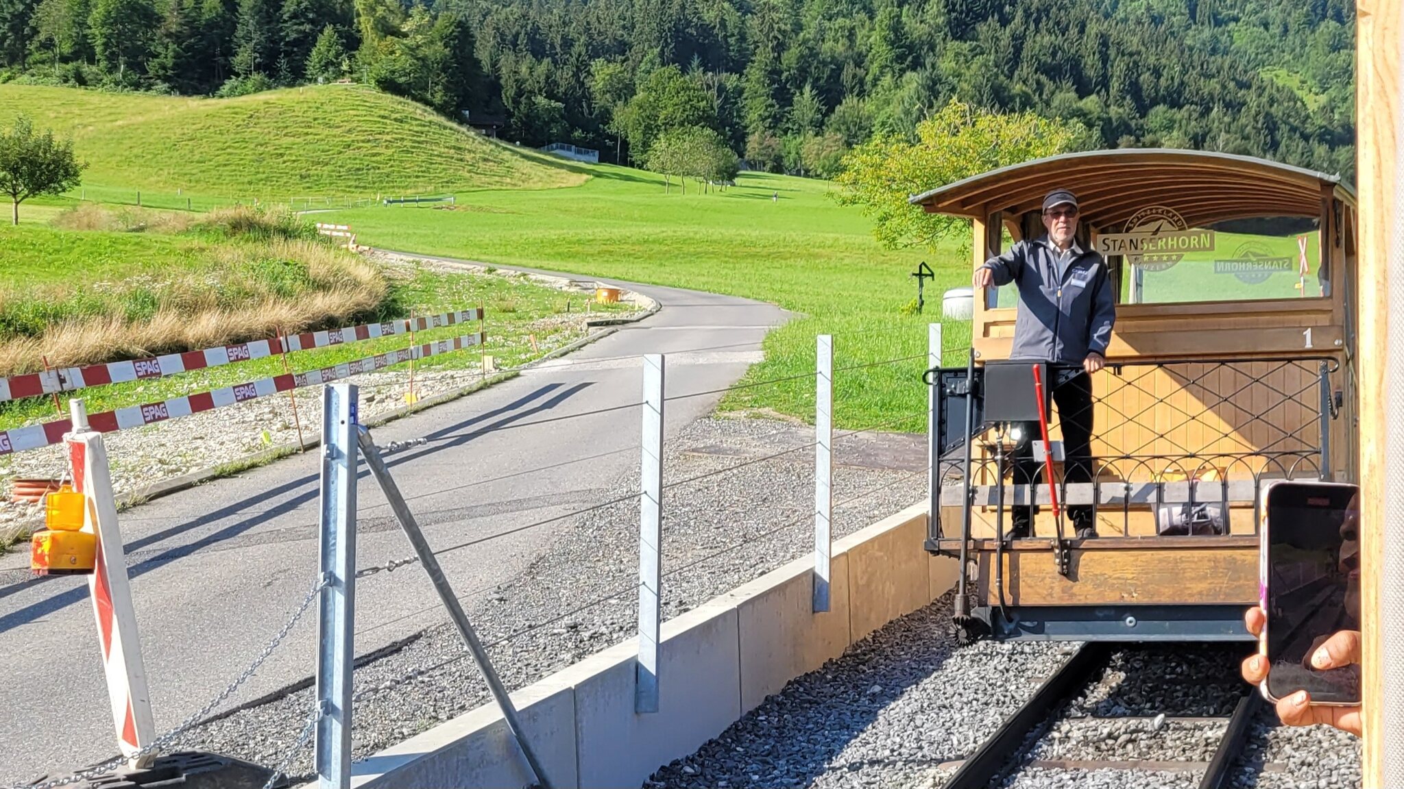 Am Ende der Standseilbahn geht es dann ans "Cabrio"-Fahren, ich bin natürlich aufs Oberdeck gegangen. Die Talstation in Kaelti: