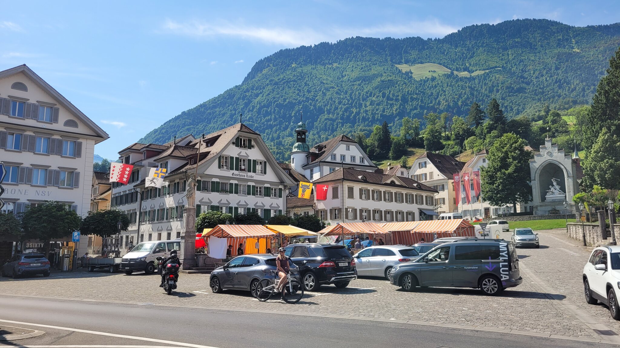 Der Dorfkern von Stans ist auch recht schön, es wurde schon für den 1.August aufgeflaggt.
