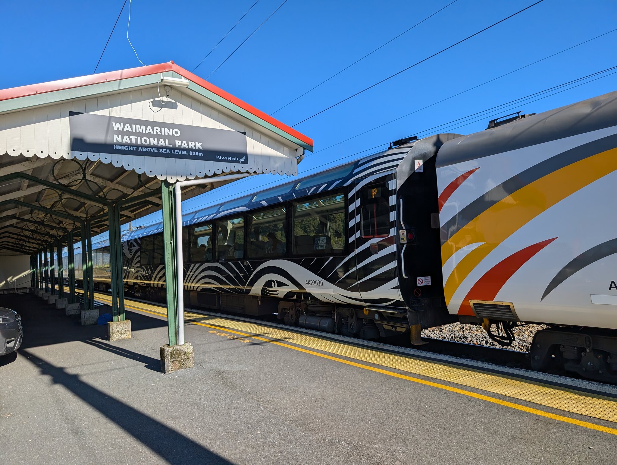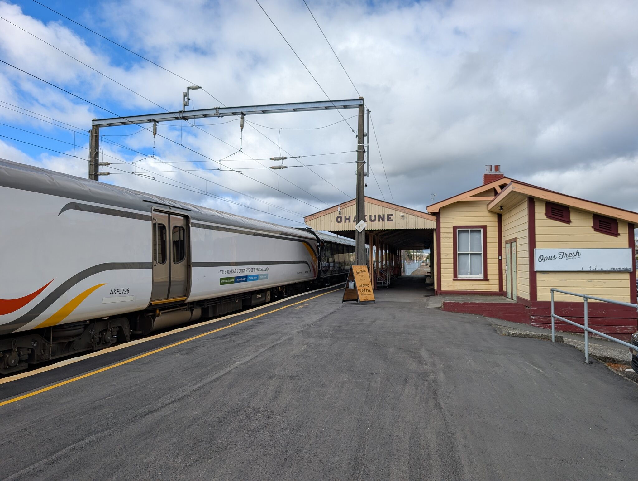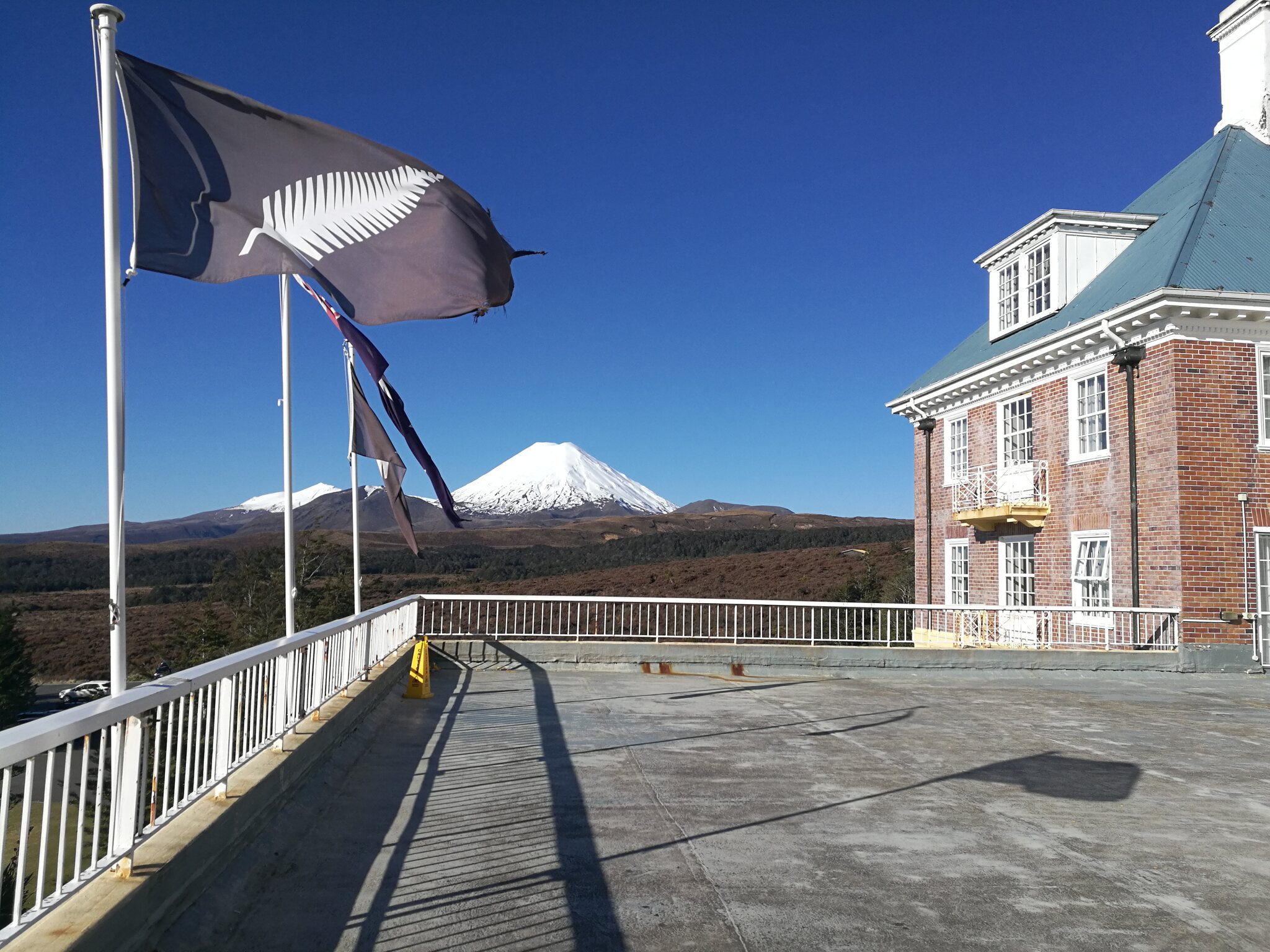 Mit dem Zug gings weiter von Ohakune auf die andere Seite des Mount Ruapehu zur Station National Park. Schon direkt vom Bahnhof sieht man auf den Vulkan Ngauruhoe, der auch bekannt ist als Schicksalsberg in "Herr der Ringe" Filmen. Sonst gibt es im National Park Village (offiziell Waimarino) nicht sehr viel interessantes. Im näher beim Skigebiet gelegenen Whakapapa Village ist seit der Schliessung des ikonischen Chateau Tongariro leider nicht mehr viel Infrastruktur vorhanden (Hotel, Transport). Mir hat es bei meinem letzten Aufenthalt dort im Jahr 2019 gut gefallen, und es ist sehr schade, dass auch dieses Hotel geschlossen werden musste (zu wenig erdbebensicher oder fehlende Rentabilität?). Dort gibt es ein sehr schönes Museum und man ist viel näher bei den vielen Walks und am Vulkan. Fotos aus 2019: Aber heute gings vom National Park mit dem Shuttle zum Skigebiet.