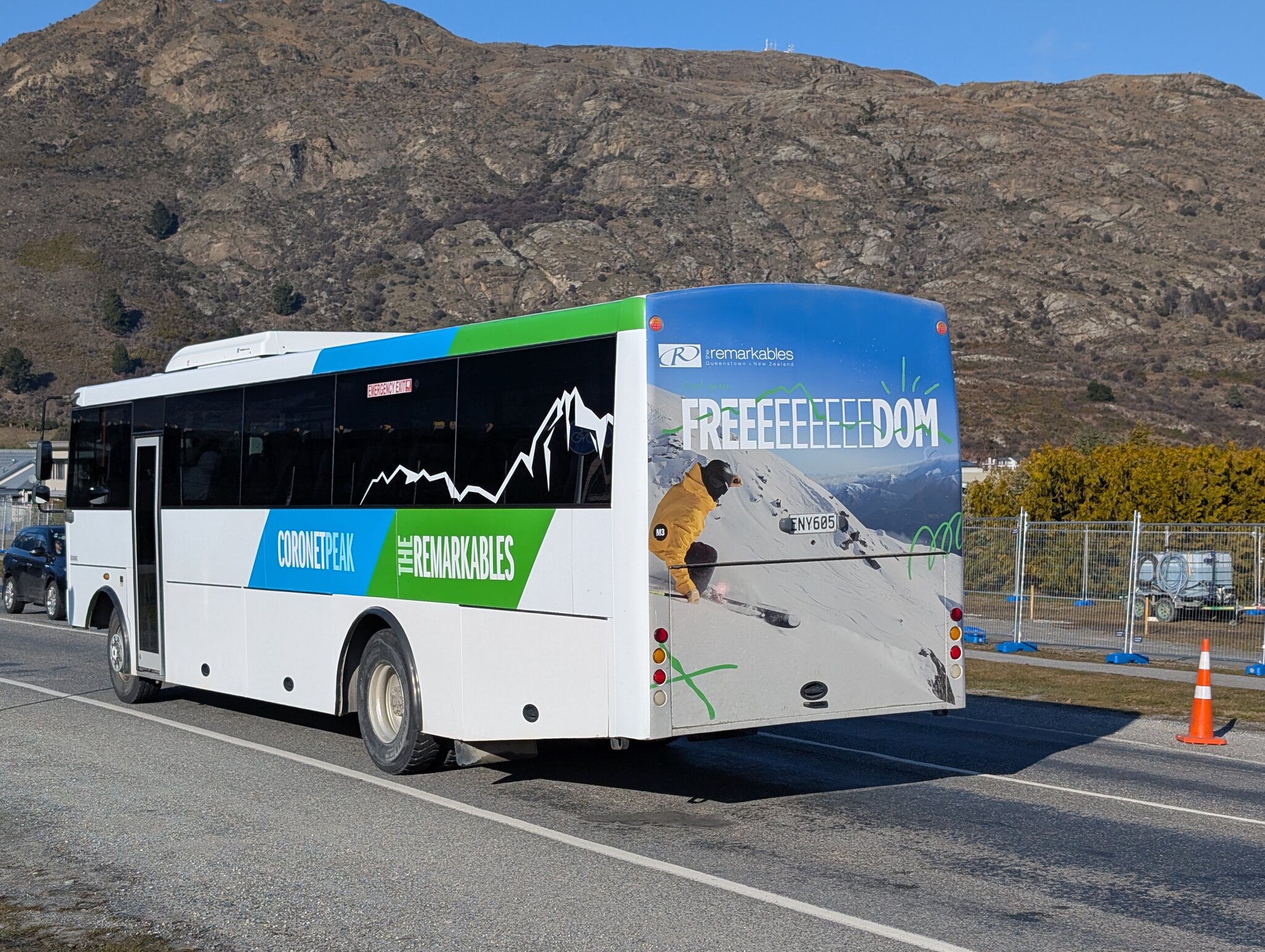 Für nur einen geplanten Skitag habe ich heute den Shuttle direkt aus Christchurch genommen. Das heisst gut 2 Stunden Busfahrt pro Weg... Die Fahrt wird vom Skigebiet-Betreiber subventioniert, was den tiefen Preis von 30 NZ$ (<15 Fr.) erklärt.