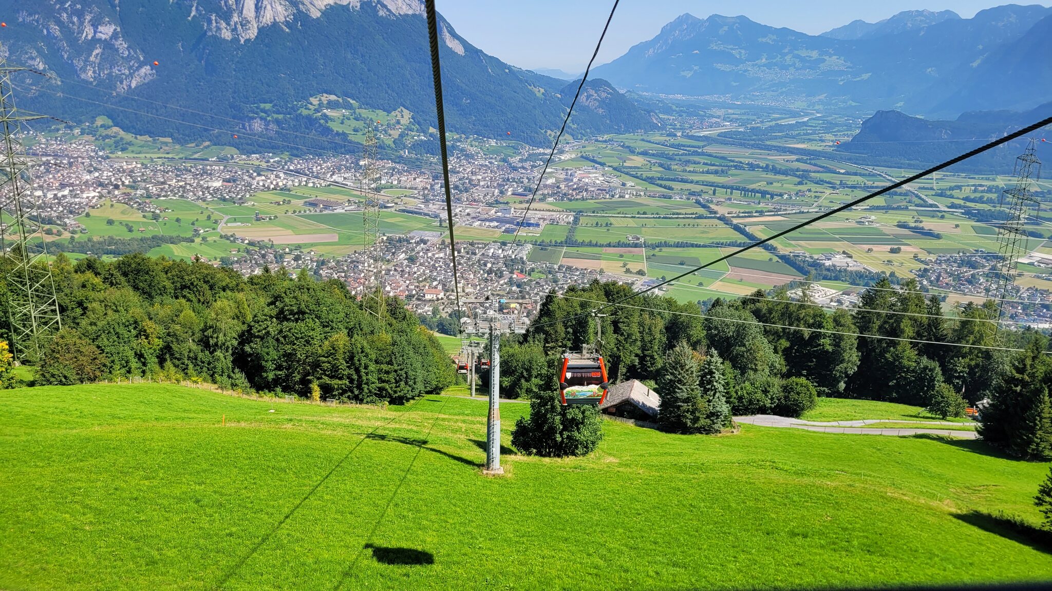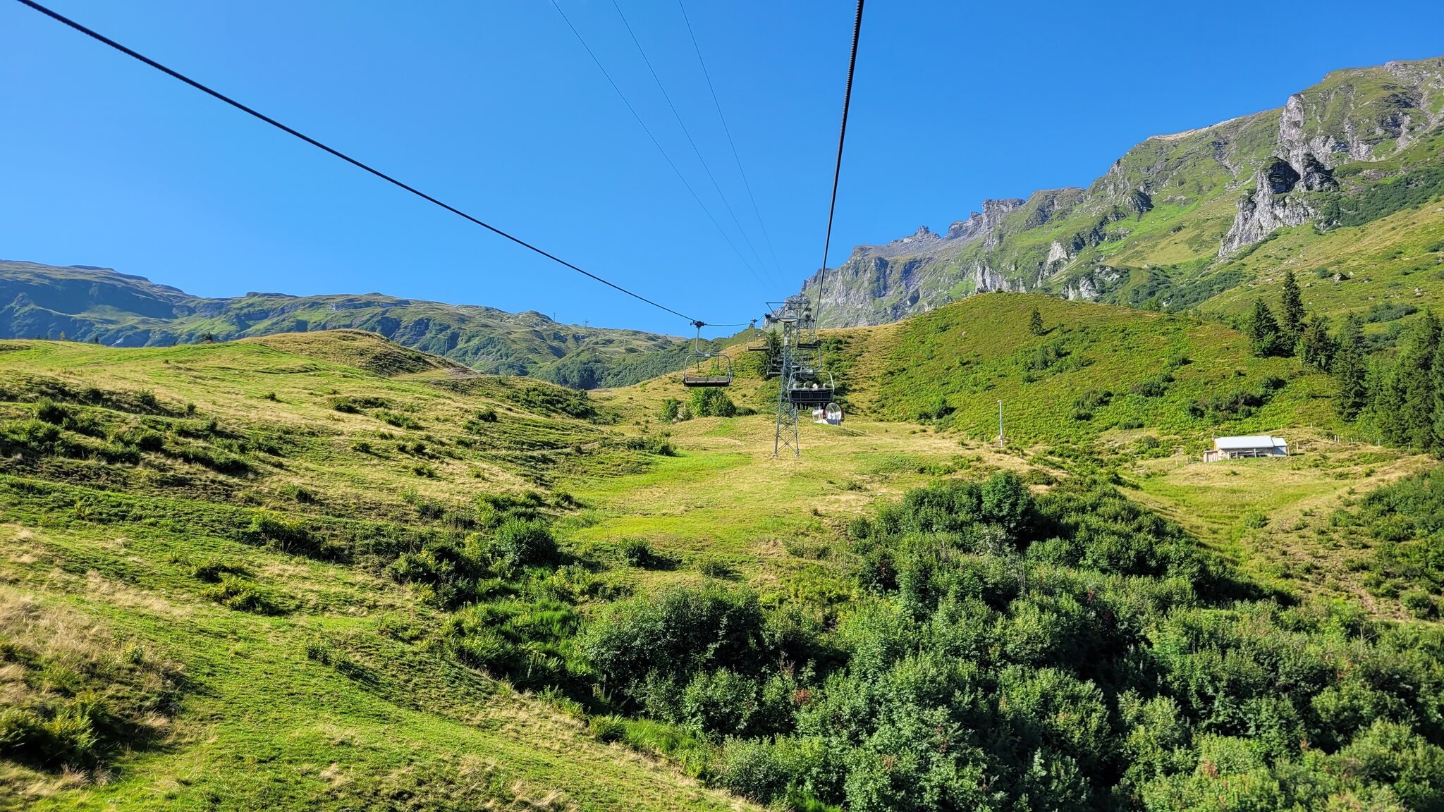 Saftiges Grün an der ersten Sektion, allerdings war es in der Kabine aufgrund der Wärme weniger angenehm als auf den Sesselliften.