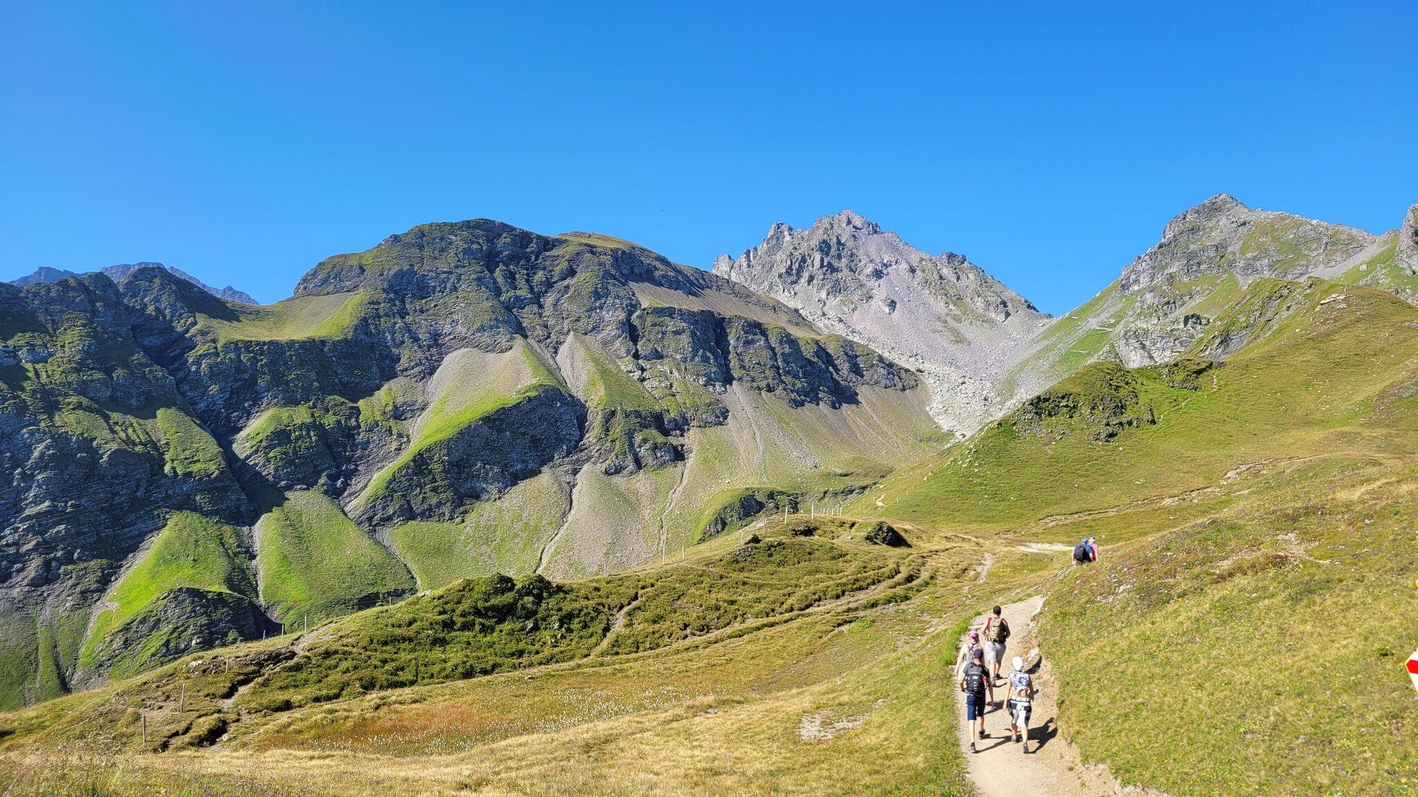 Und hier noch ein gezoomtes Bild von der Gabelung aus, wo sich die 5-Seen-Wanderung vom Pizolweg trennt: