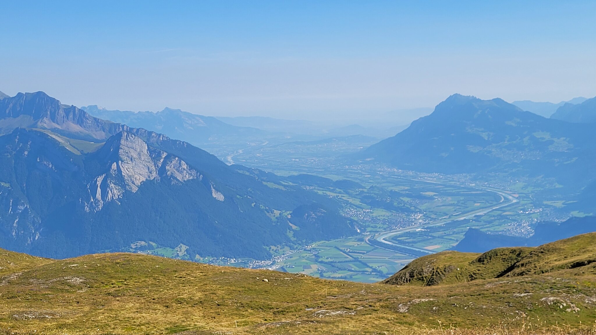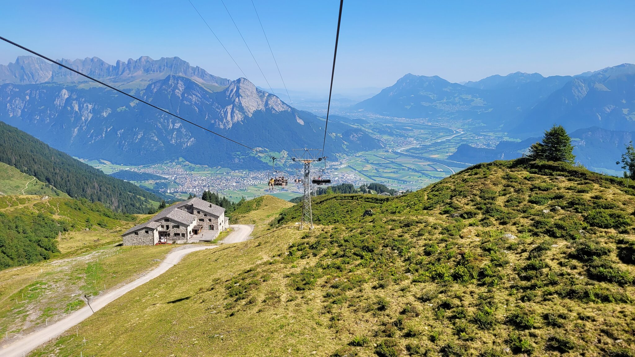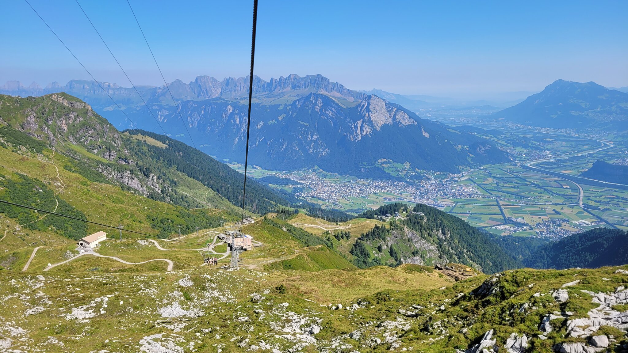 Ich bin oben den Grat entlang zwischen den beiden Bergstationen, bin dann aber doch wieder auf der Wangser Seite runter, weil die ÖV-Verbindung zwischen den beiden Talstationen etwas ungünstig ist. Das Ticket ist für beide Achsen gültig.