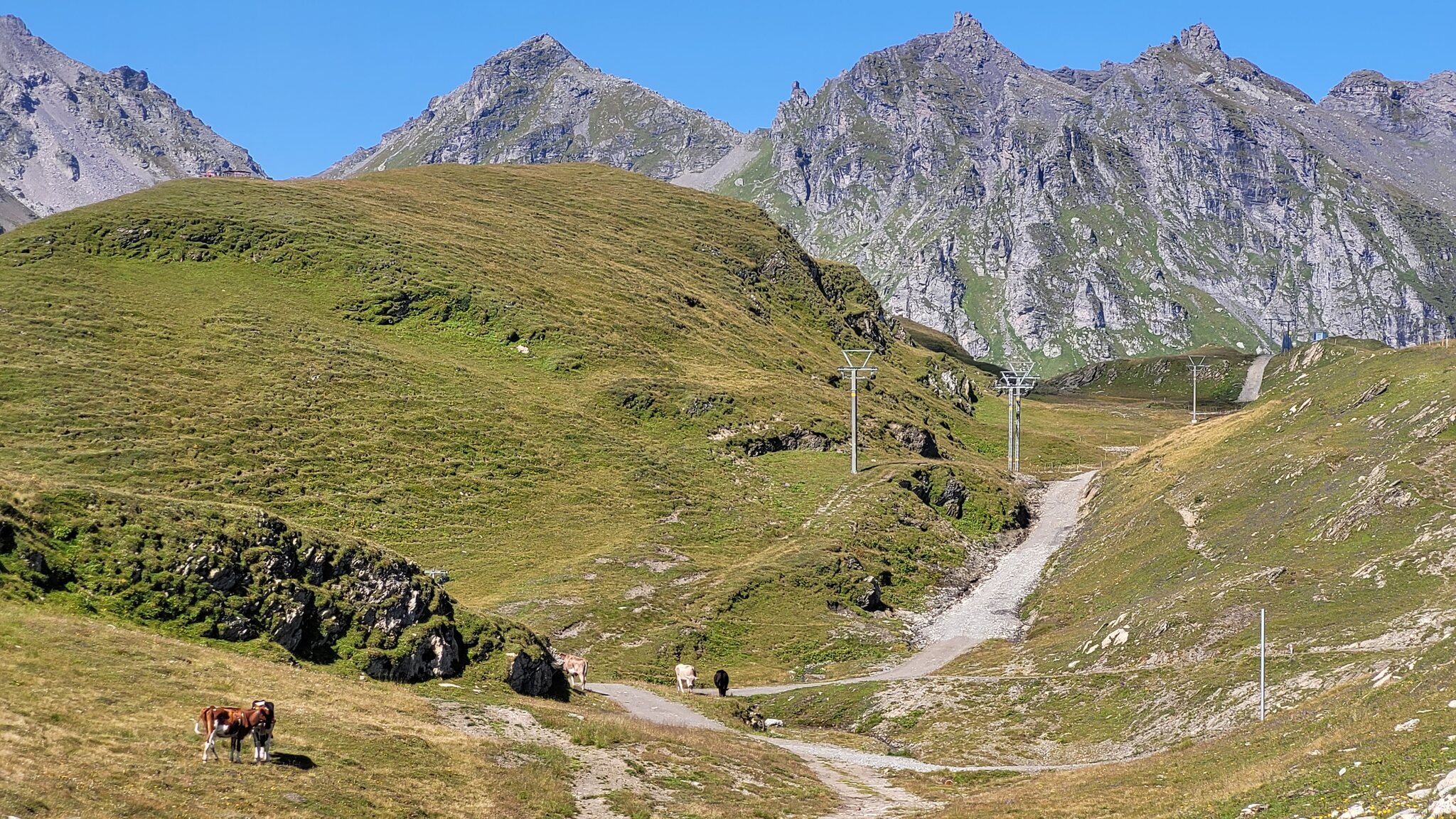 Die Alternative, unten zurück zu laufen, inklusive schönem Wasserfall, hatte ich hier beschrieben.Ich bin oben den Grat entlang zwischen den beiden Bergstationen, bin dann aber doch wieder auf der Wangser Seite runter, weil die ÖV-Verbindung zwischen den beiden Talstationen etwas ungünstig ist.