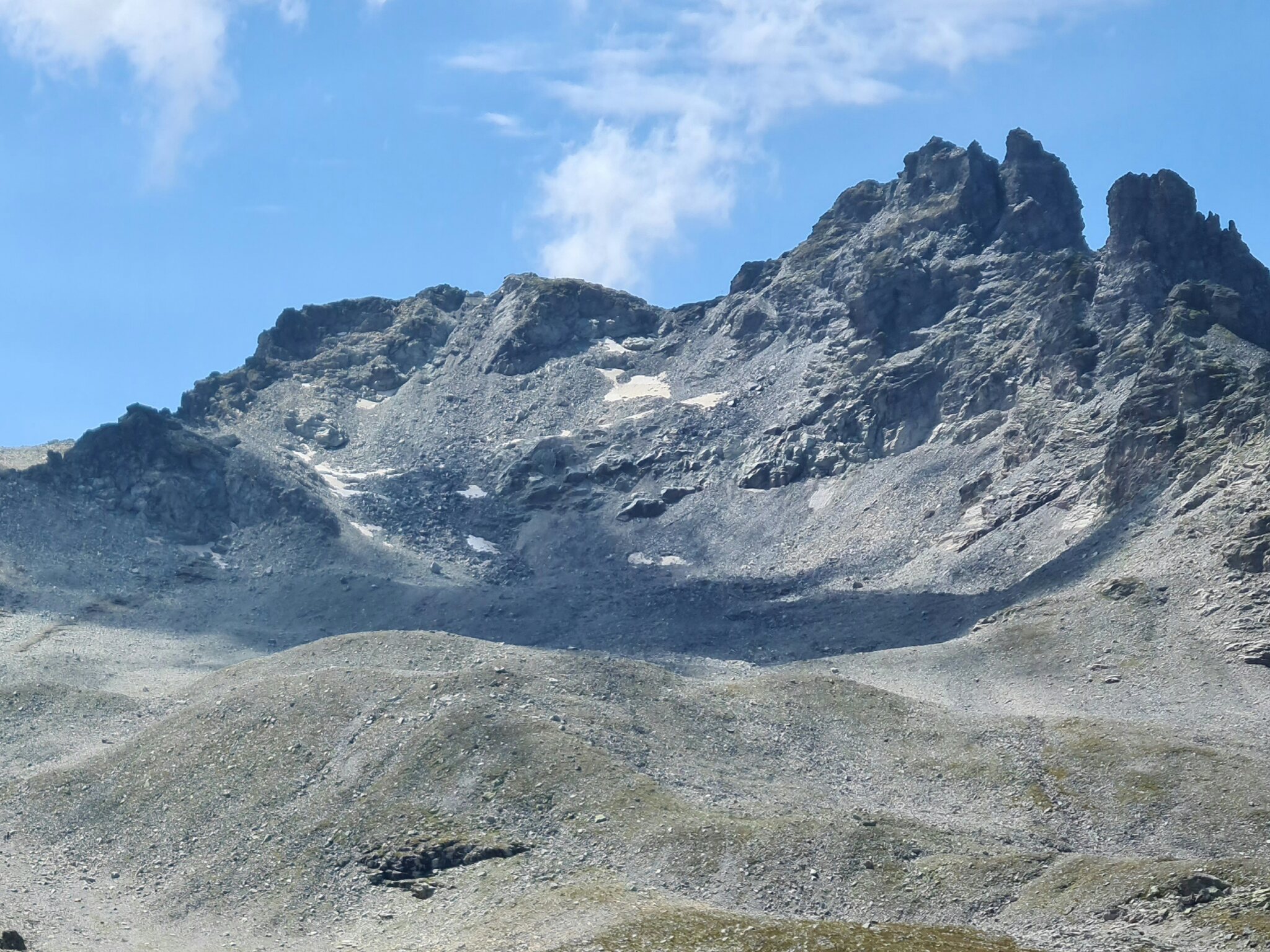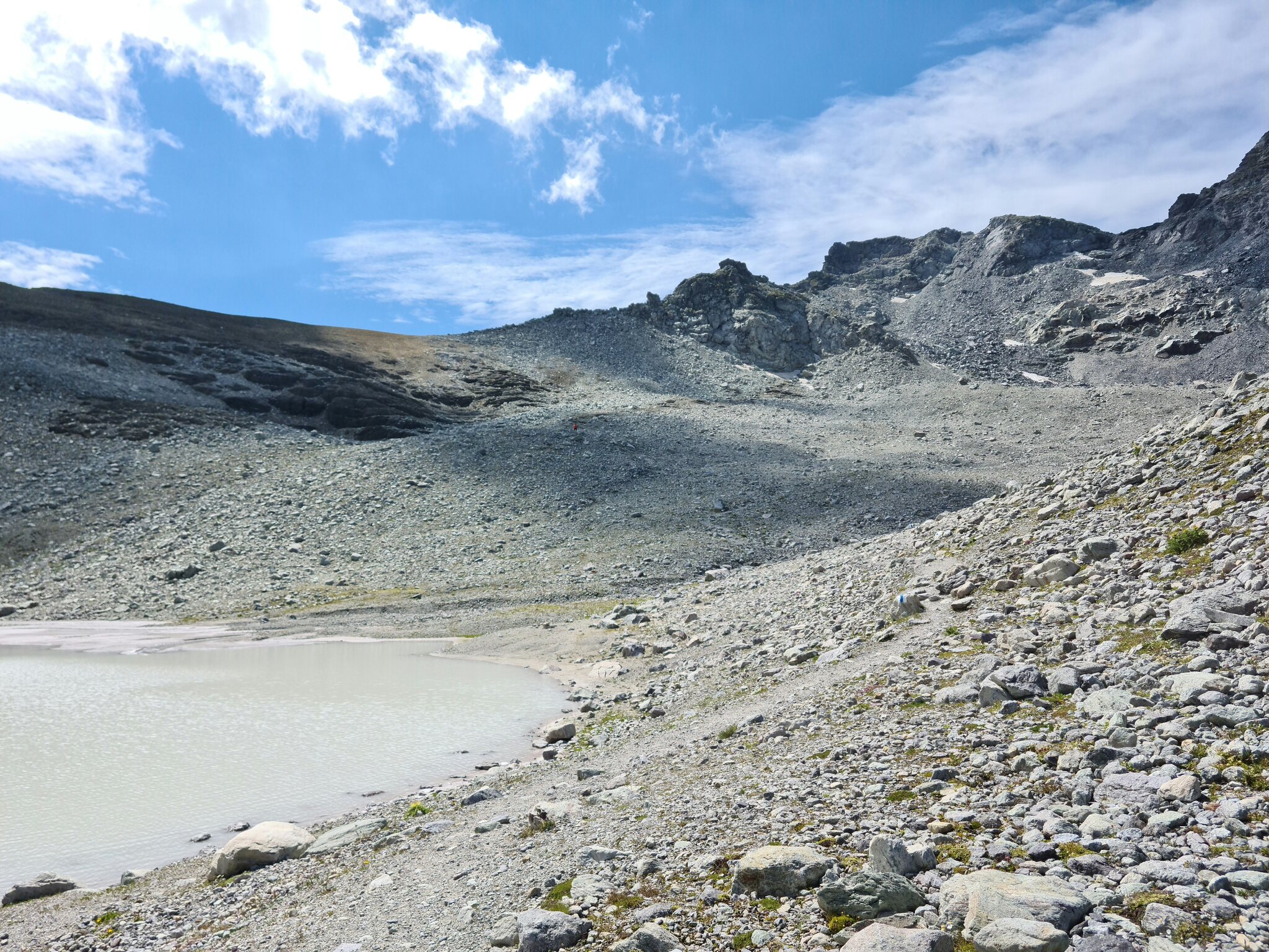 Sichtbar war kein Eis mehr, wobei es theoretisch unter den Schneefeldern winzige Eisreste geben könnte, ich kann mir aber eher vorstellen, dass unter dem Geröll noch etwas Eis liegt, aber das ist nur Spekulation.