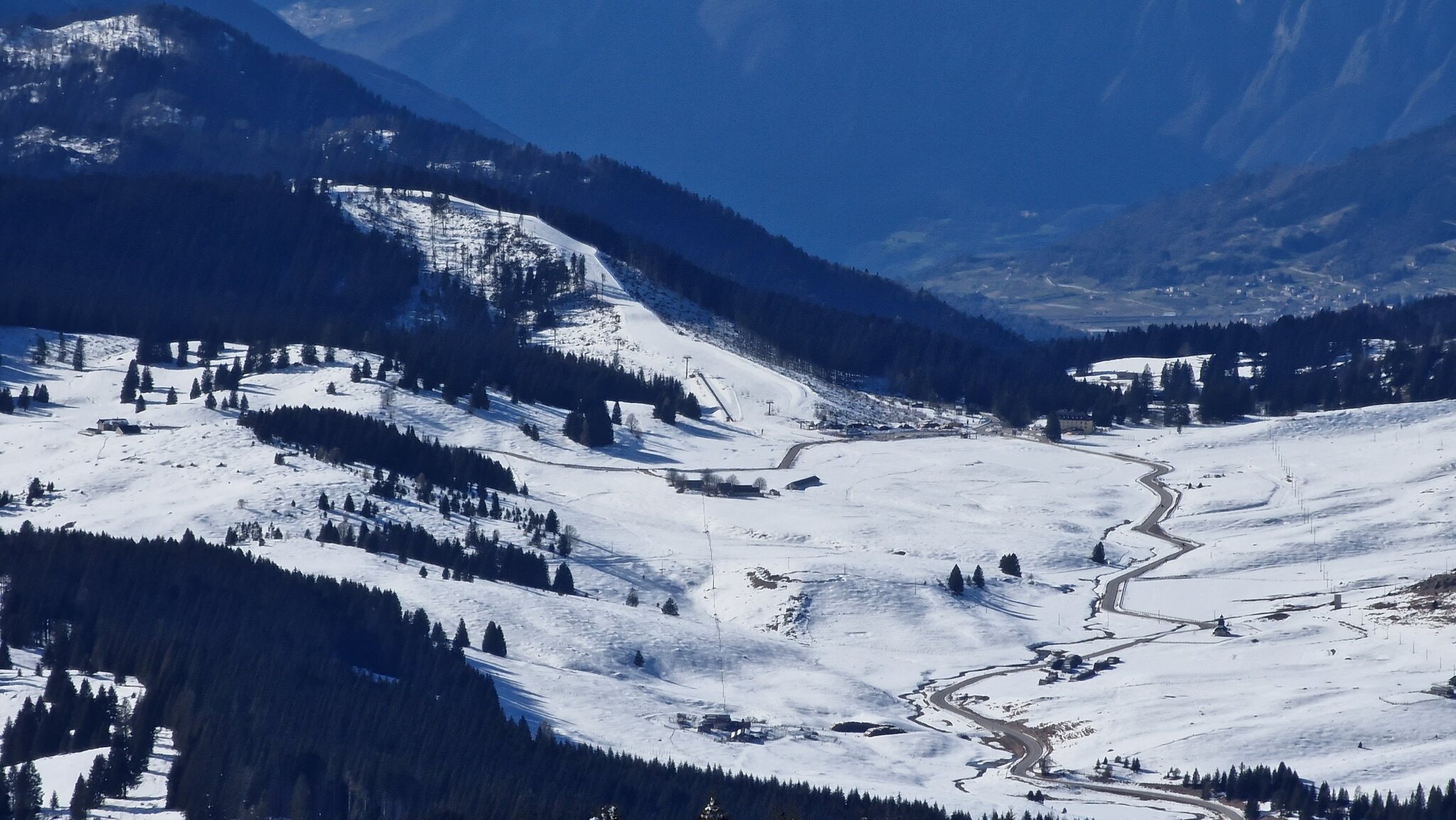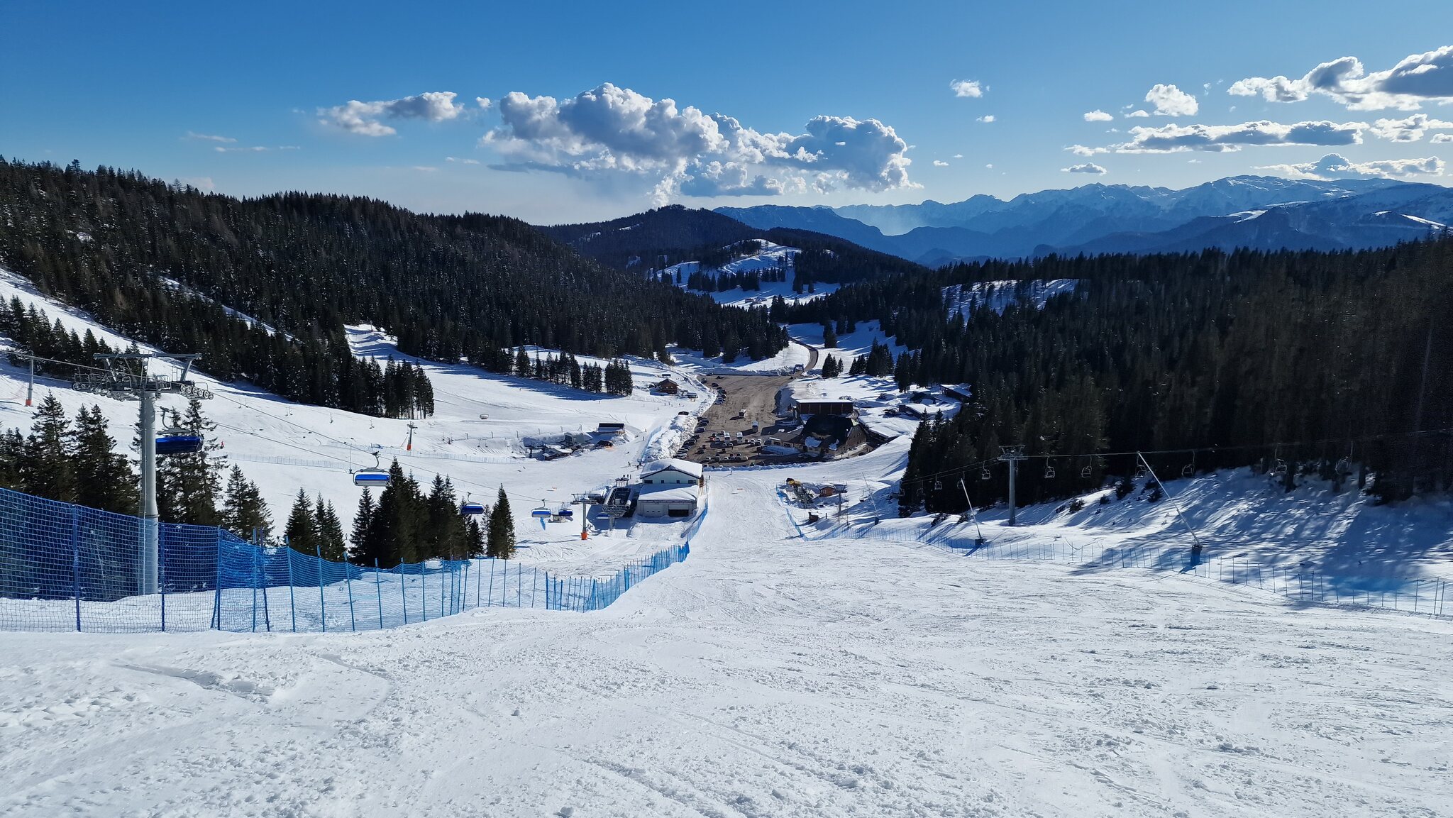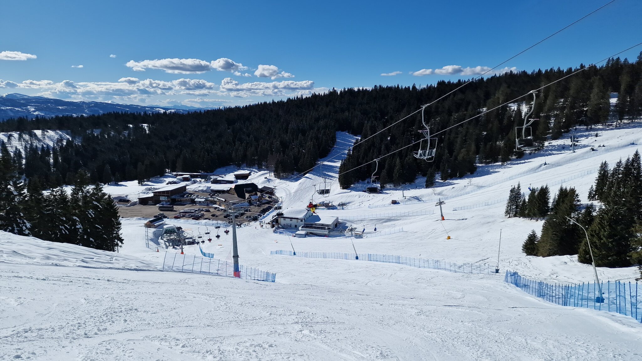 Wer durch Venetien der SP78 entlangfährt, stösst in der kleinen Ortschaft Mezzaselva auf einen Wegweiser, der Wintersportler mit der Aufschrift Sciovie Verena 2000 in Richtung Norden lotst. Es folgt ein unscheinbares Strässchen, das weniger durch seine Belagsqualität als vielmehr durch seine Länge auffällt. Nach etwa zehn Kilometern und einer gefühlten Ewigkeit erreicht man schliesslich einen Schlagbaum, der den Zugang zu einer grosszügigen Parkplatzfläche markiert. Von hier aus ist das Ziel bereits gut zu sehen. Eine kuppelbare Sesselbahn zieht sich in gerader Linie vom Parkplatz hinauf bis zum Monte Verena. Kaum zu glauben, aber hier steht tatsächlich eine moderne Sesselbahn mit blauen Hauben, wie man es sonst aus Zermatt kennt. Doch mit Zermatt hat das hier wenig zu tun, alles ist zweckmässig eingerichtet. Ein grosser Parkplatz, einige Infrastrukturgebäude und eine Handvoll Lifte, die ebenso eine Handvoll Pisten erschliessen.