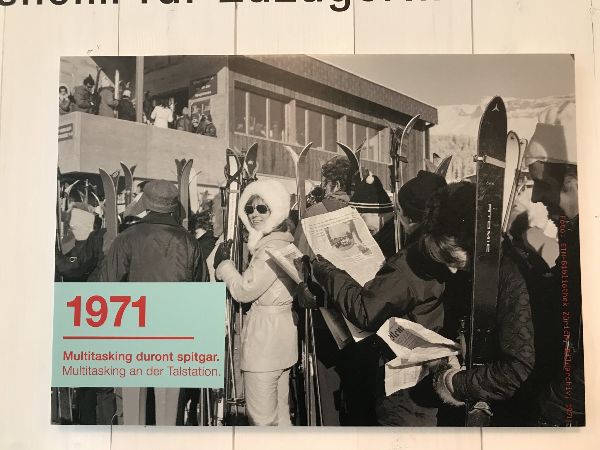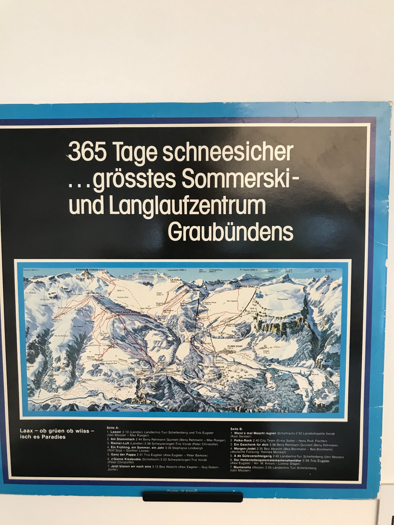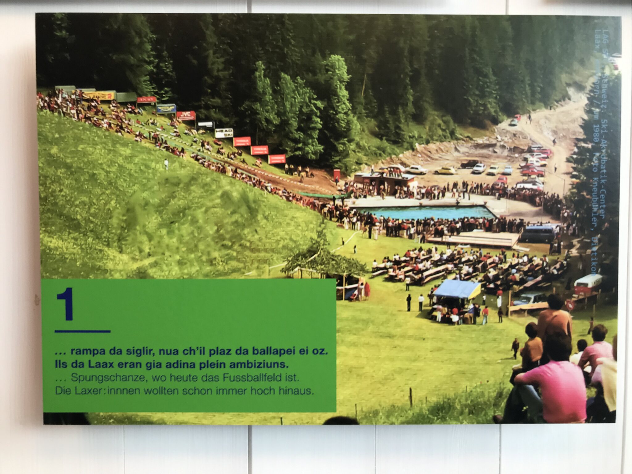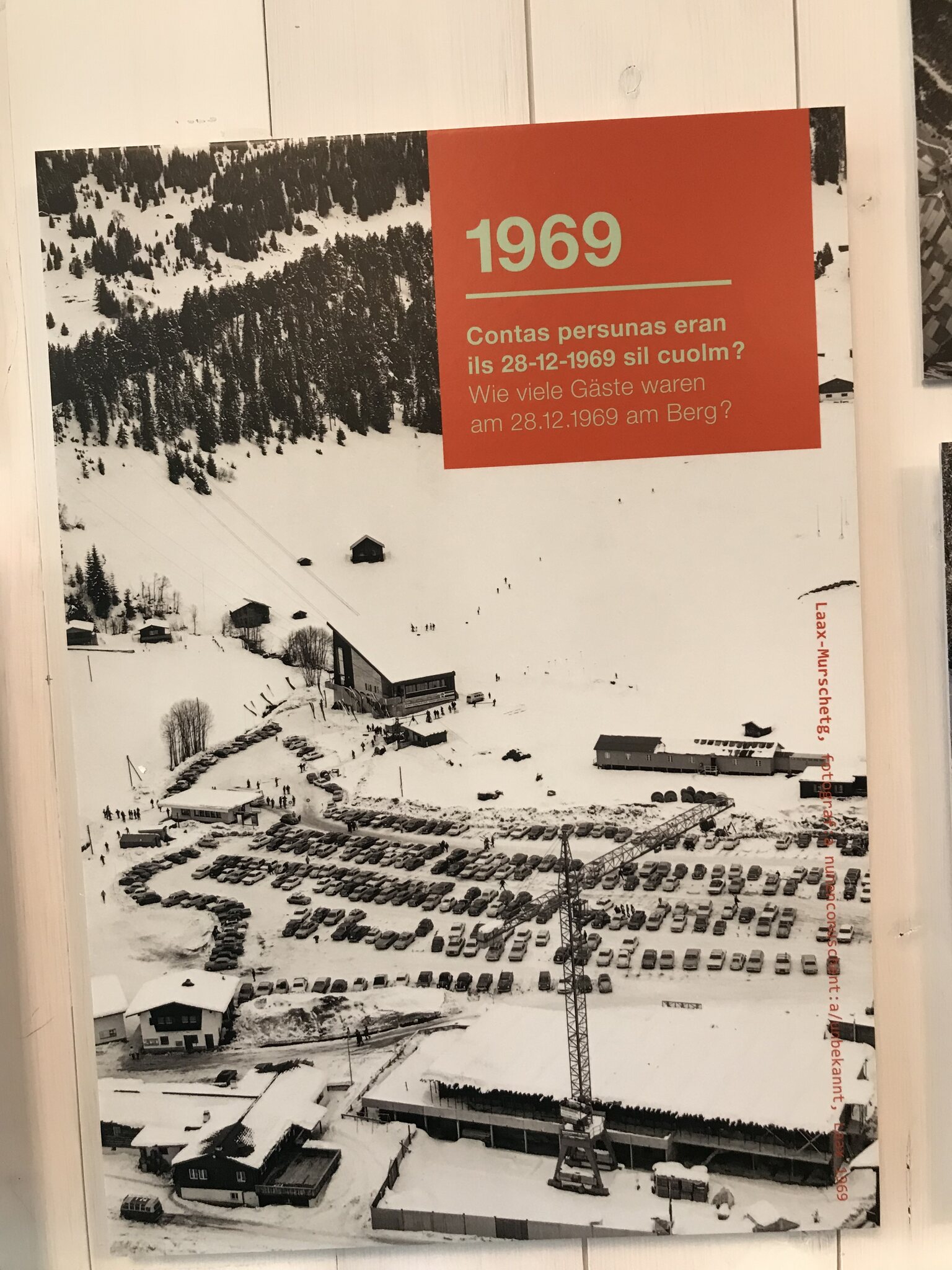 Die Ausstellung zeigt viele alte Bilder, Postkarten, Plakate, Karten der Liftanlagen und einige interessante Statistiken über Laax.