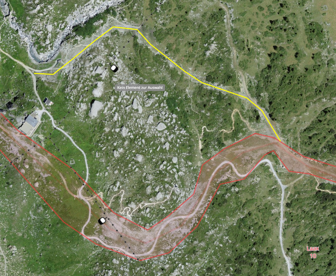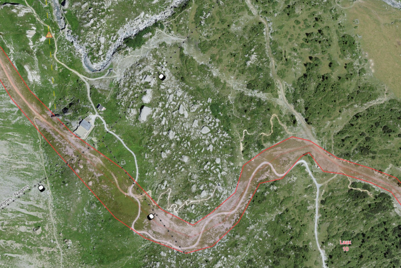 Beim betrachten dieses Bereichs in Luftbildern ist mir schon lange aufgefallen, dass genau entlang dieser Variante der Boden verdächtig anders aussieht. Als ob man dort mal eine Piste modelliert hat. Hier der Ausschnitt: