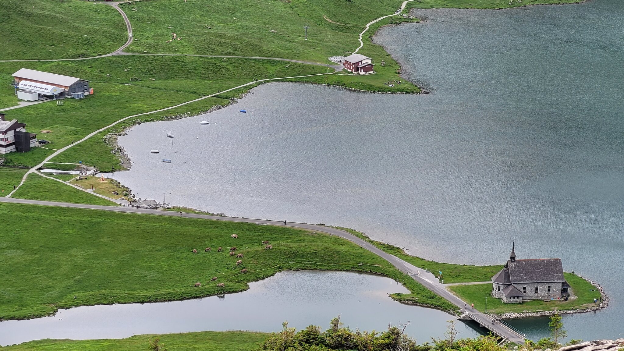 Heute war nur ein kurzer Trip nach Melchsee-Frutt am Vormittag drin, für den Nachmittag war schon schlechtes Wetter gemeldet. Im Sommer sieht der Melchsee schon komplett anders aus, vom Verbindungslift über den See ist keine Spur zu sehen.