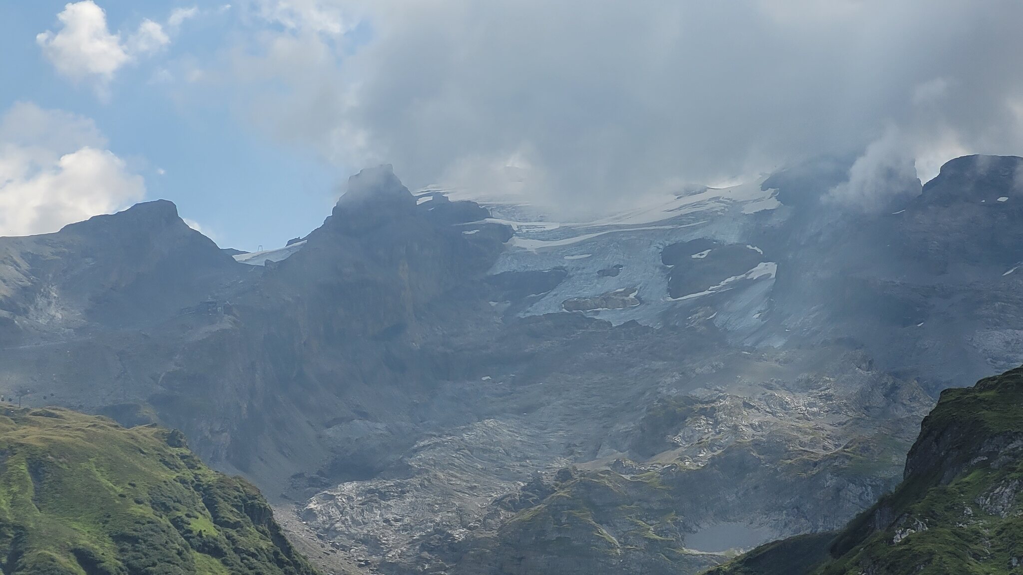 Unten am Gletscher sieht man leider schon das Blankeis, die Hitzwelle war sicher nicht gut.