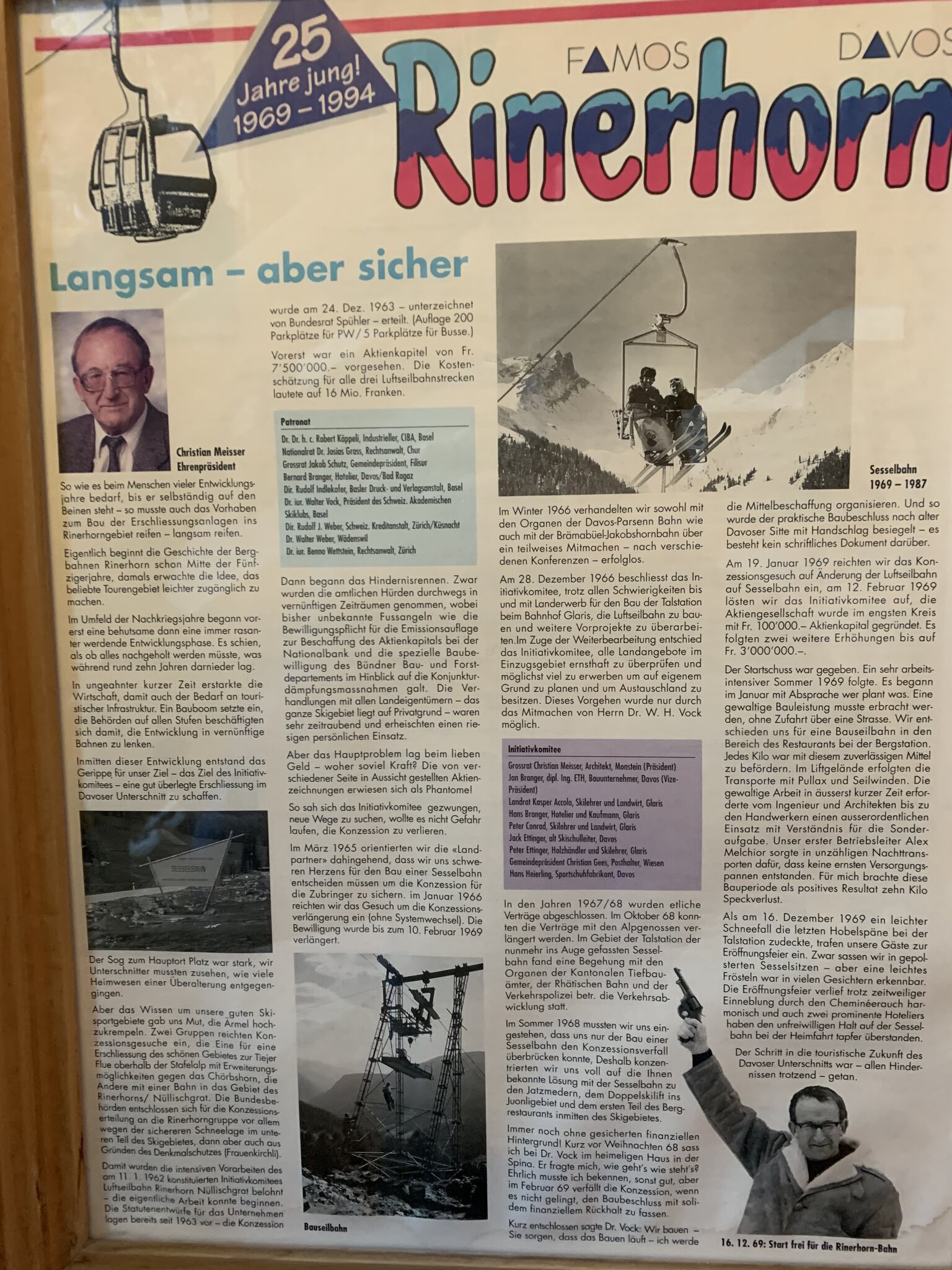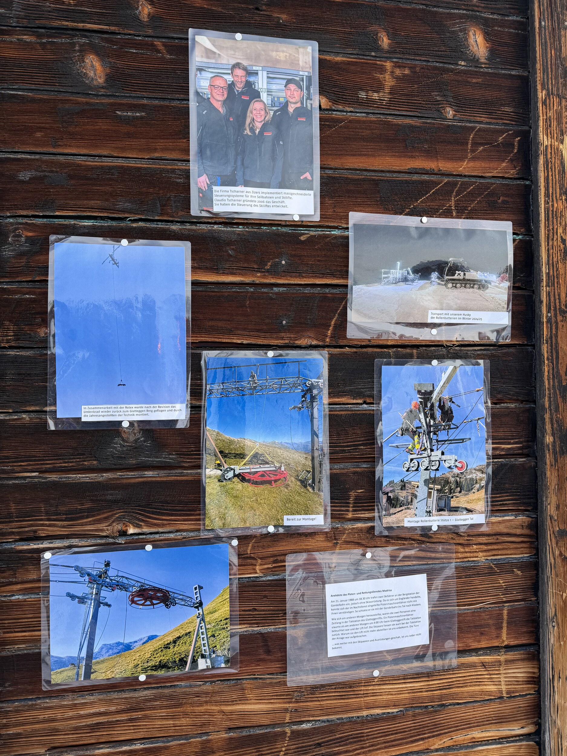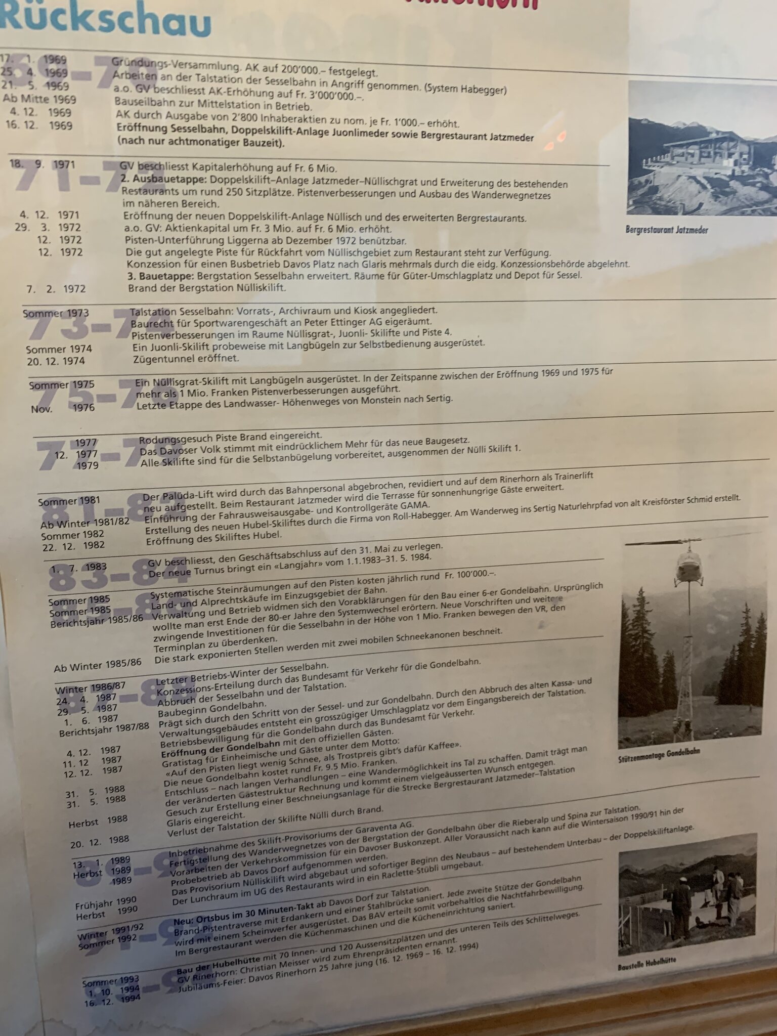 Die Geschichte der ersten 25 Jahre auf dem Rinerhorn war früher im Restaurant aufgehängt.