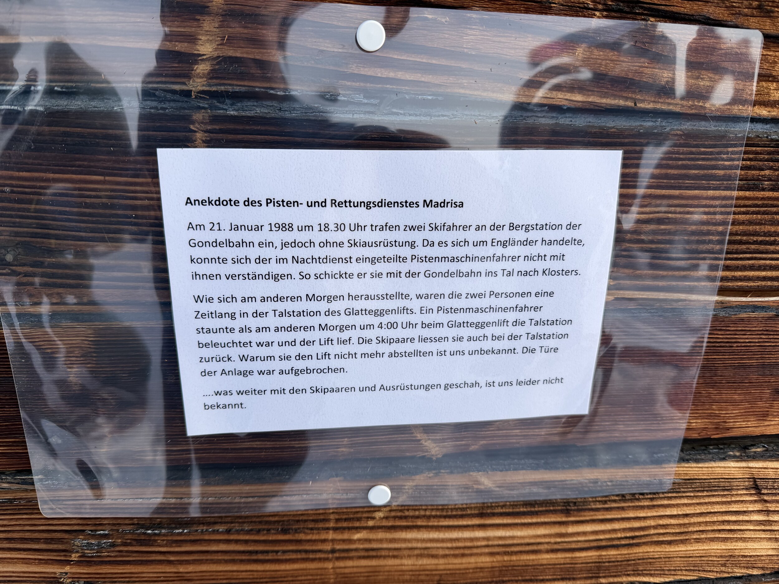 In meinem Hotelzimmer in Klosters hängt dieses Bild (sorry, die Spiegelungen krieg ich nicht raus). Ich gehe mal davon aus, dass es aus der Region stammt. Aber woher? Ist das eine alte Schifer- oder Madrisabahn? Oder was?