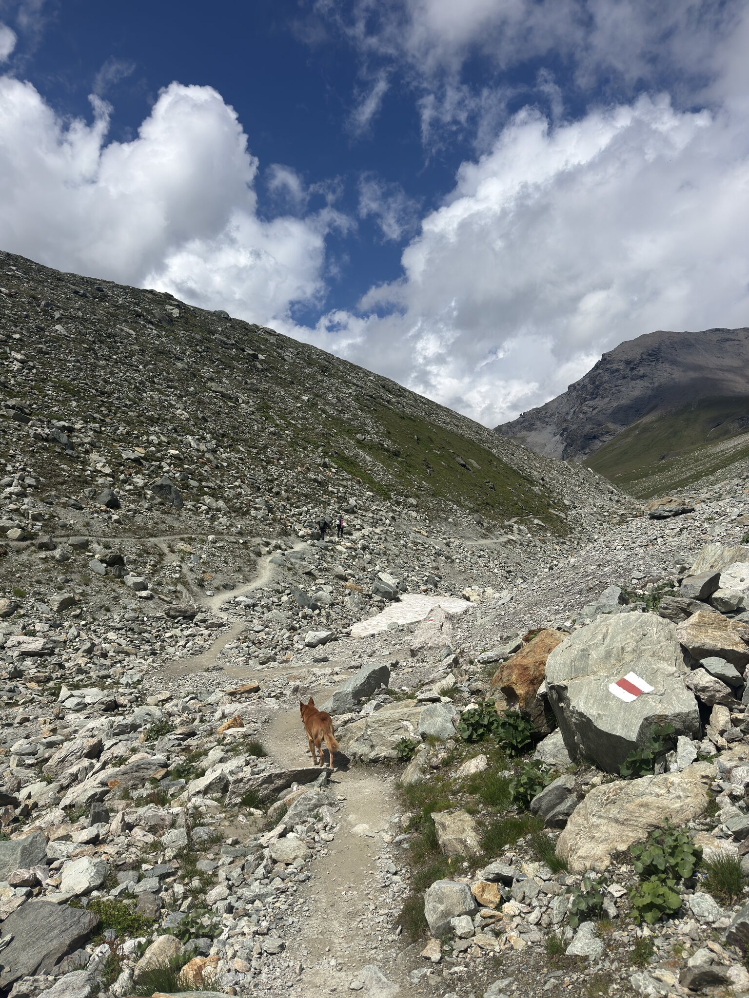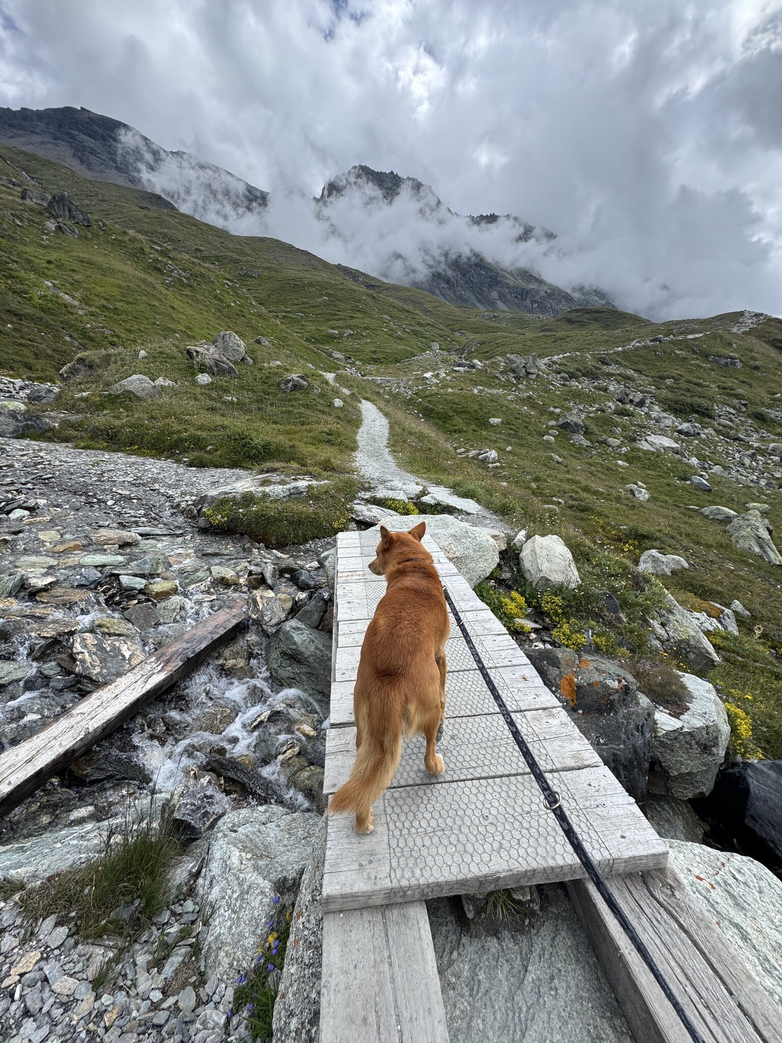 Traditionsgemäss geht es am 1. August auf einen Ausflug mit meinem Hund. Während es letztes Jahr nach La Plagne Bellecôte ging, führte uns die Reise diesmal ins Val d’Anniviers. Fast zwei Stunden dauerte die Fahrt bis zum Parkplatz am Lac de Châteaupré. Dieser liegt im Moiry-Tal, einem der beiden Äste, in die sich das Val d’Anniviers bei Vissoie aufteilt.