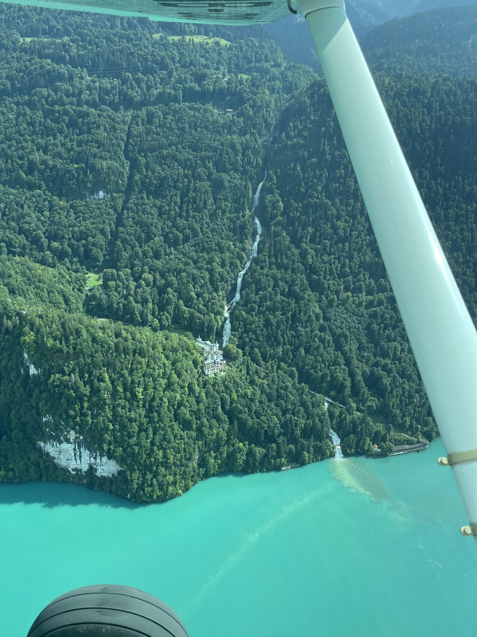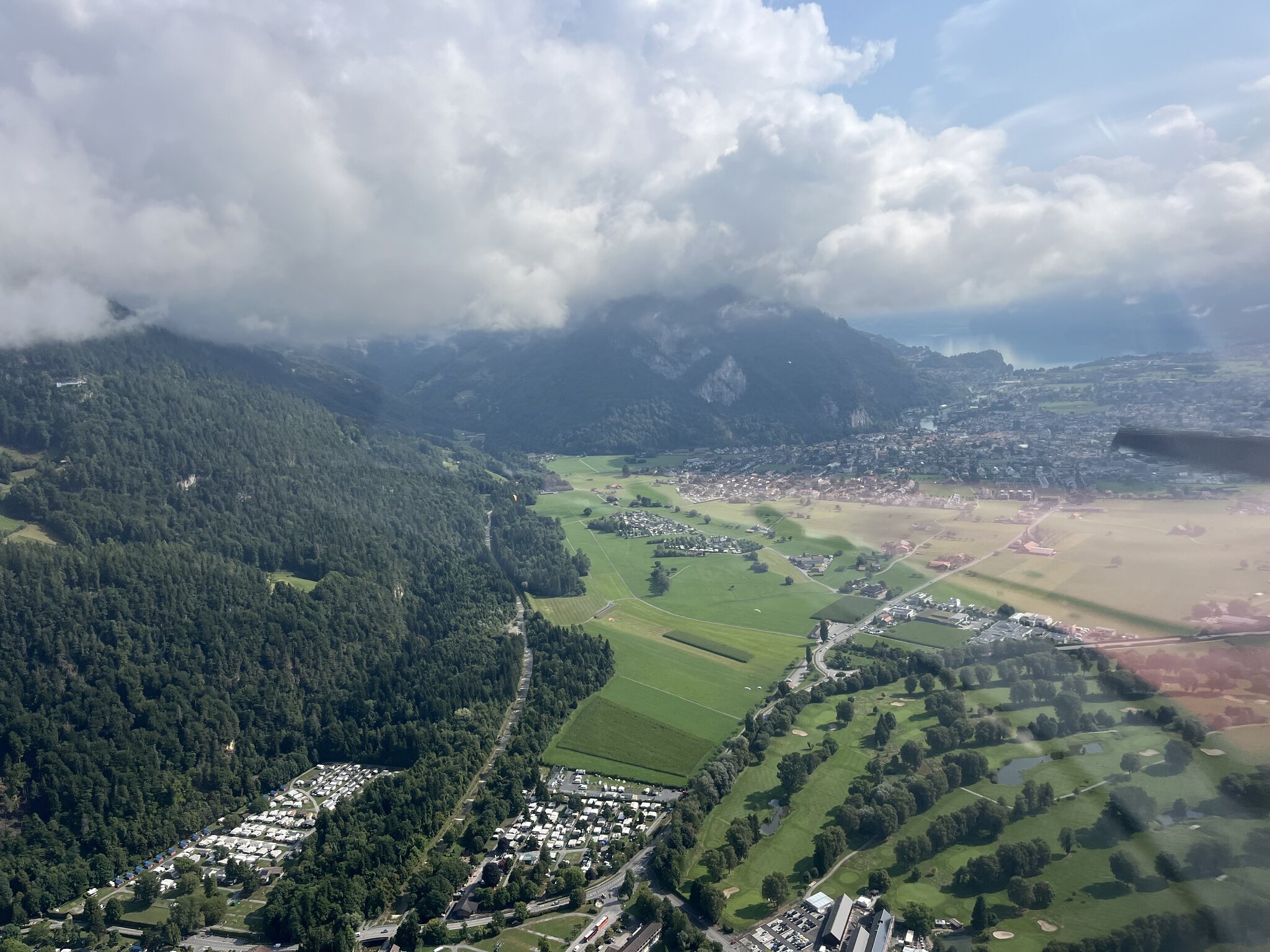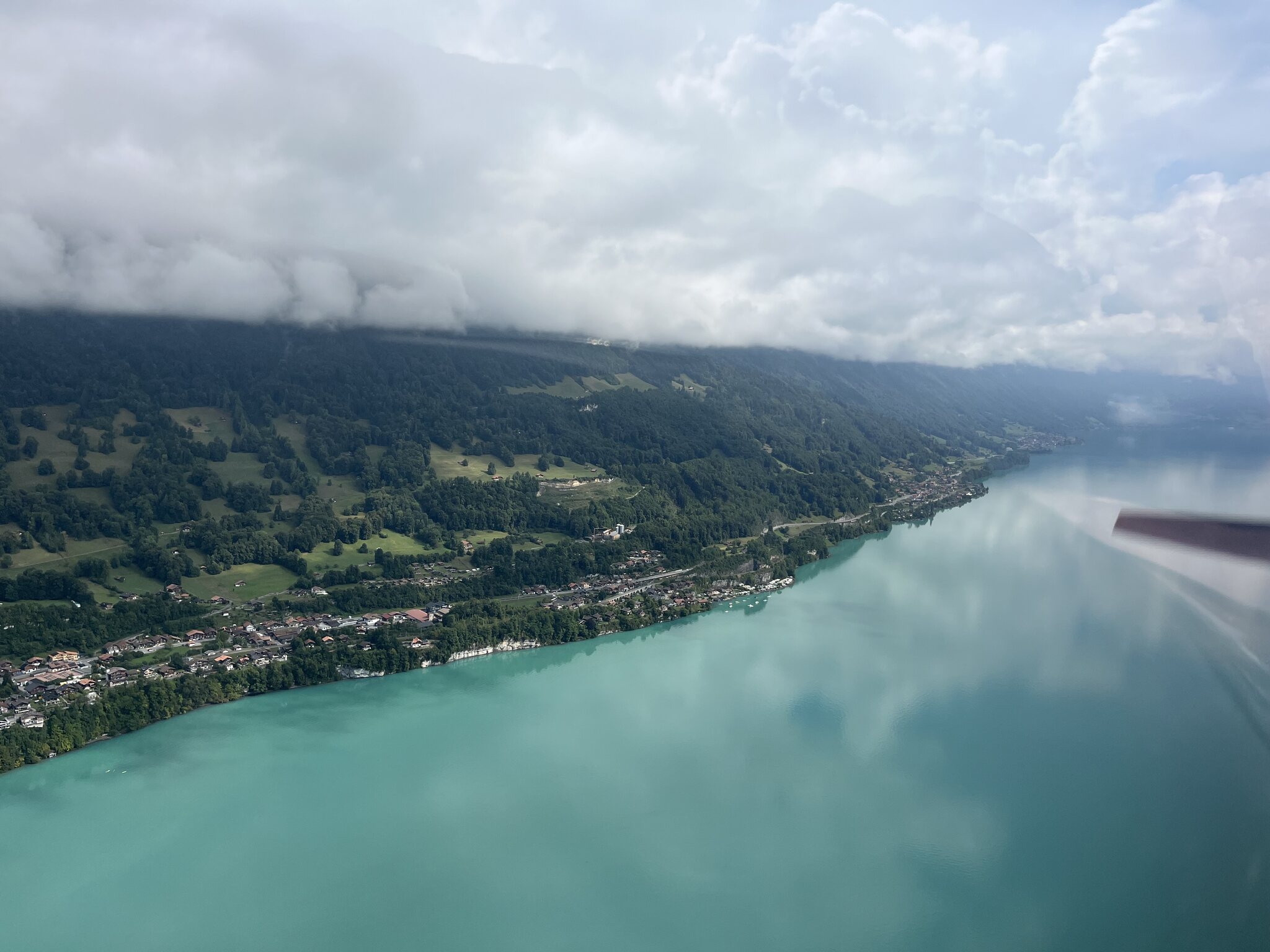 Auch wenn es auf diesem Bild so nicht erkennbar ist, war das Wetter auf dem Hinflug schwierig. Sehr tiefe Wolken. Den Versuch, on top zu fliegen, brachen wir wieder ab und kämpften uns auf lediglich 2900ft entlang der Autobahn nach Bern und weiter nach Interlaken.