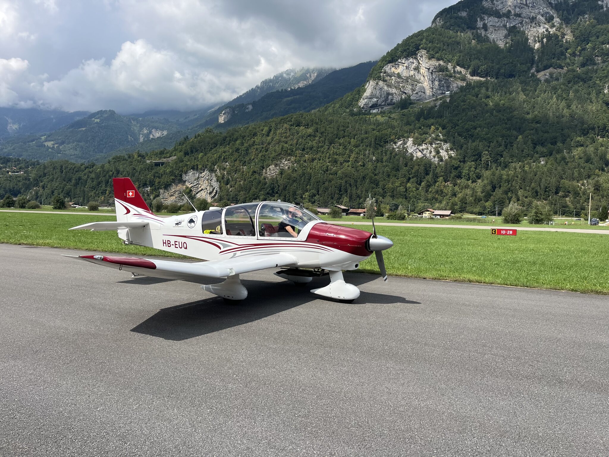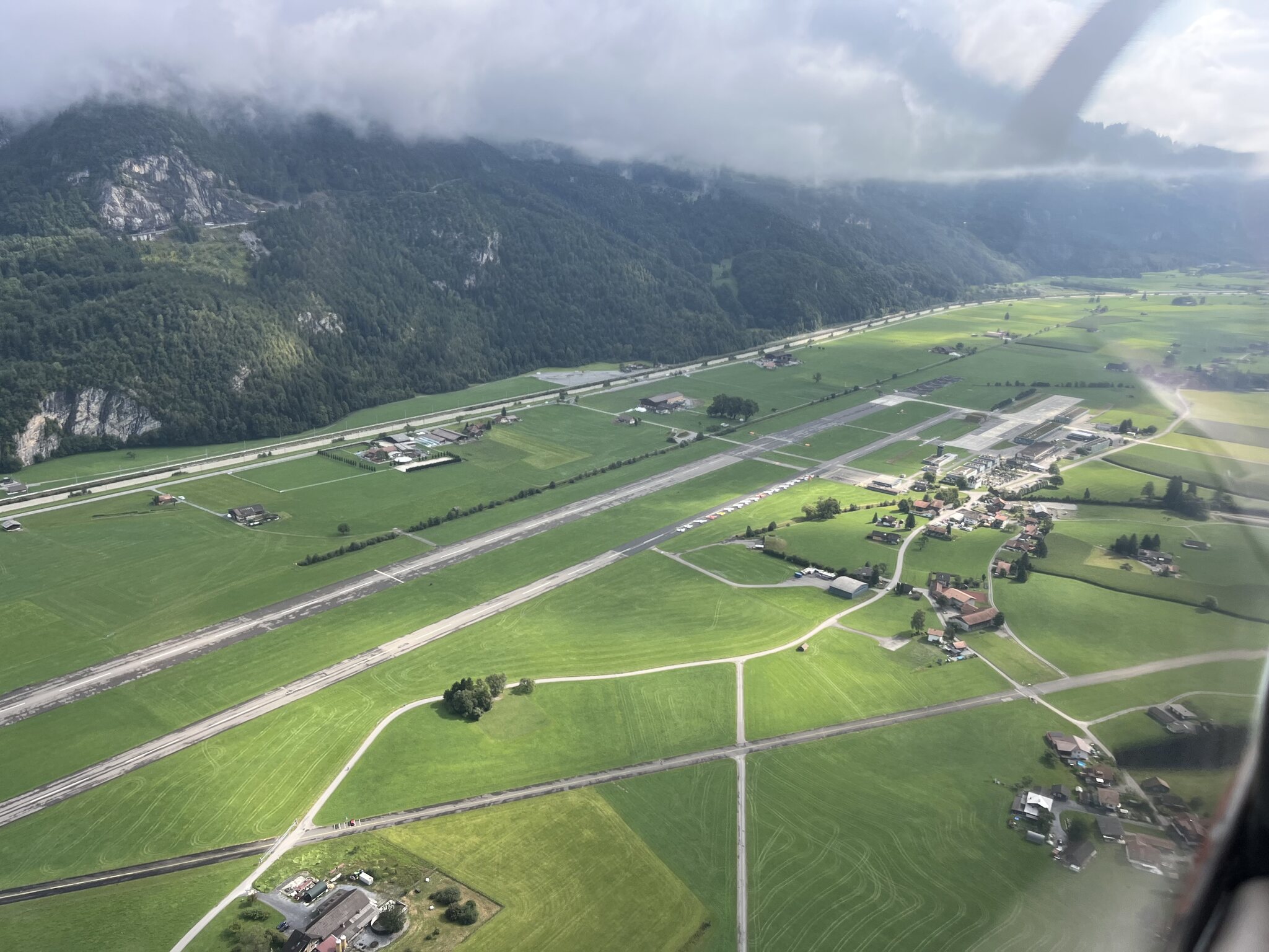 Heute ging es nach Meiringen, einem Militärflugplatz, auf dem sonst mit kleinen Flugzeugen nicht gelandet werden darf. Im Rahmen meiner neuen Funktion und den damit verbundenen zahlreichen Bekanntschaften konnte ich dem organisierenden Motorflugverband die Connection ermöglichen, dieses FlyIn zu organisieren. So durfte ich natürlich auch eines der stark gefragten 30 Slots für mich beanspruchen.