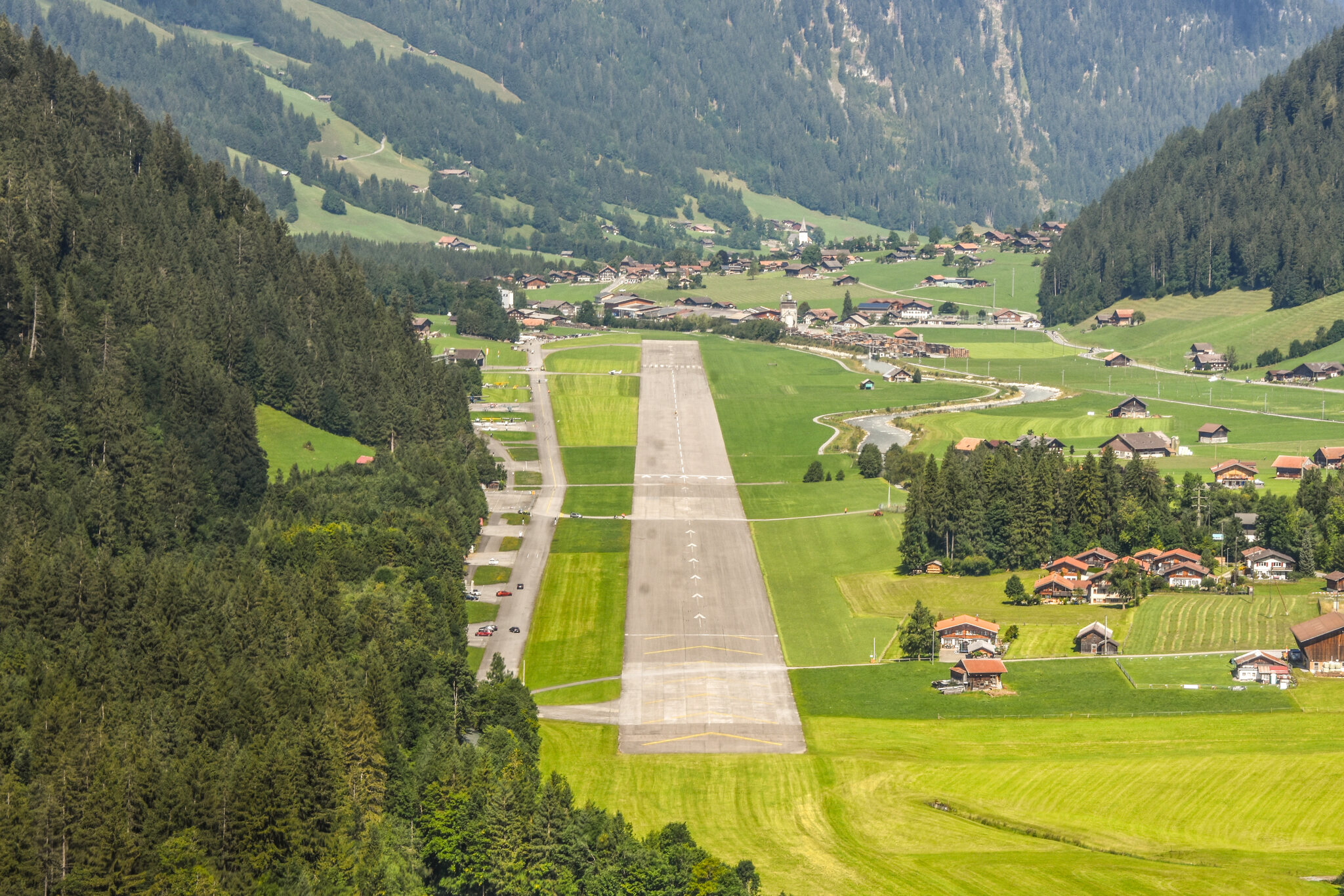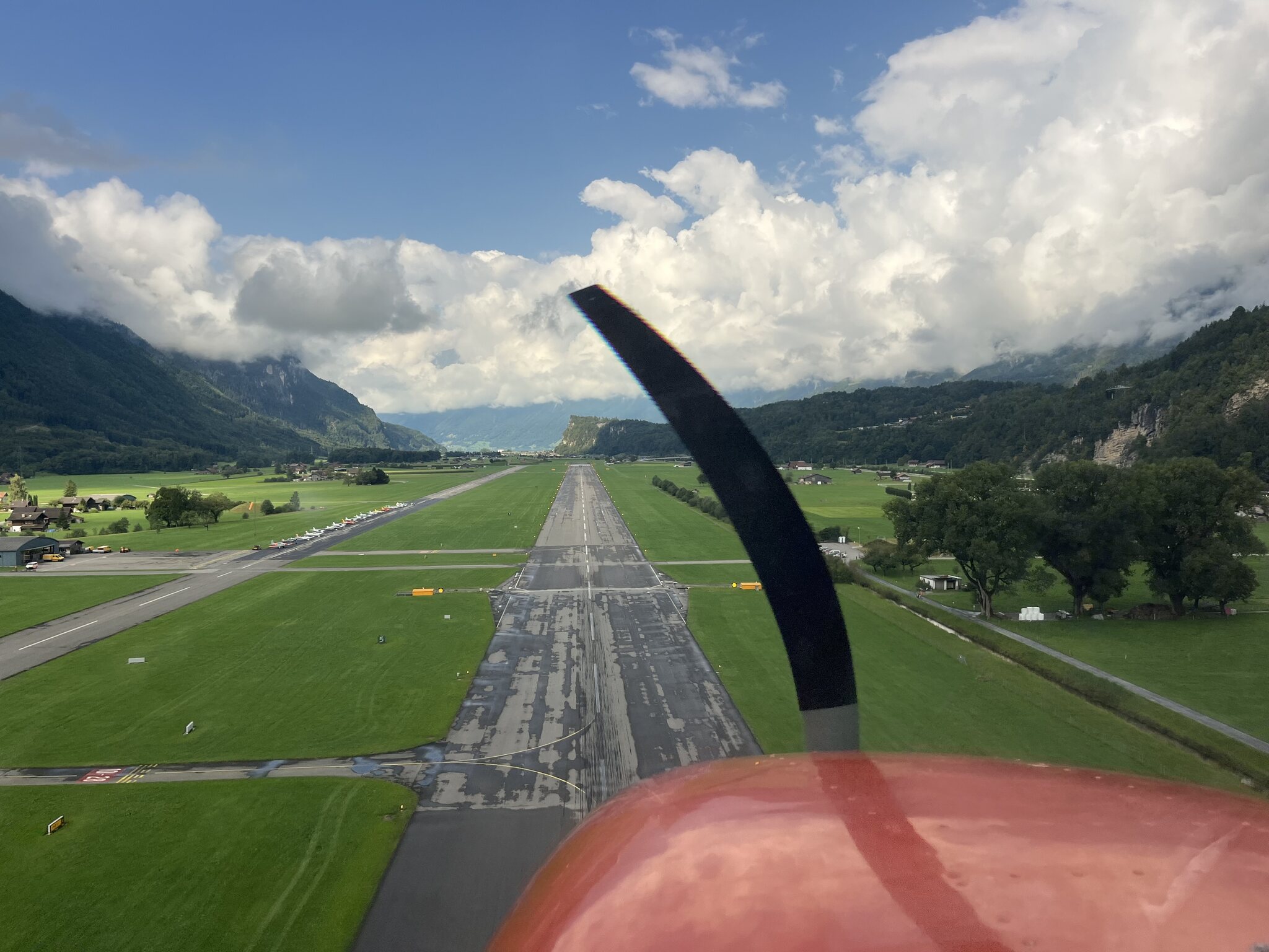 Im Gegenanflug auf die Piste 28 von Meiringen