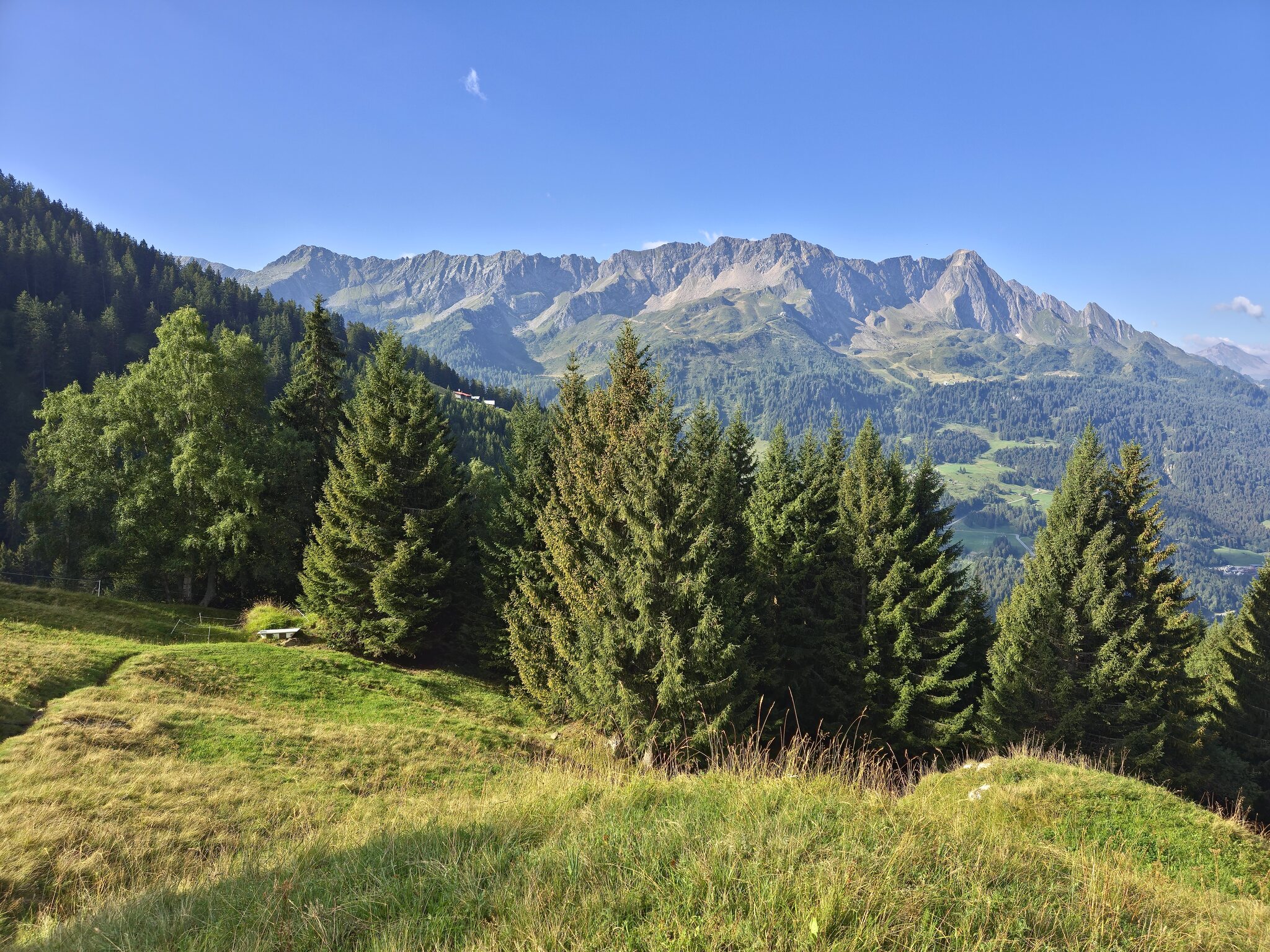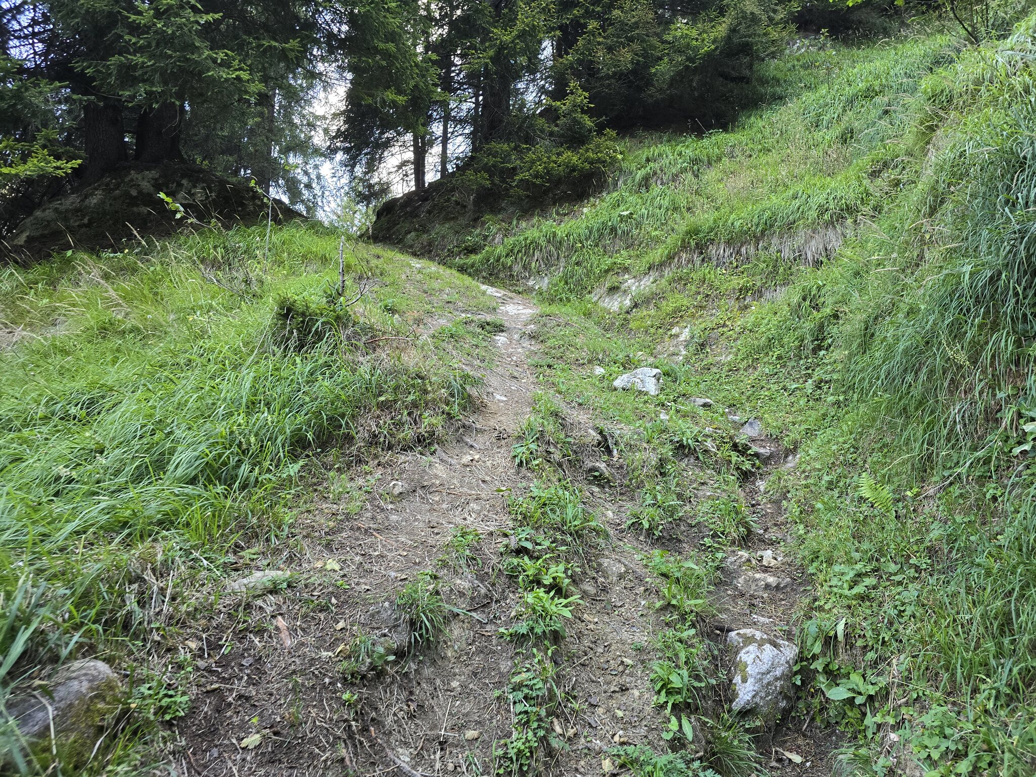 Beim Böcc da Ce wird der Wald langsam lichter und die Lärchen übernehmen die Überhand, eine durchaus nette Landschaft.