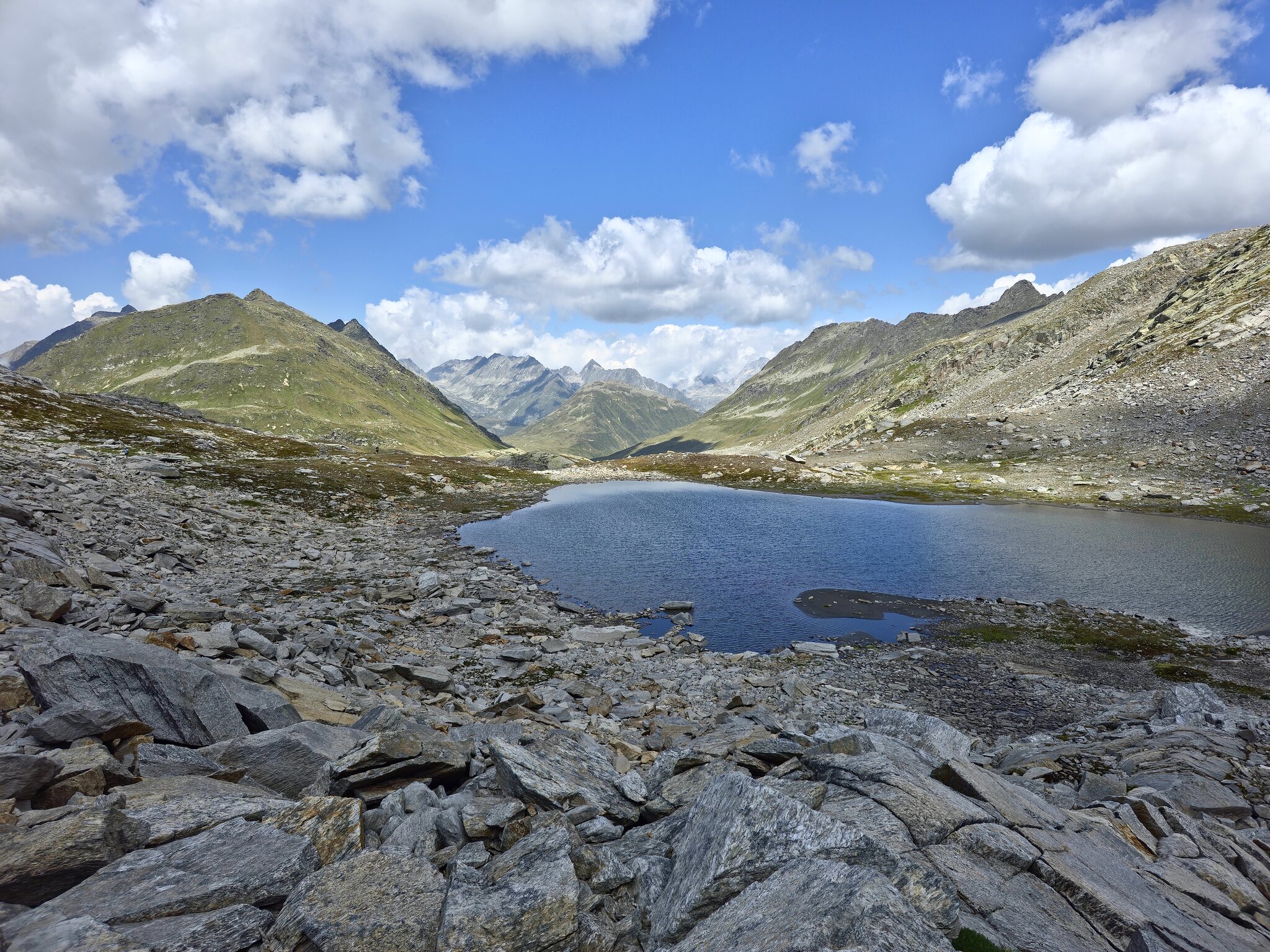 Nochmals ein See. Wir sind wir ab der landschaftlichen Schönheit des Val Maighels richtiggehend begeistert. Im Hintergrund ist der Passo Borengo zu sehen, wo wir hergekommen sind.