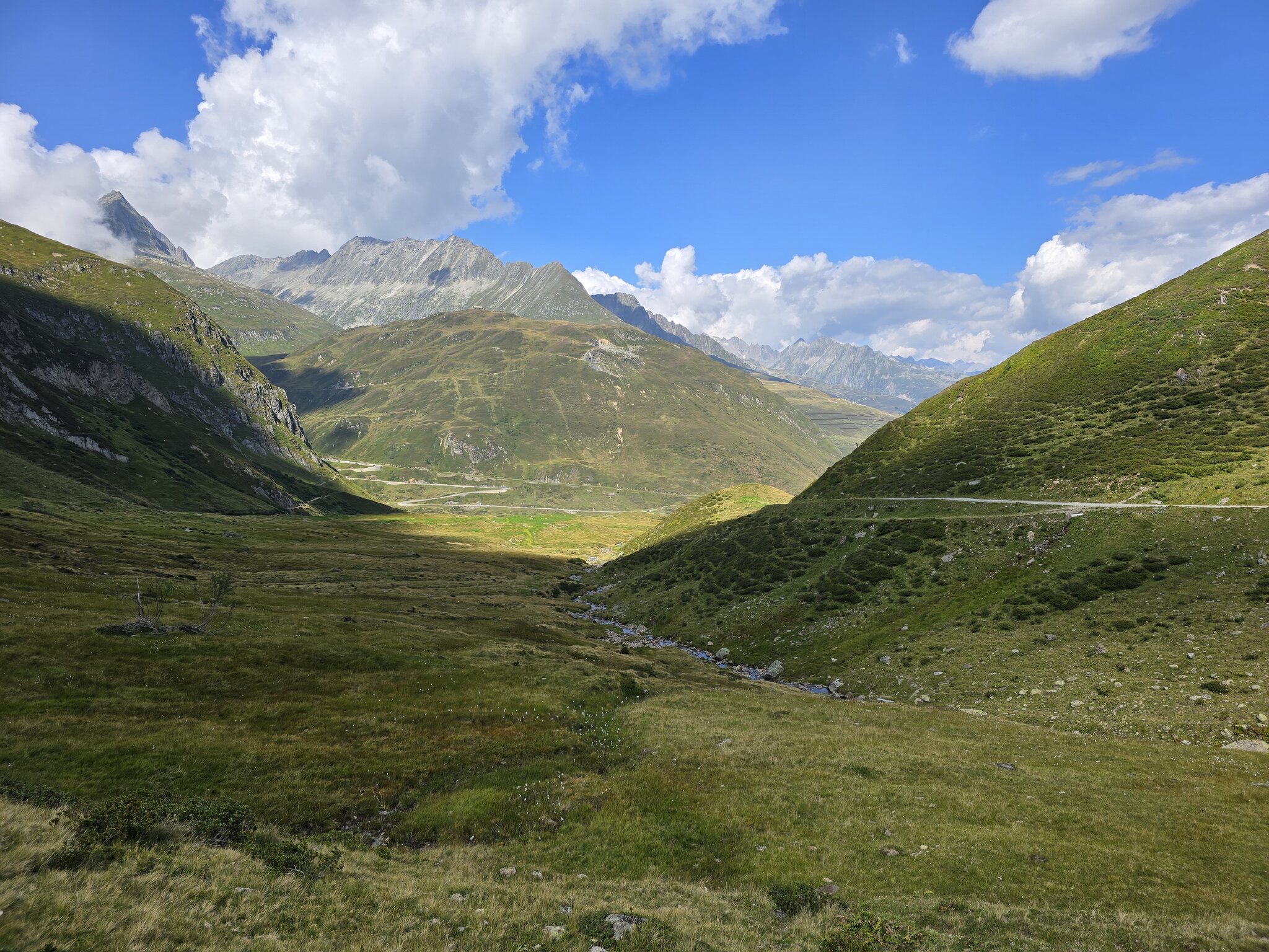 Bei der Maighels-Hütte verlassen wir das gleichnamige Tal und wandern weiter in Richtung Oberalppass. Der Wanderweg geht hier zwischenzeitlich in eine breite Alpstrasse über.