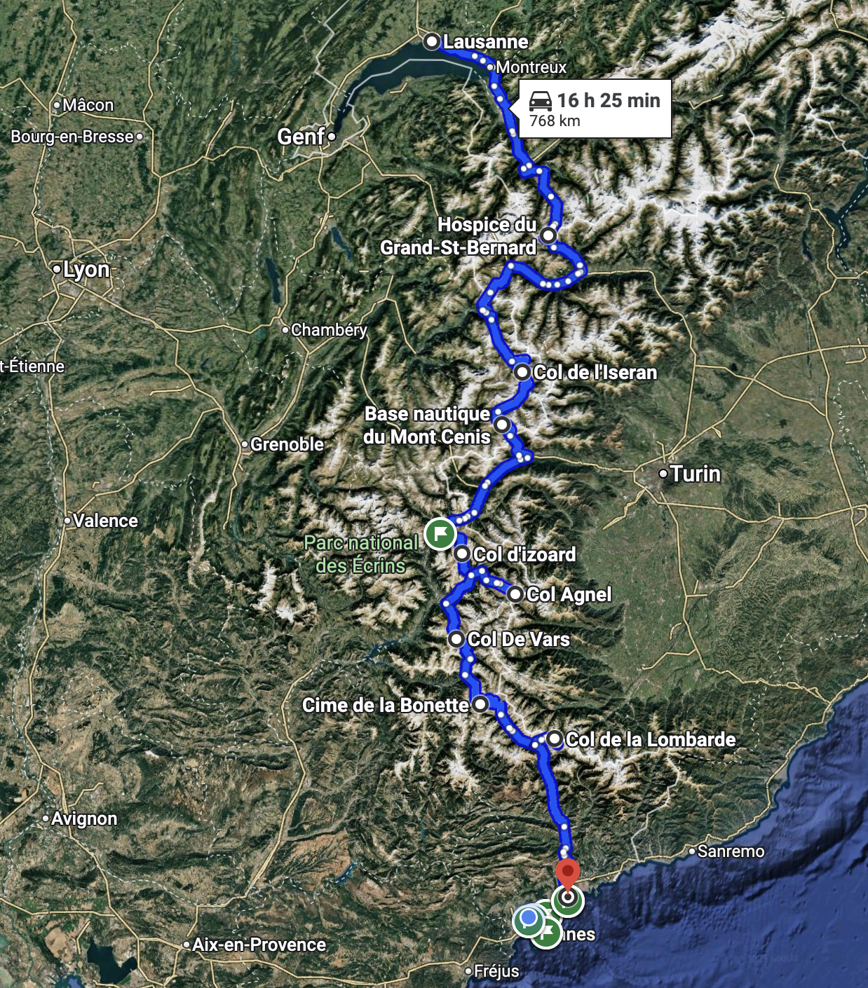 Seit Donnerstag Nachmittag bin ich unterwegs von Lausanne über eine extended Route des Grandes Alpes über einen Roadtrip mit 10 Alpenpässe bis an die Cote d'Azure nach Nizza.