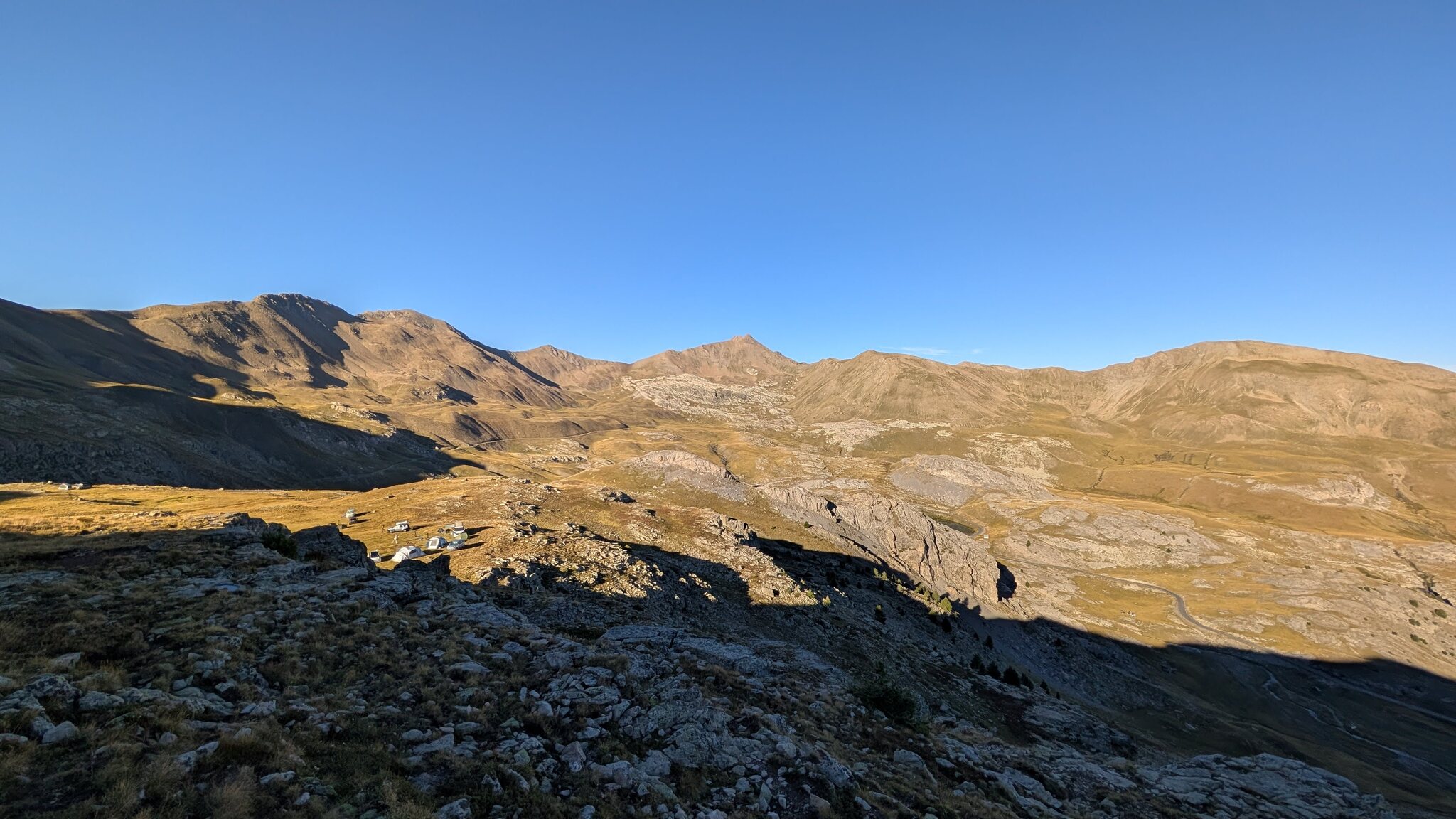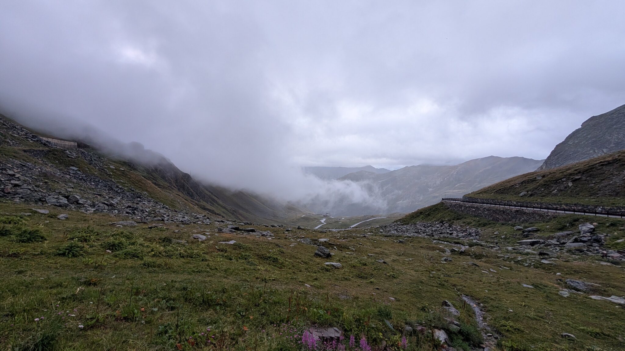 Auf der Passhöhe auf etwas mehr als 2300 Metern, kann nicht mit den 2800 Metern von der Hinfahrt mithalten aber auch schön!