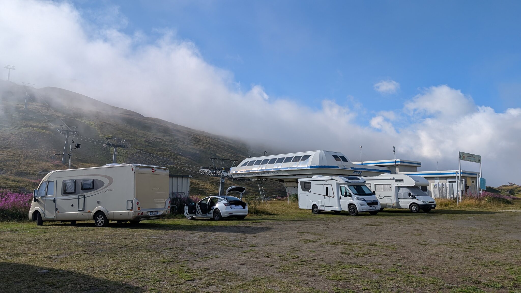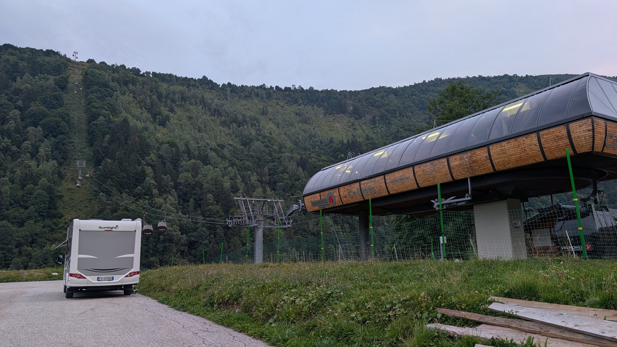 Perfekter "Campingplatz" an der Talstation des St-Bernard Express vom Skigebiet La Thuile