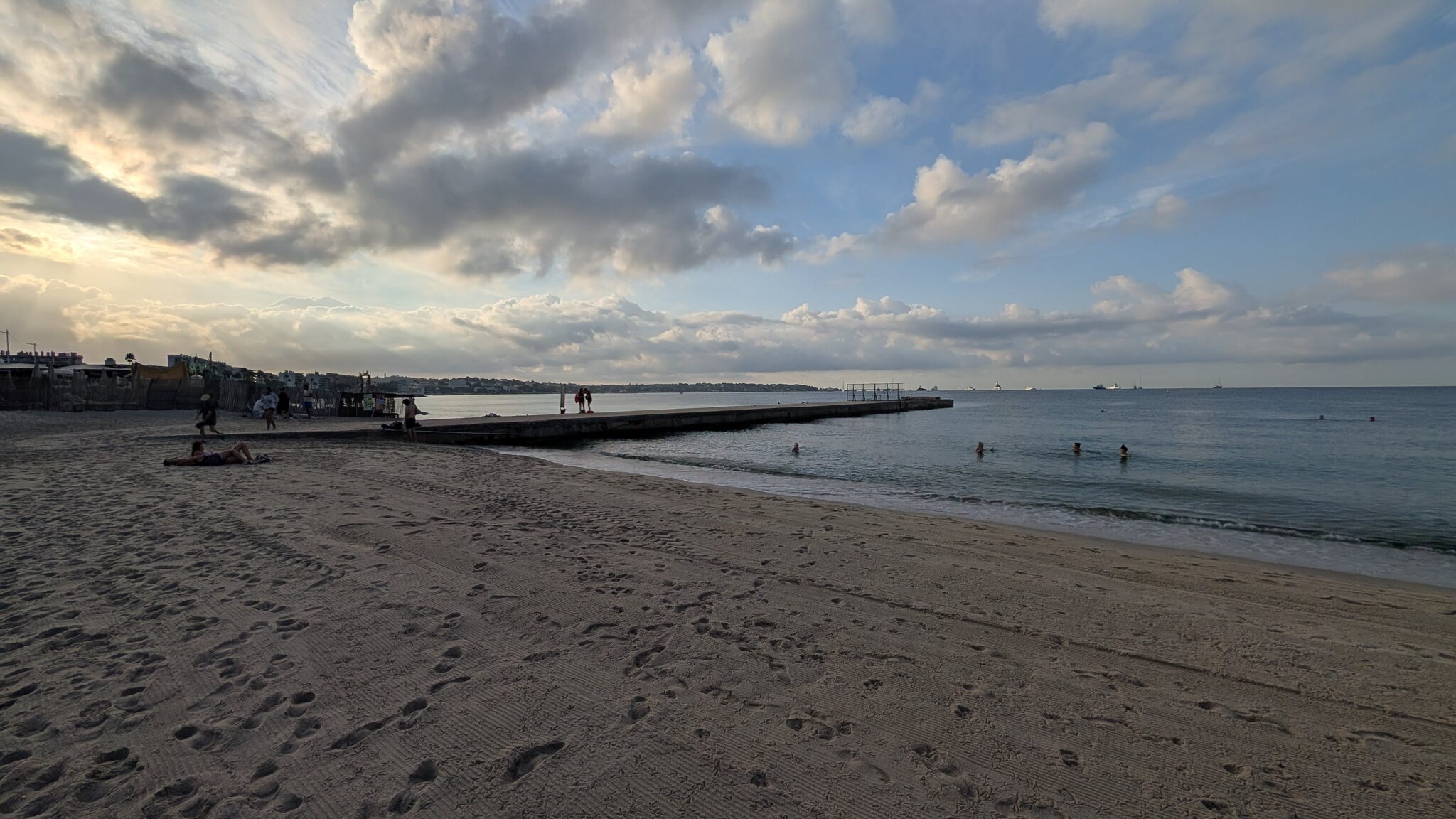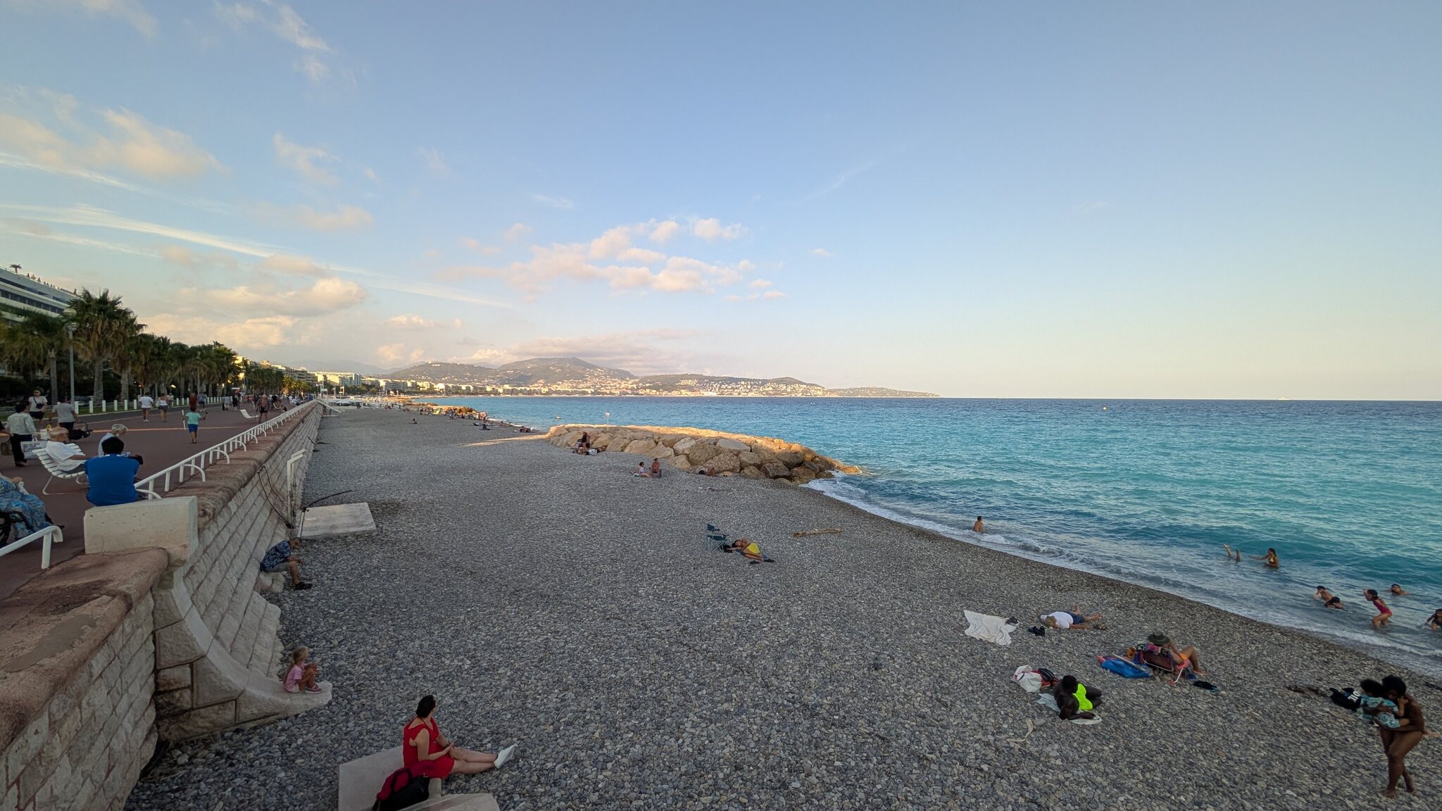 Nach einer Nacht an einem guten abgelegenen Parkplatz (die Plätze finde ich mit der Park4Night App) wieder am Strand, dieses mal in Antibes, und jetzt sogar ein Sandstrand, wo es in Nizza nur Kies war!