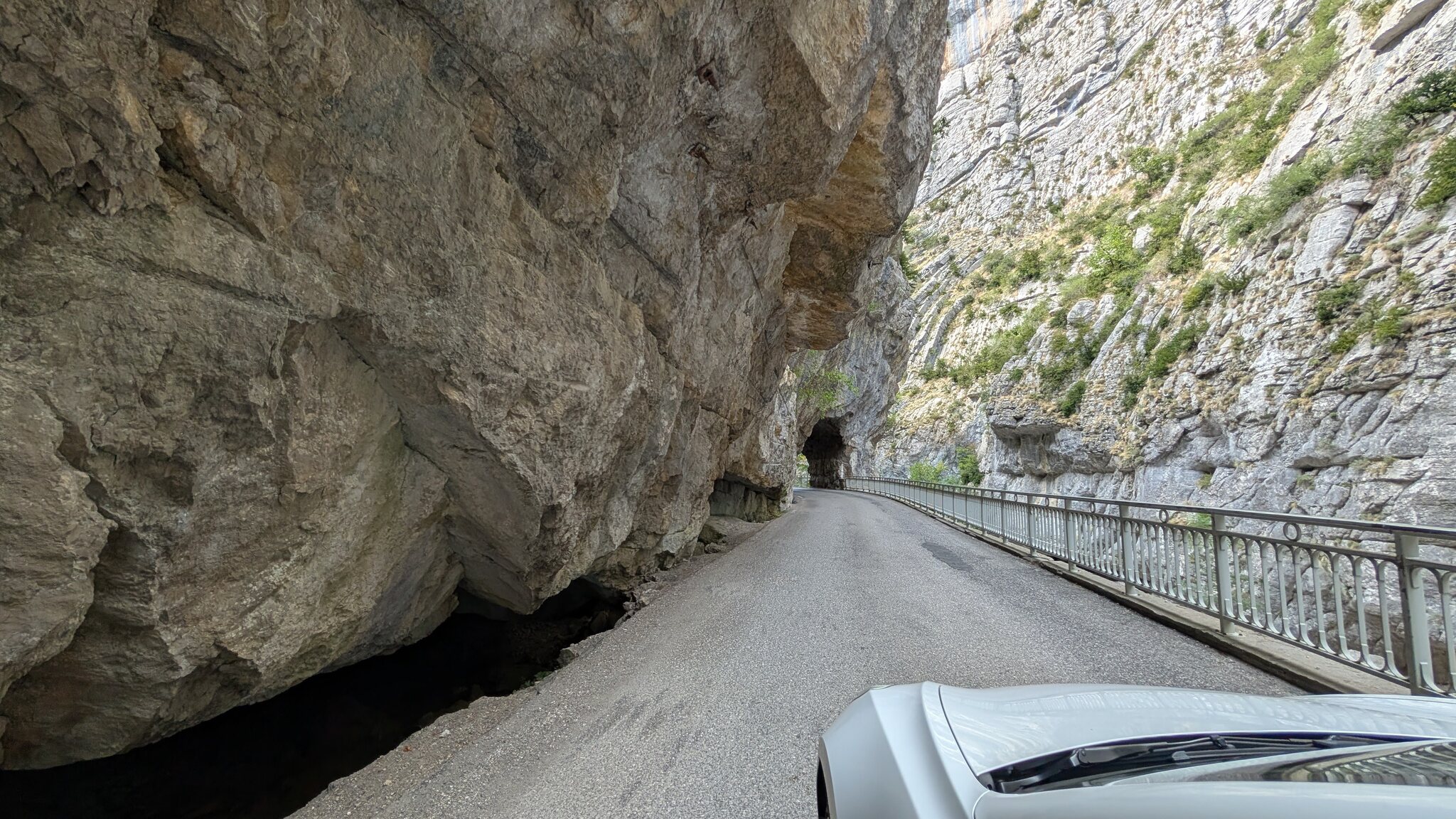 Es geht nun eine konstant abfallende Hauptstraße weiter runter bis nach Nizza, die meiste Strecke vorbei an spektakulären Felsen