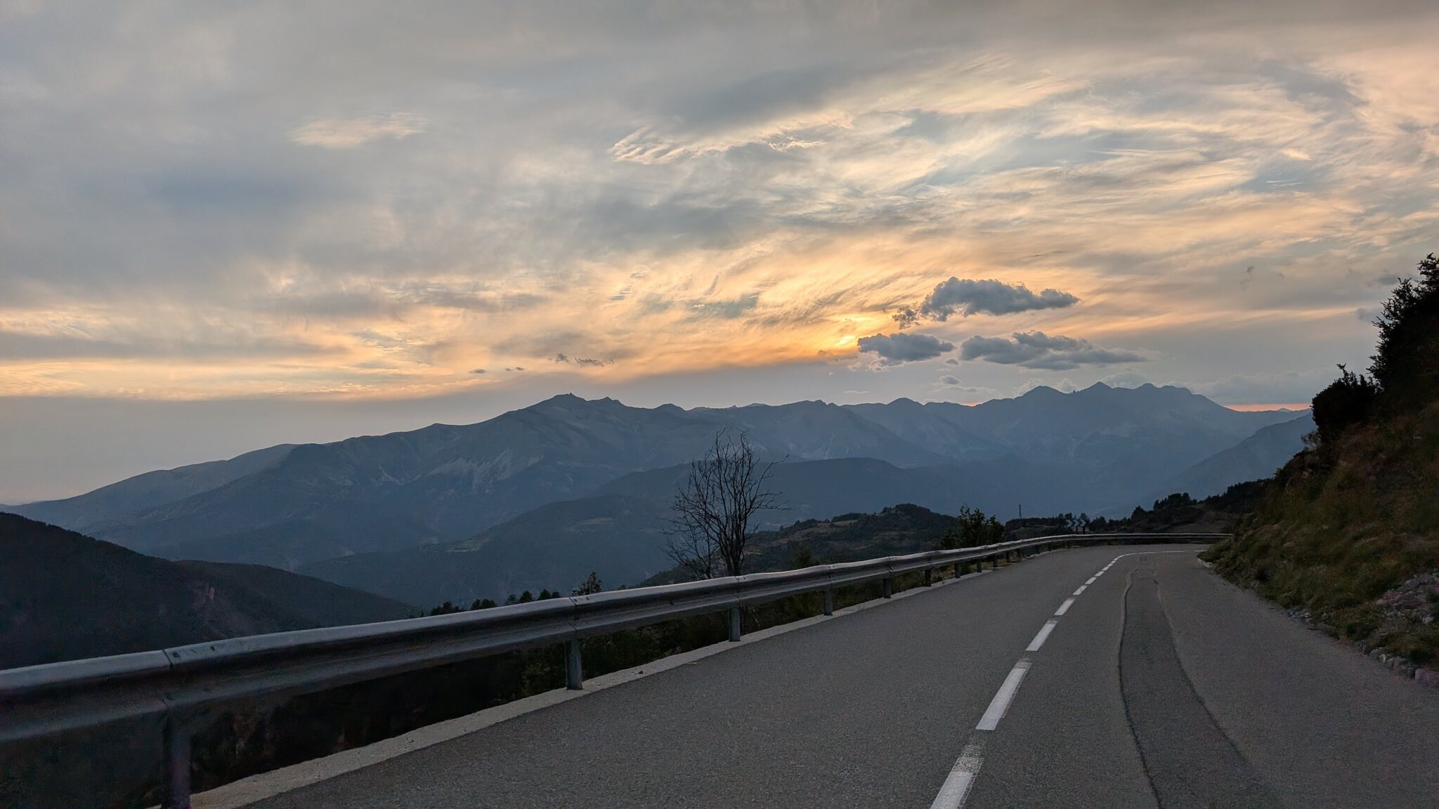 Talfahrt vom Valberg Pass in den Sonnenuntergang