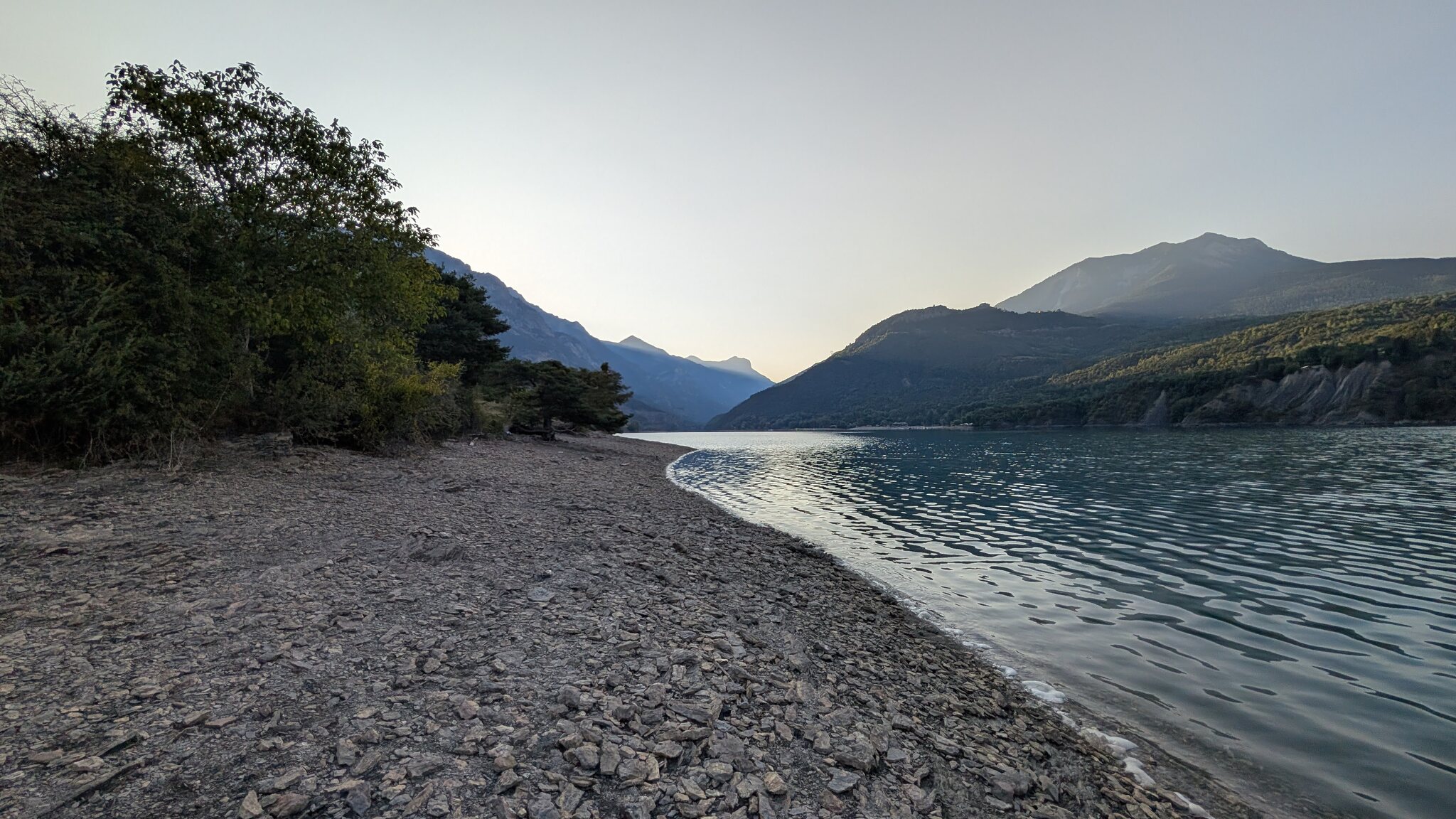 Es führt eine Brücke über den Stausee, die Pfeiler sind also tief im Wasser!