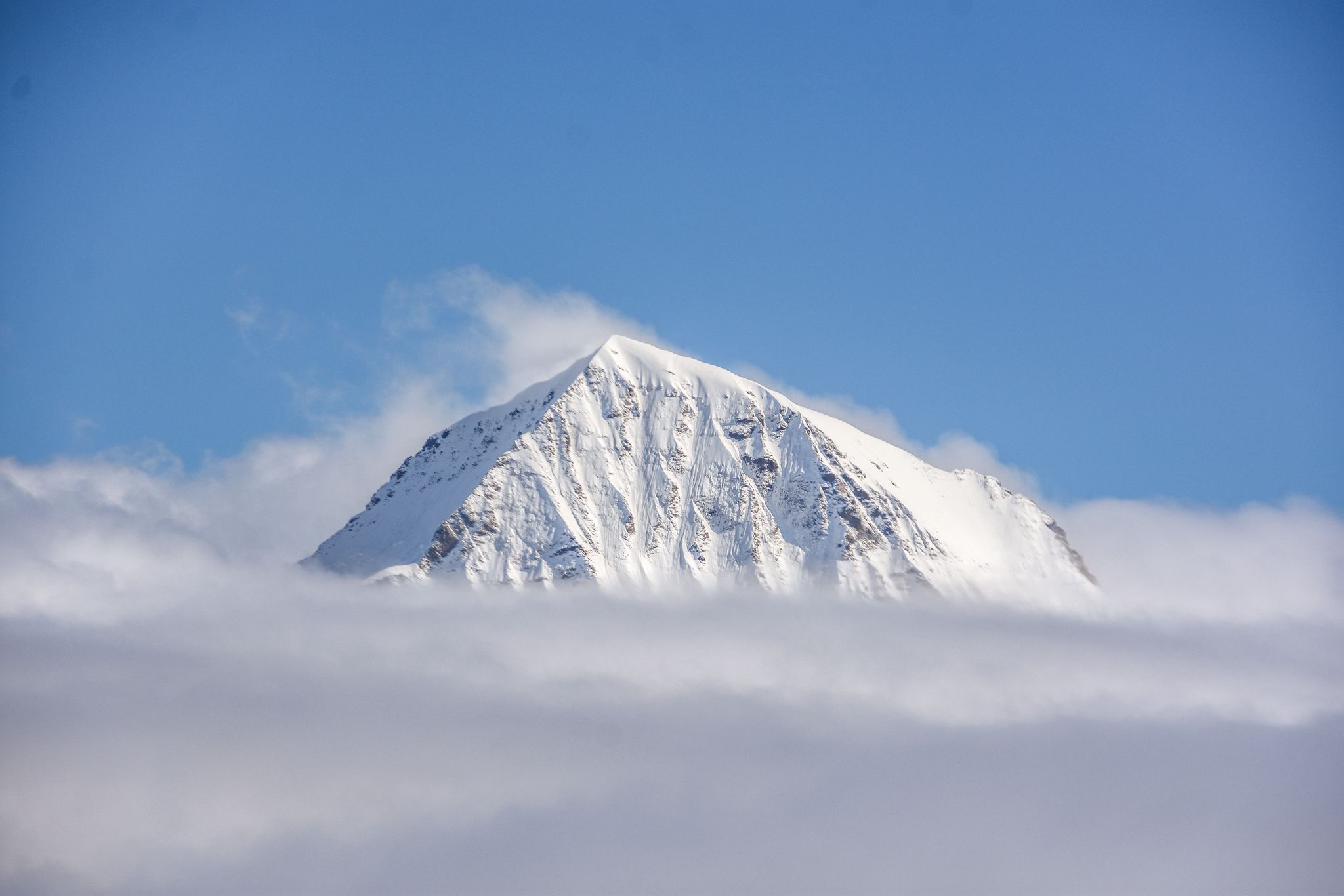 Über Interlaken sehen wir, dass wir on top sehr direkt ans Ziel kommen können. Auf FL125 am Mönch vorbei: