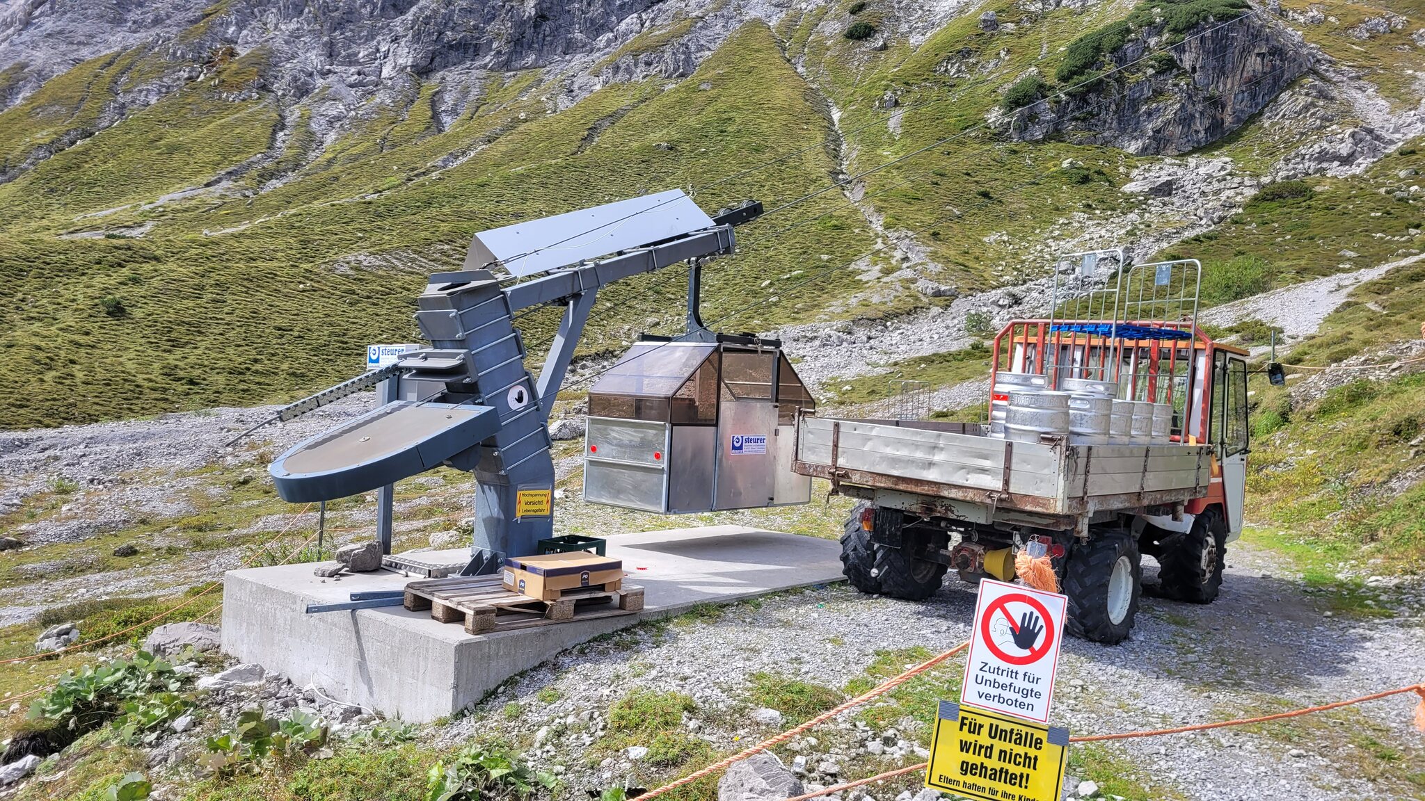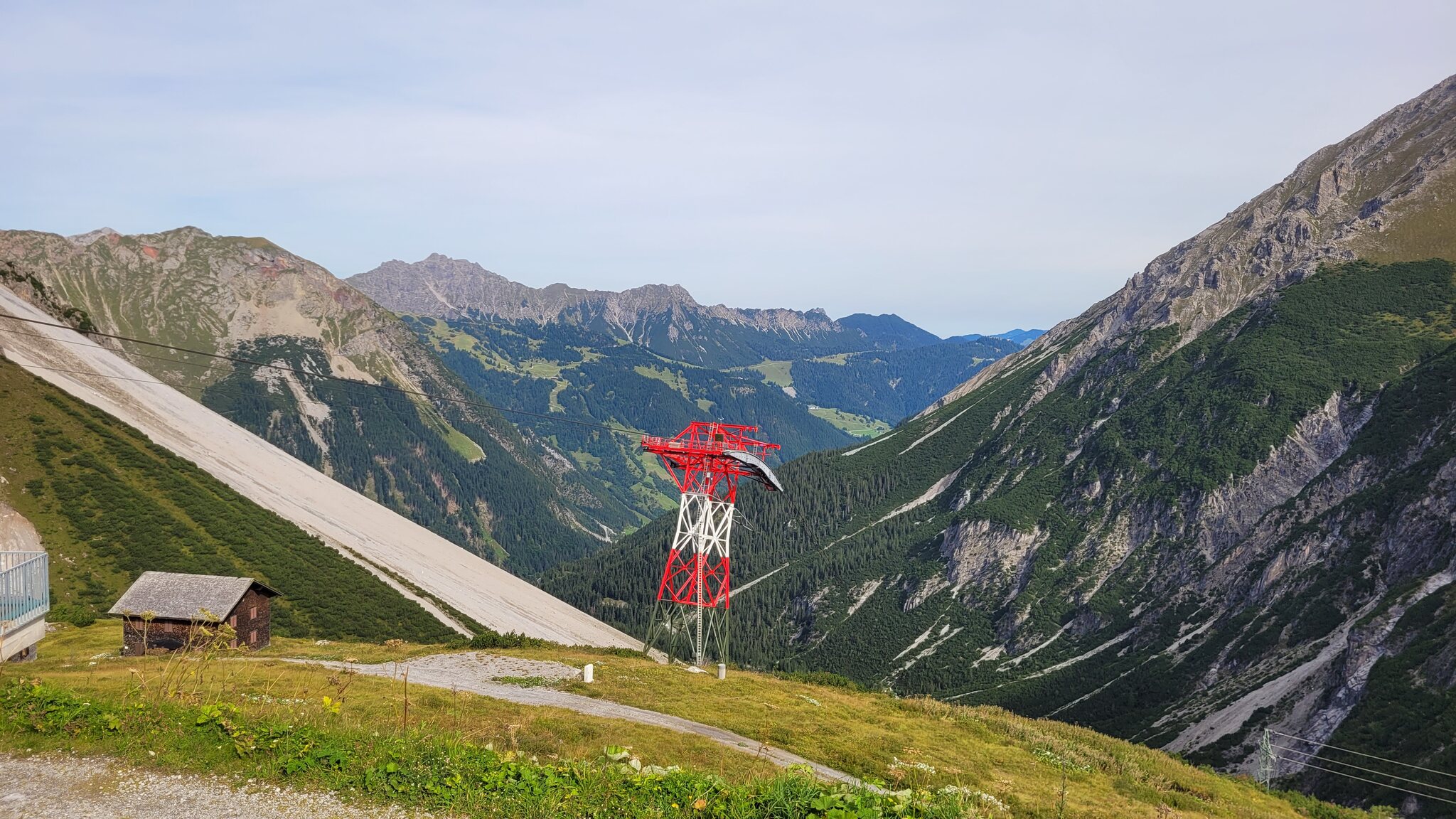 Hier steht noch eine Materialseilbahn zur Versorgung der Totalp-Hütte: