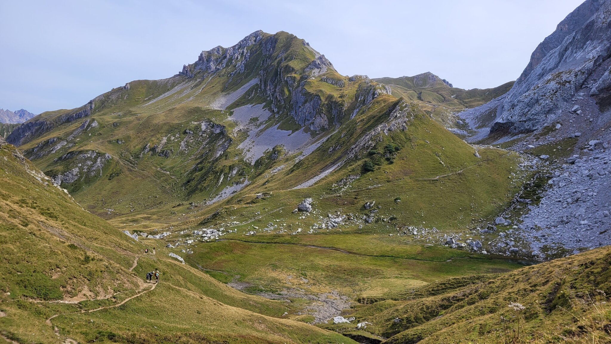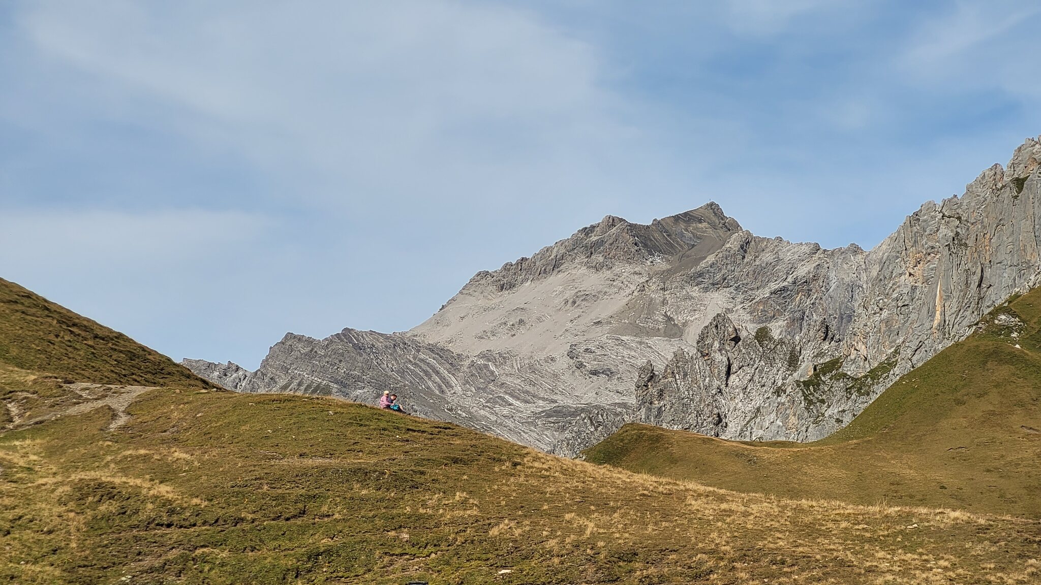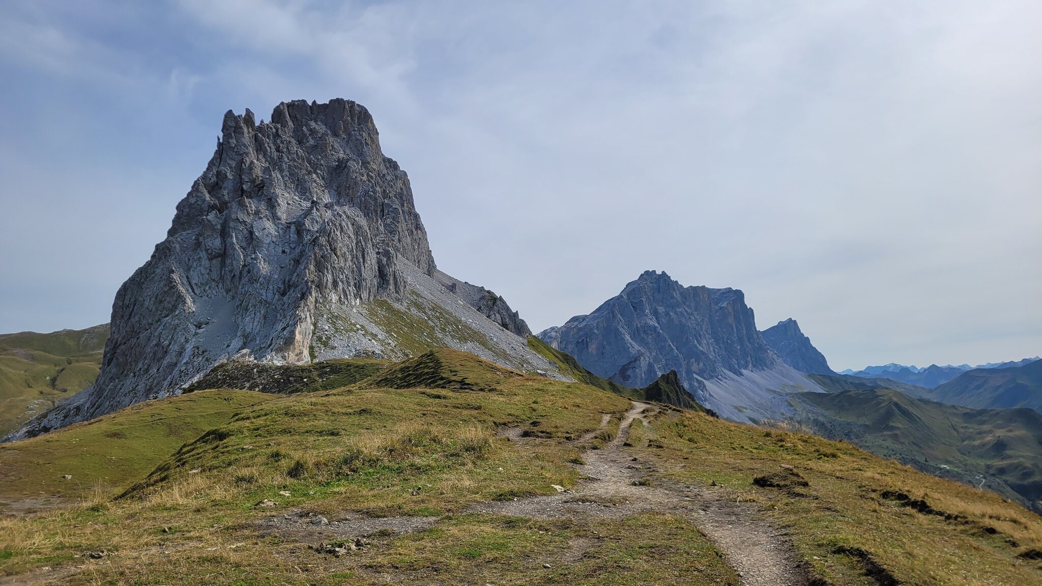 Auf dem Grat verläuft die Grenze zur Schweiz. Die Berge erinnern etwas an die Dolomiten:
