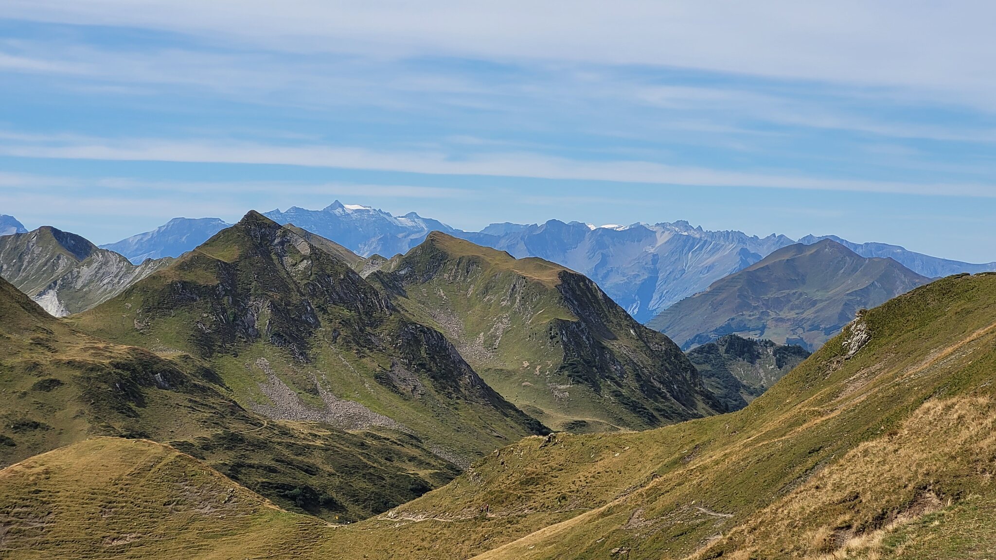 Richtung Nordwesten sieht man in der Ferne einen Gletscher, das müsste das Rheinwaldhorn sein.