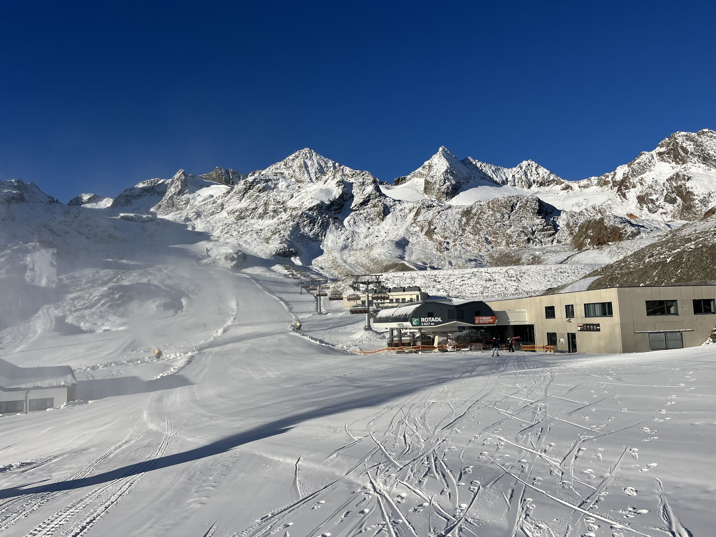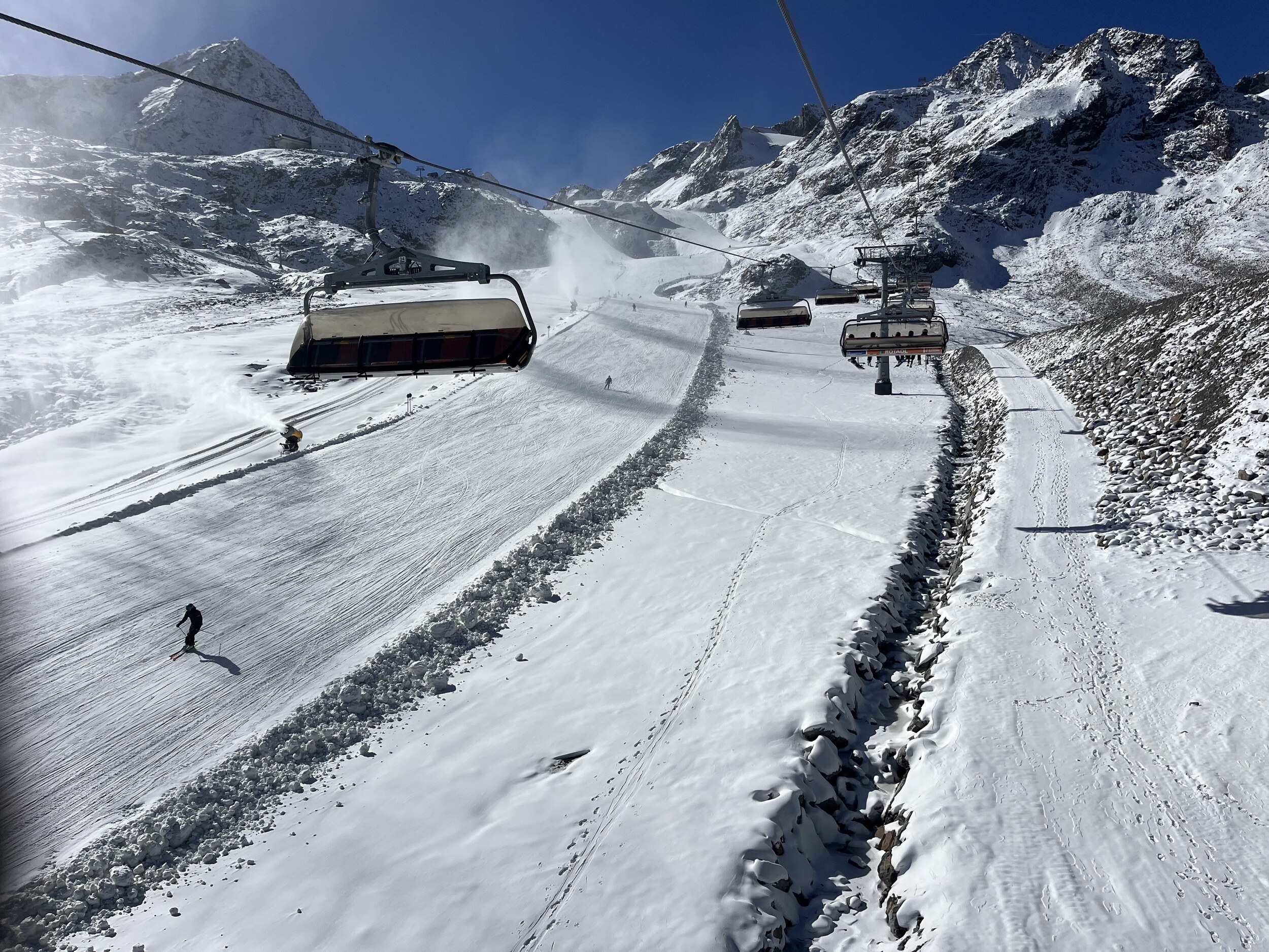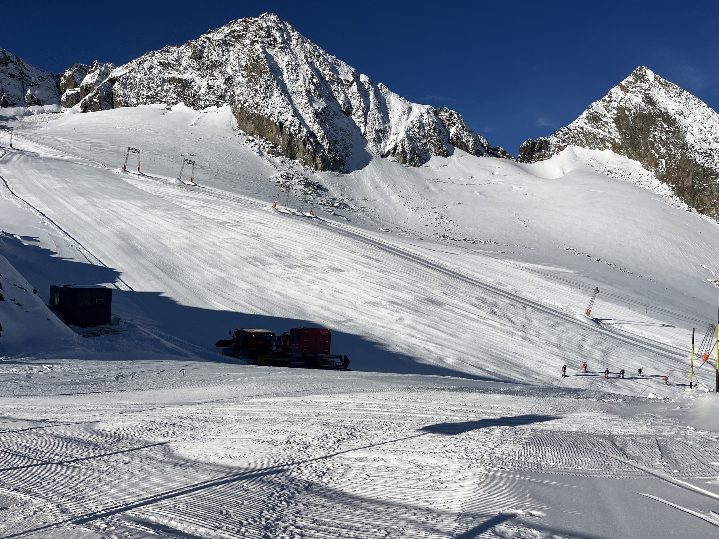 Die Schneekanonen auf der Mittelstationsabfahrt hatten noch keinen Einsatz. In einer Insta-Story vom Stubaier konnte man aber schon laufende Kanonen im Bereich Eisjoch/Rotadl erkennen